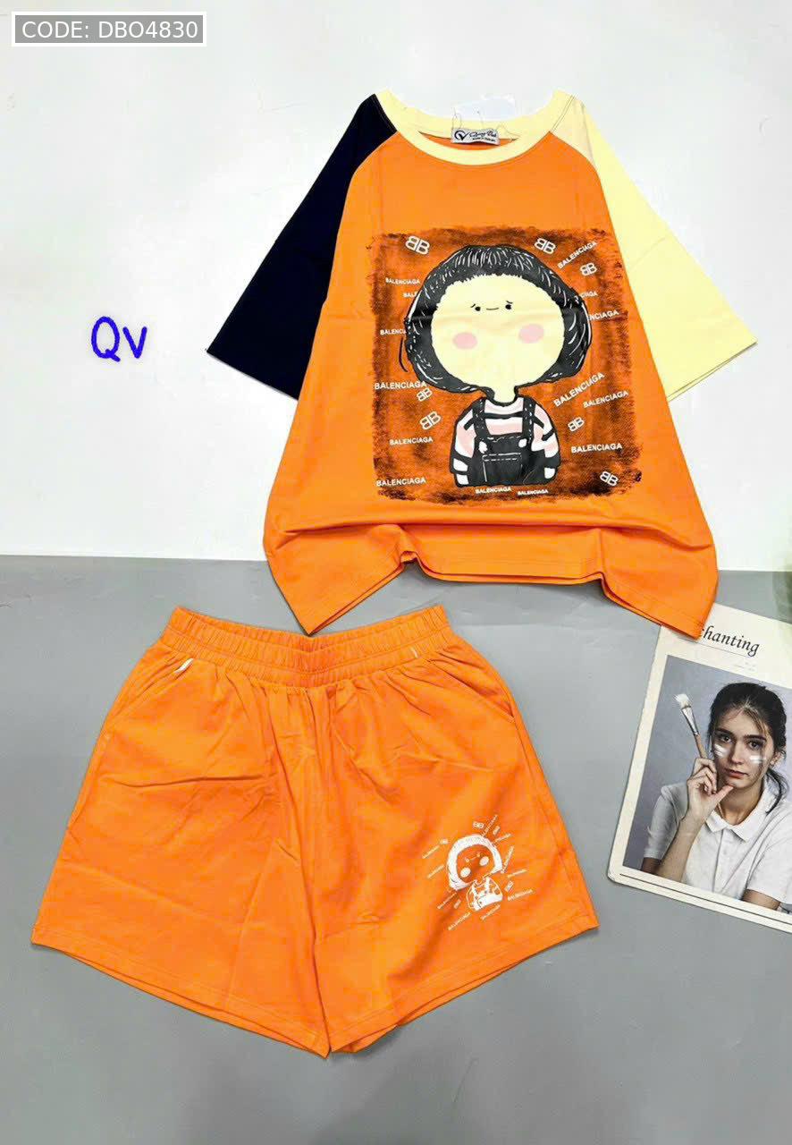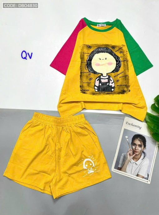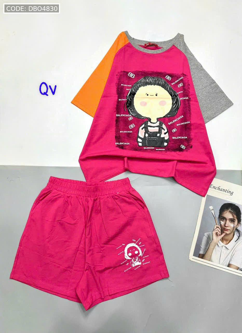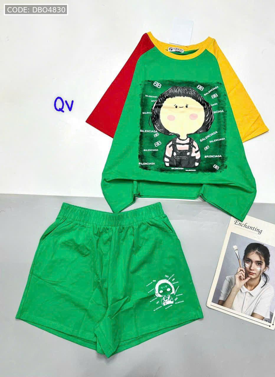 Giá sỉ đồ bộ quần đùi áo tay ngắn in hình bé tóc ngang