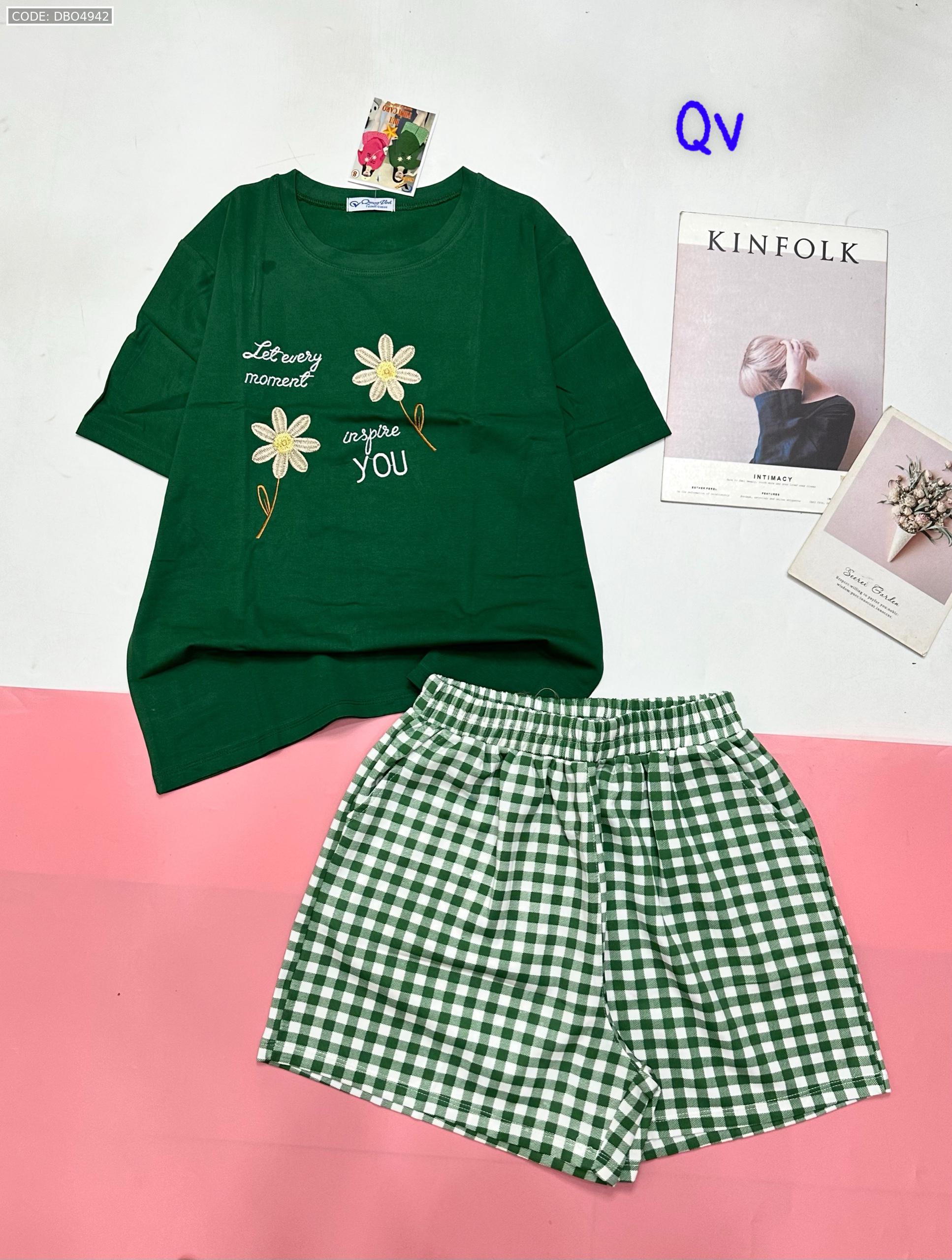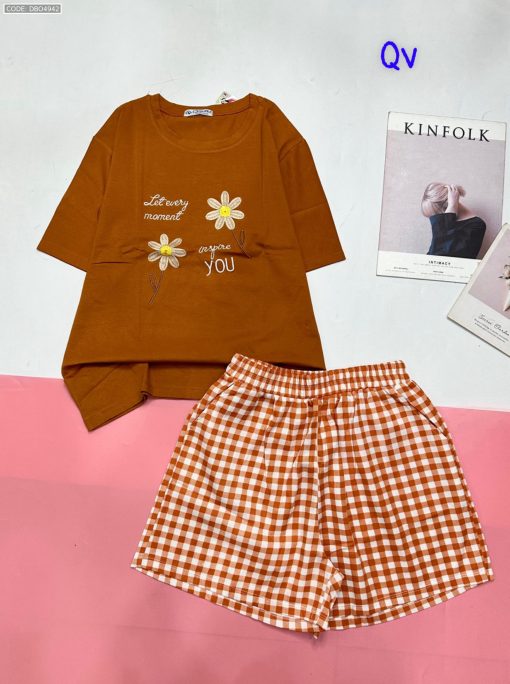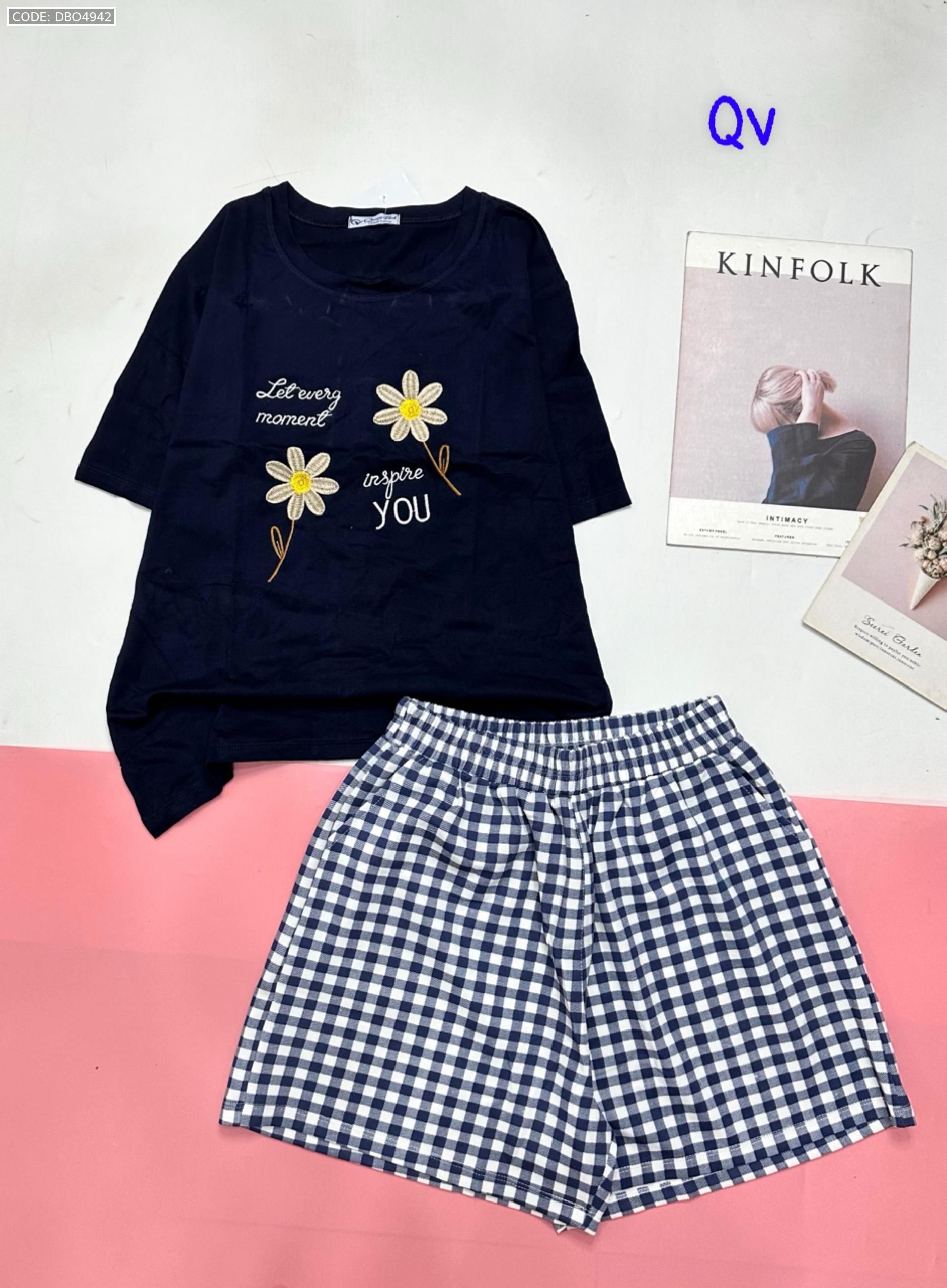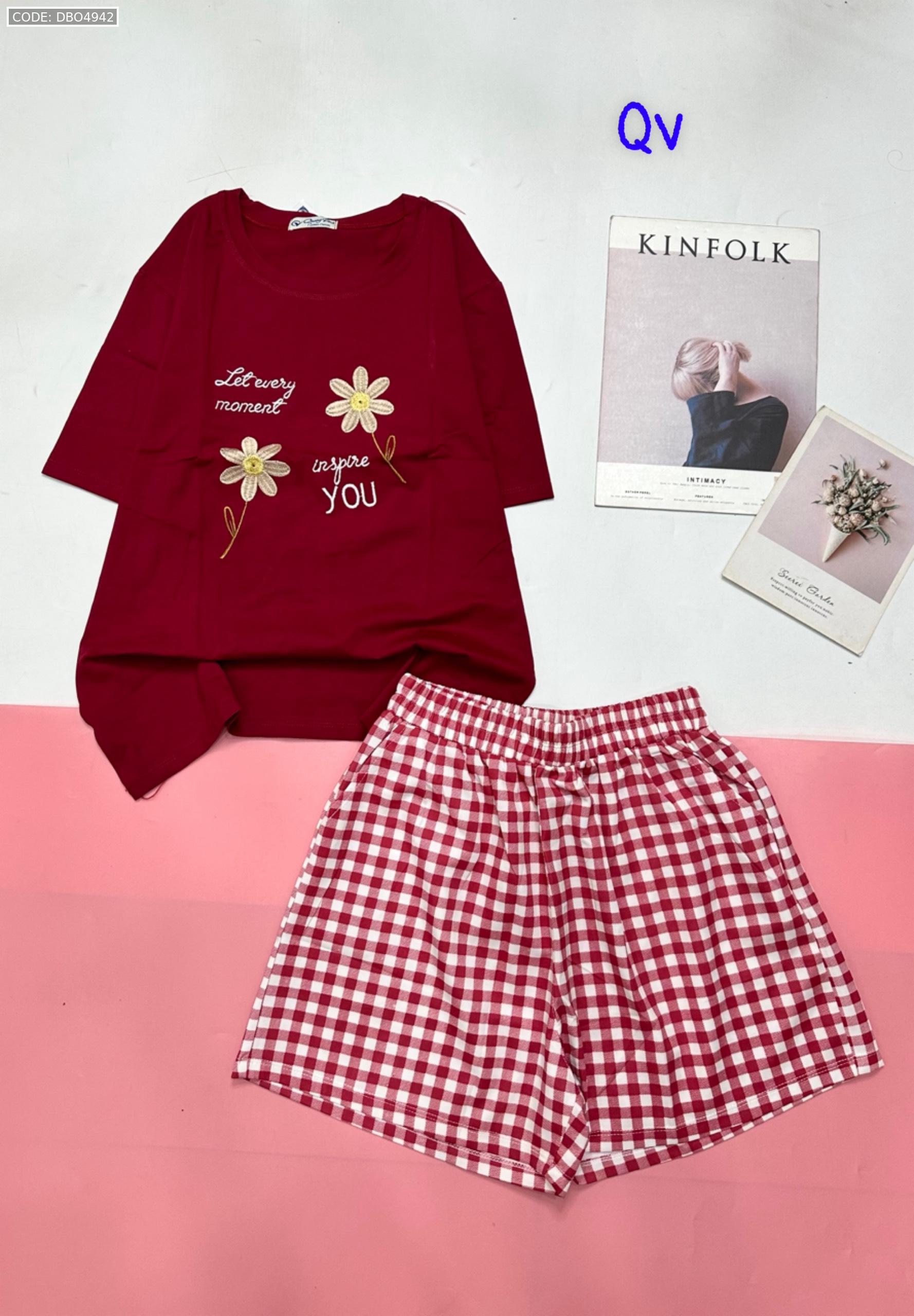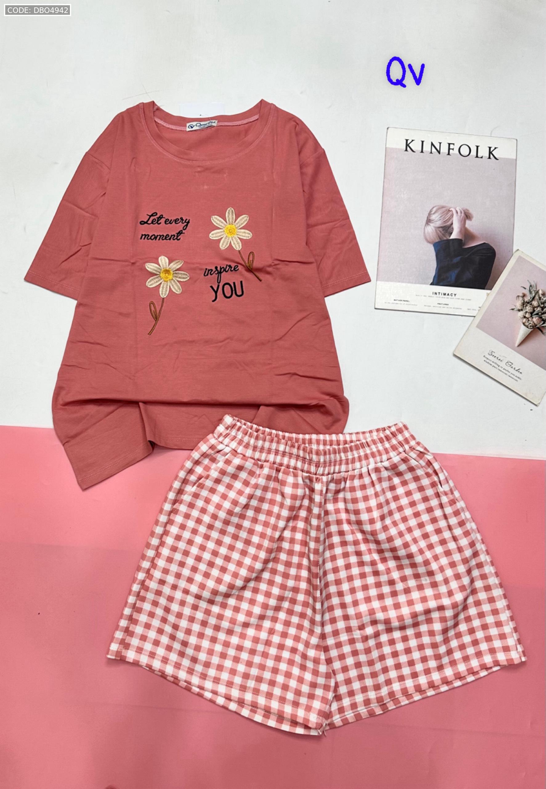Giá sỉ đồ bộ quần đùi caroo áo tay ngắn in hình hoa