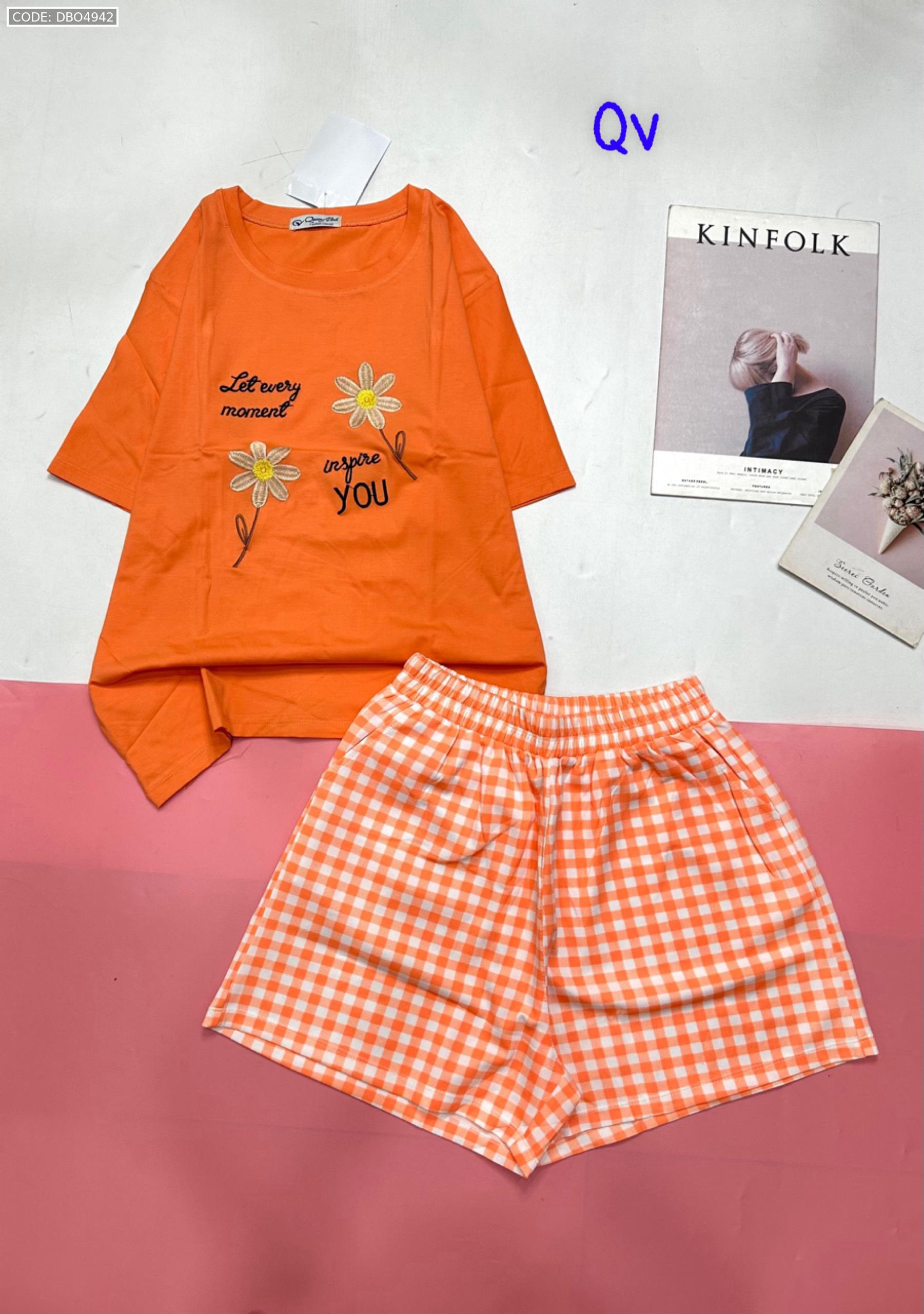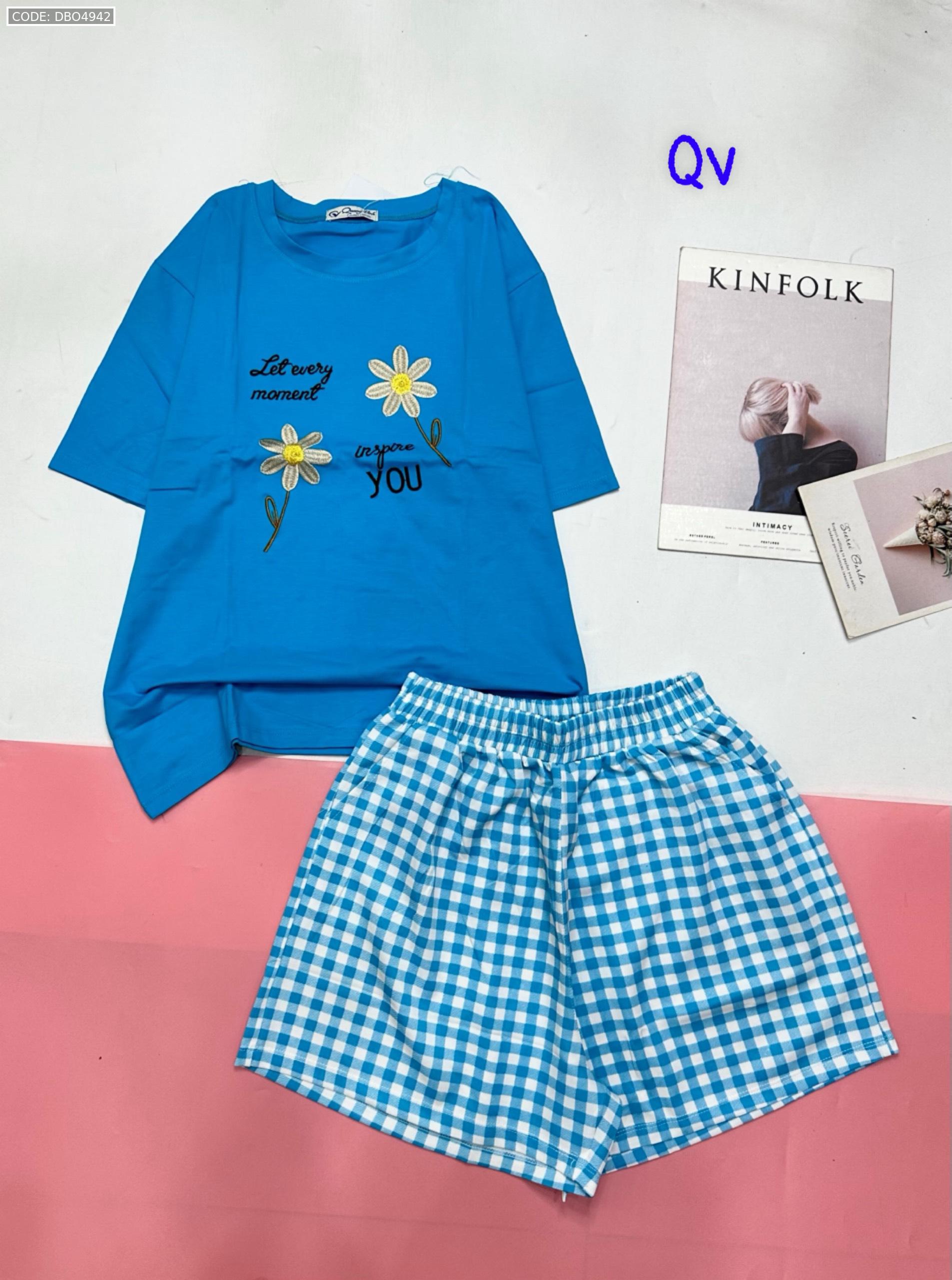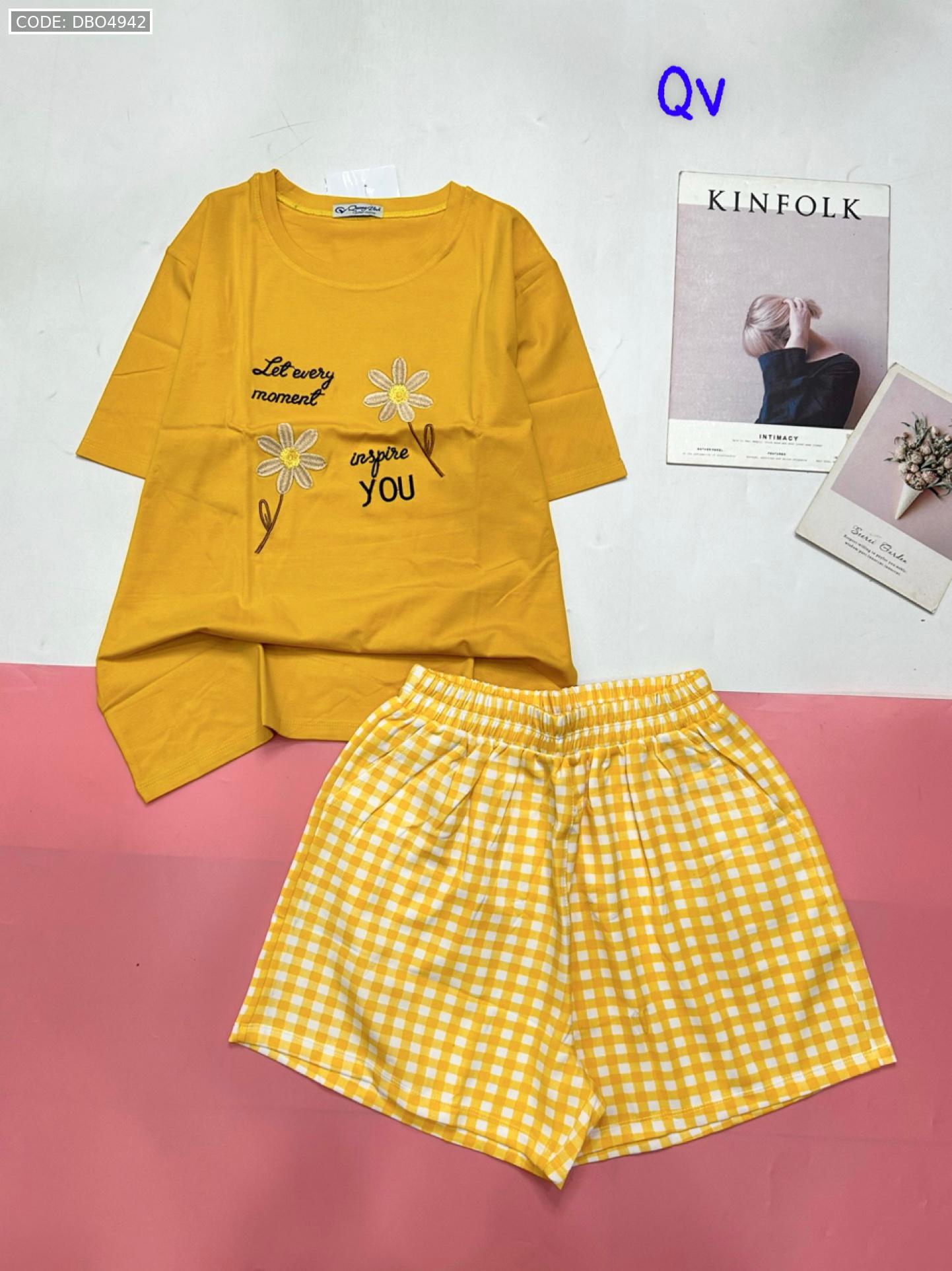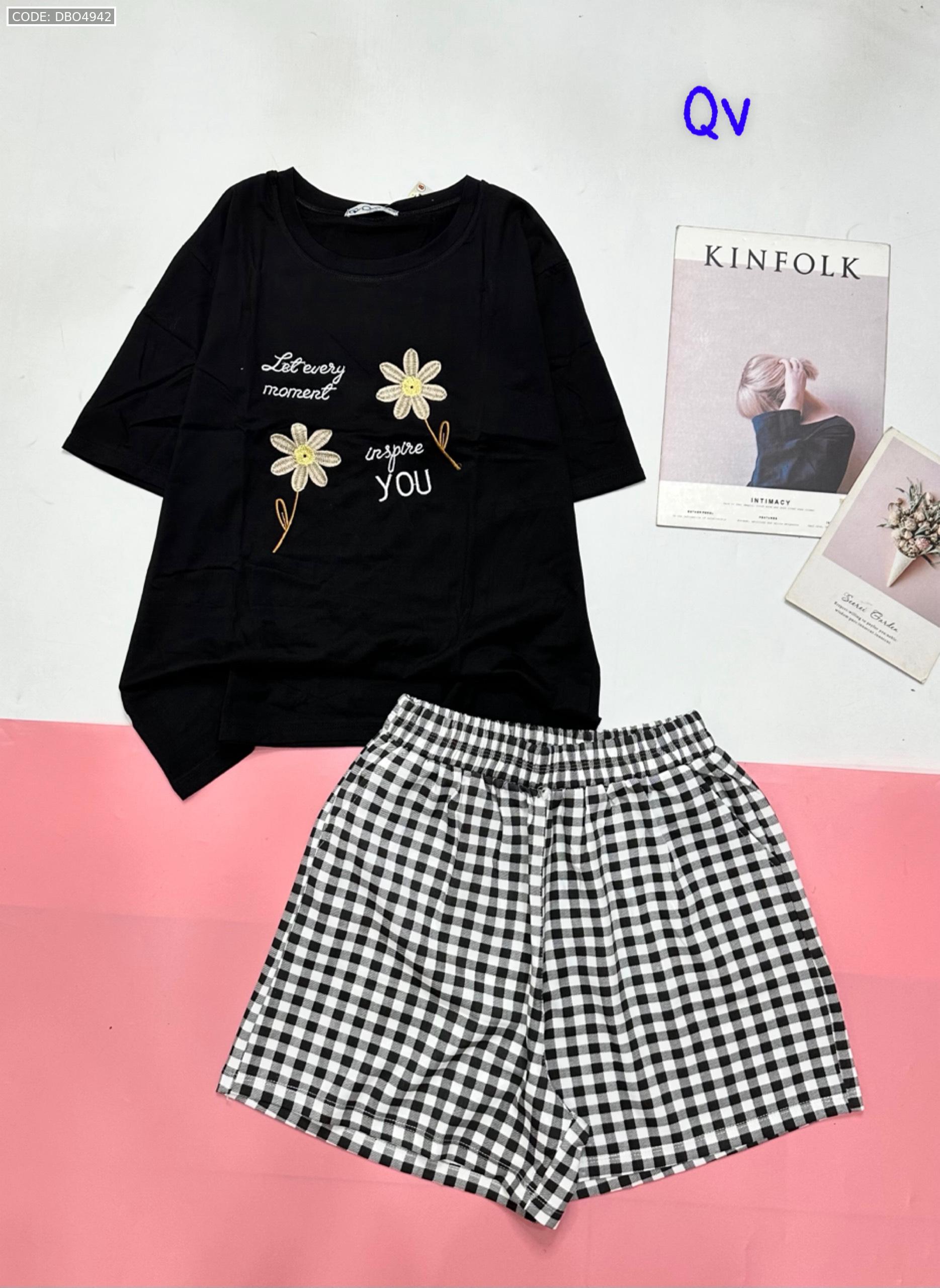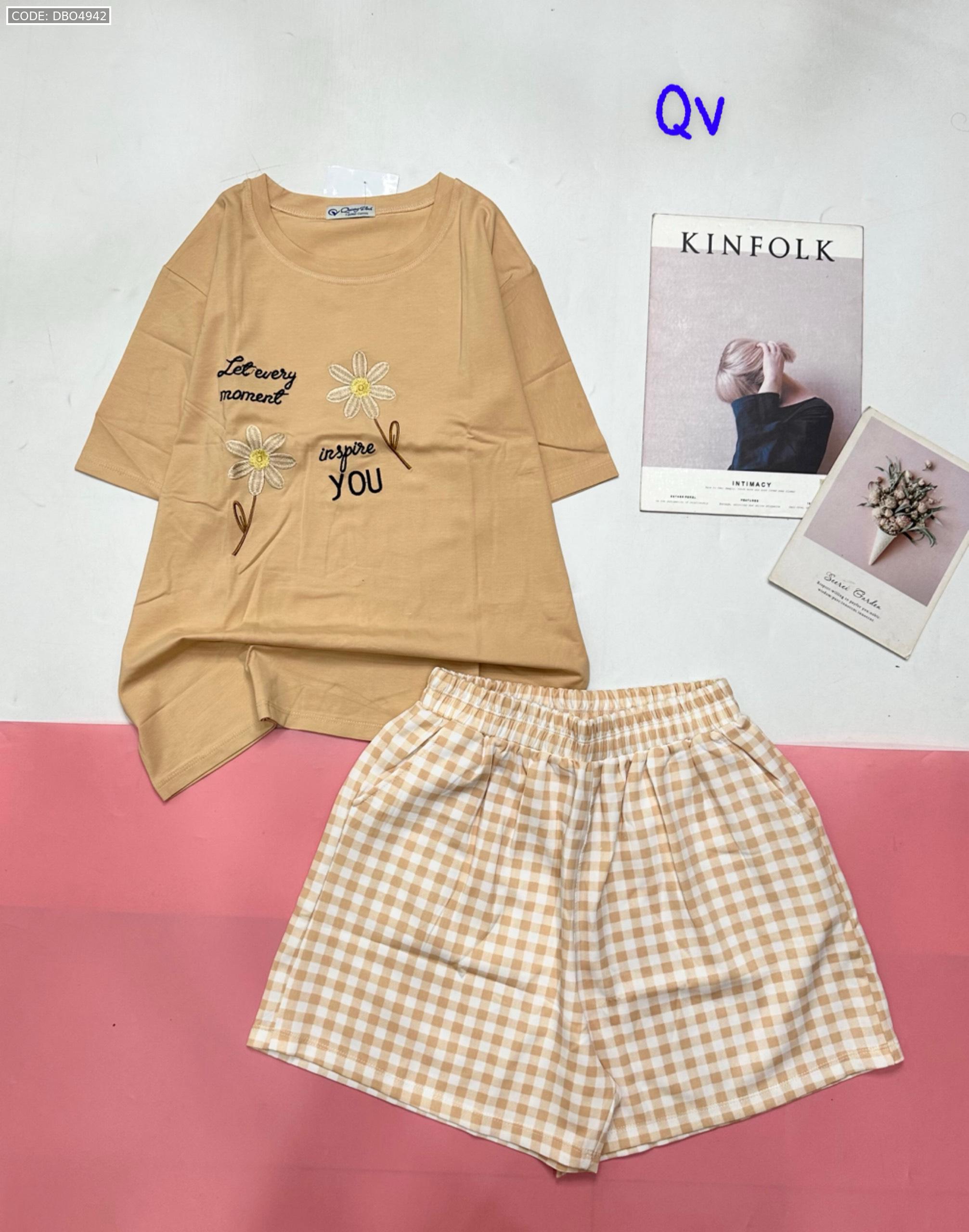 Giá sỉ đồ bộ quần đùi caroo áo tay ngắn in hình hoa