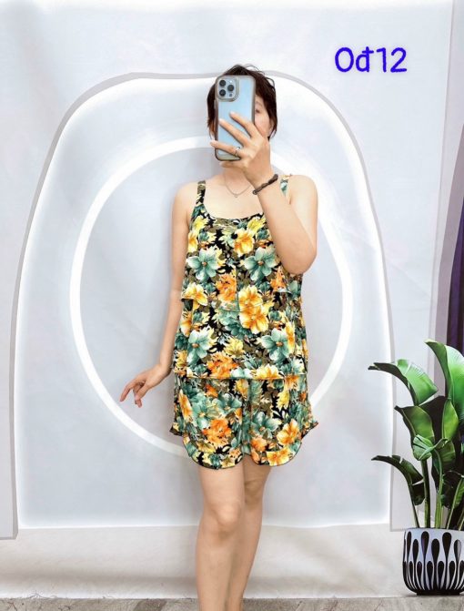 Giá sỉ đồ bộ quần đùi vải tonl áo hai tầng có nút