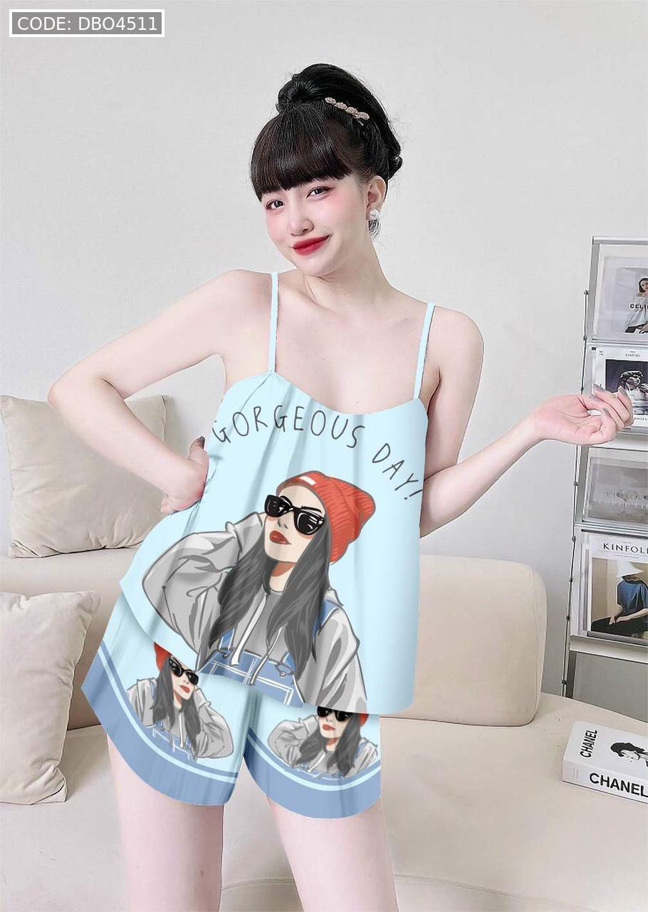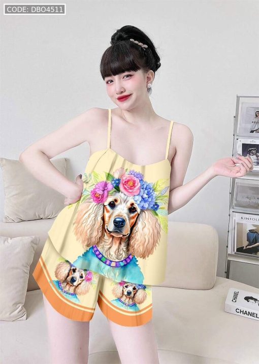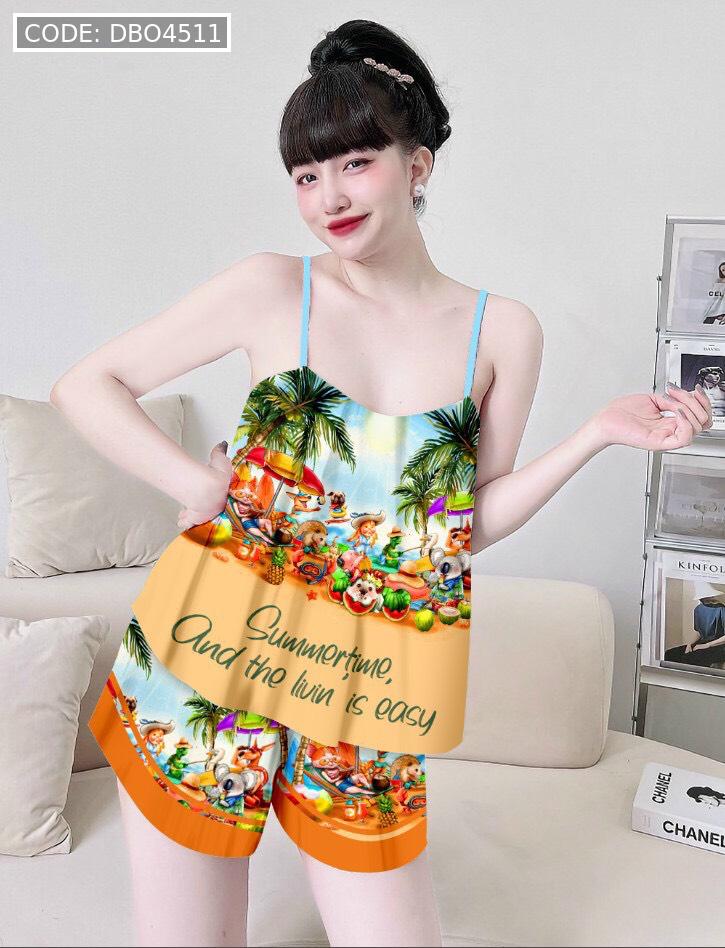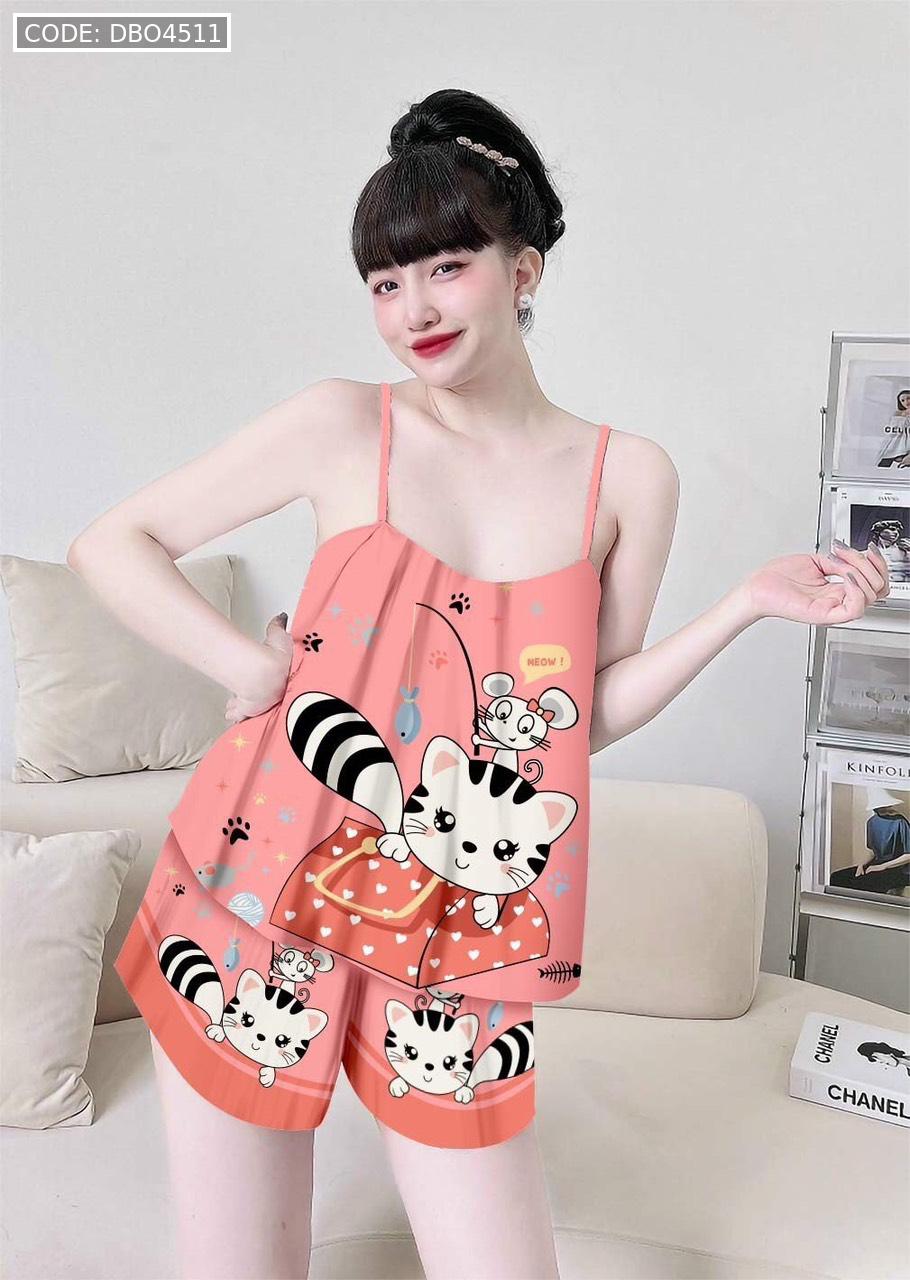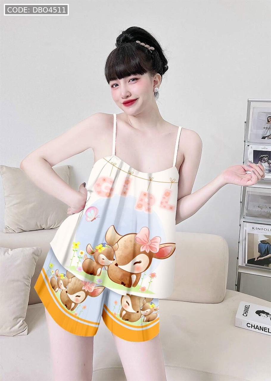 Giá sỉ đồ bộ quần đùi viền ống latin áo hai in hình dể thương