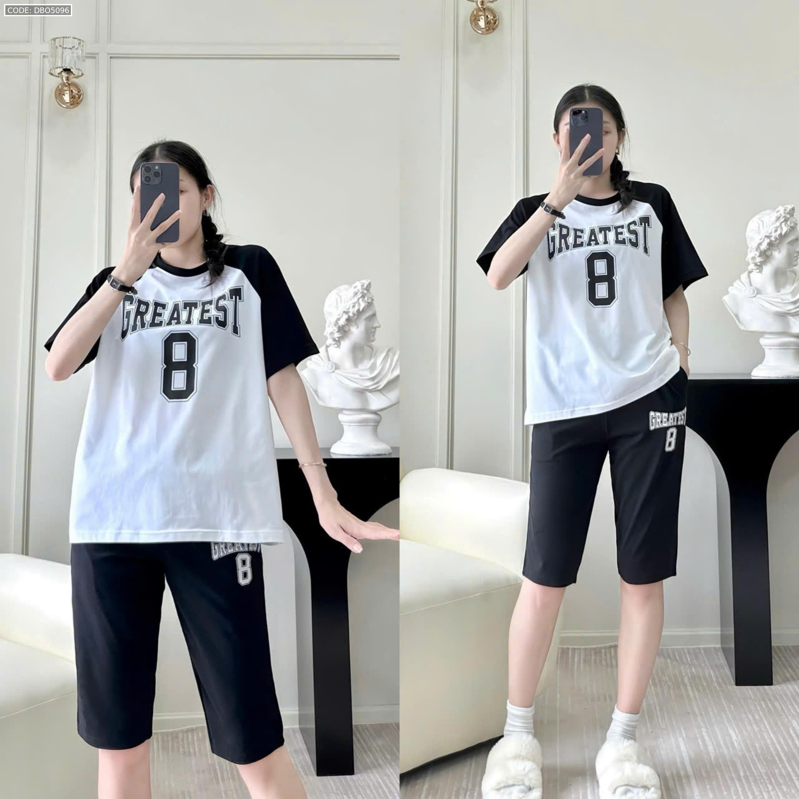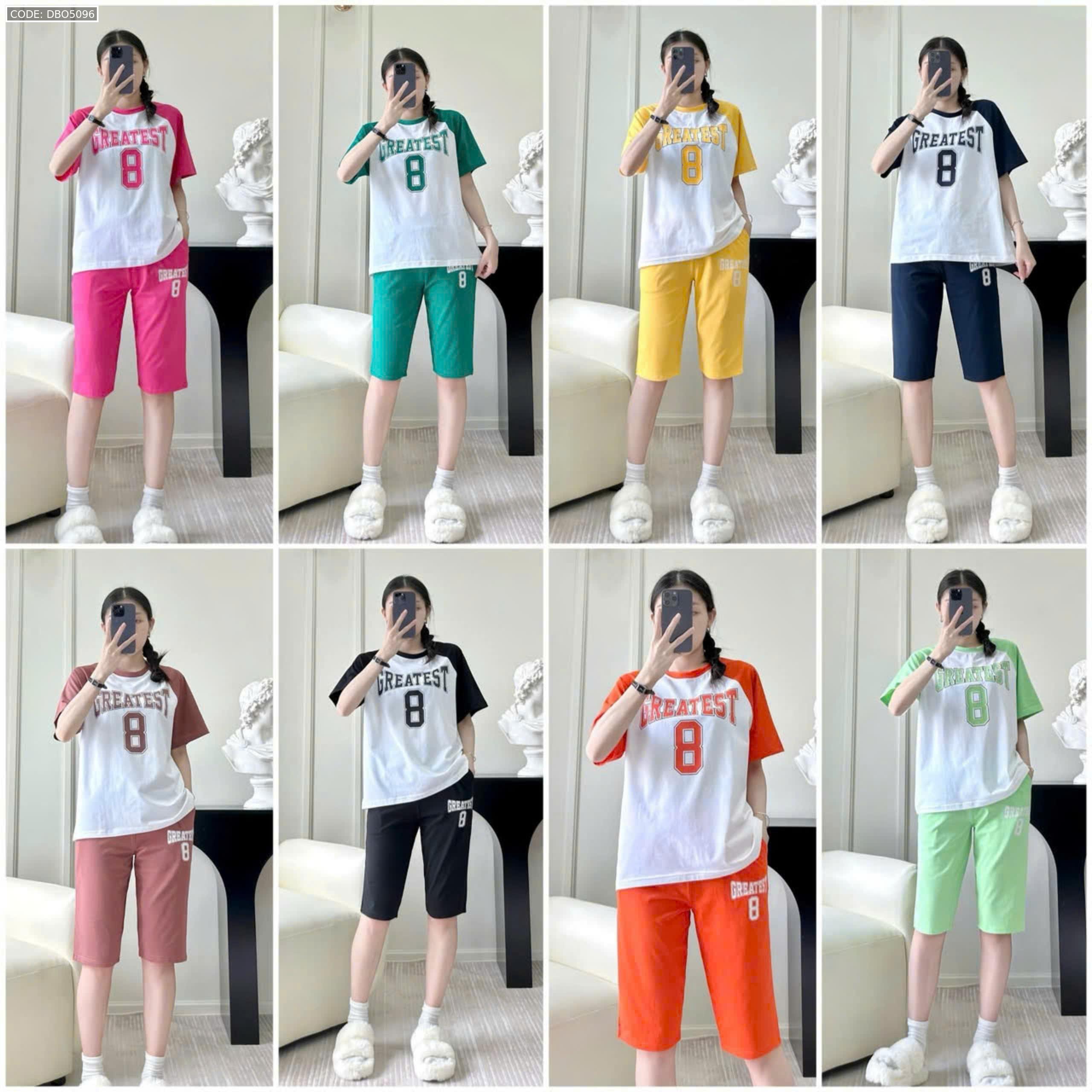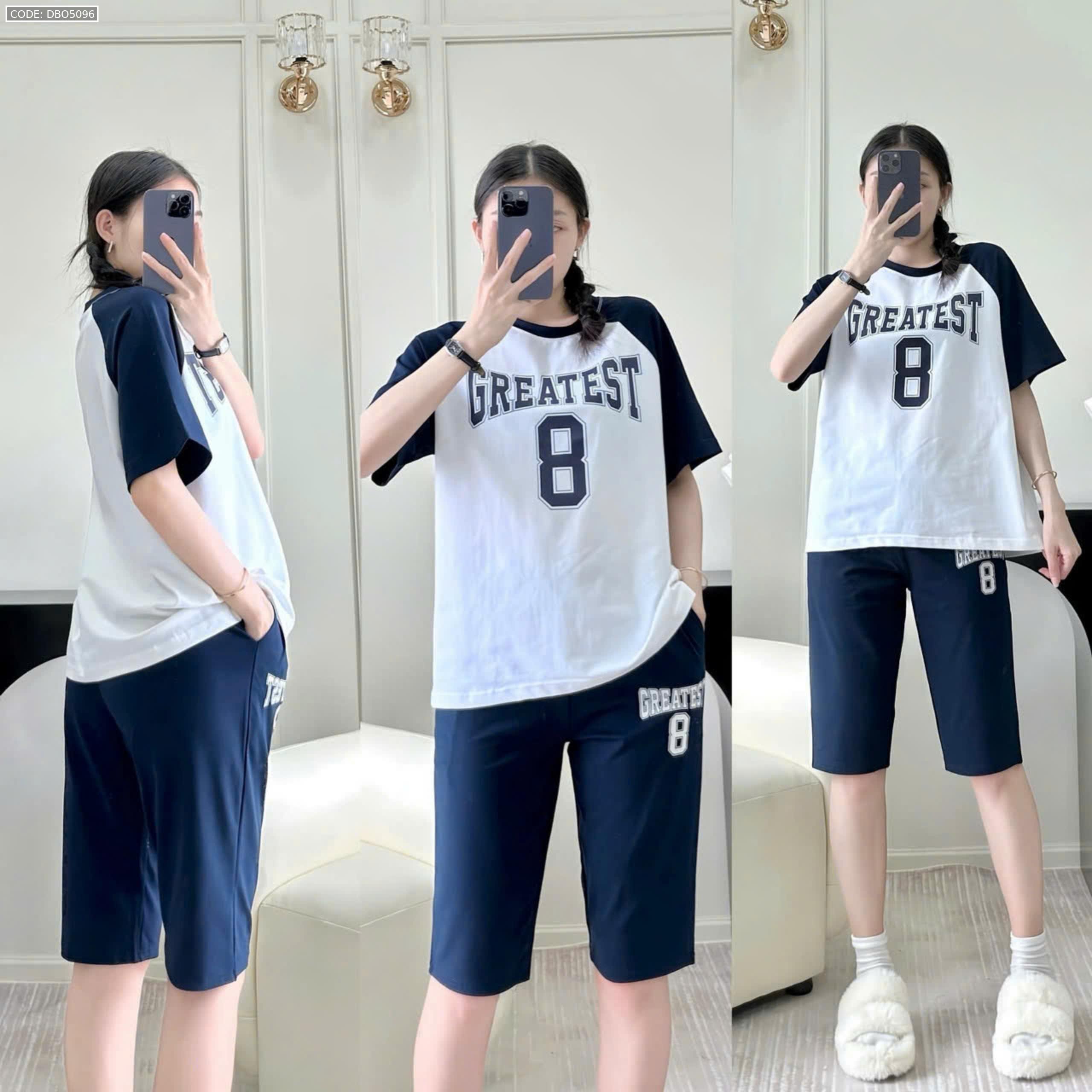 Giá sỉ đồ bộ quần lửng áo tay ngắn in số 8 tay áo cùng màu quần
