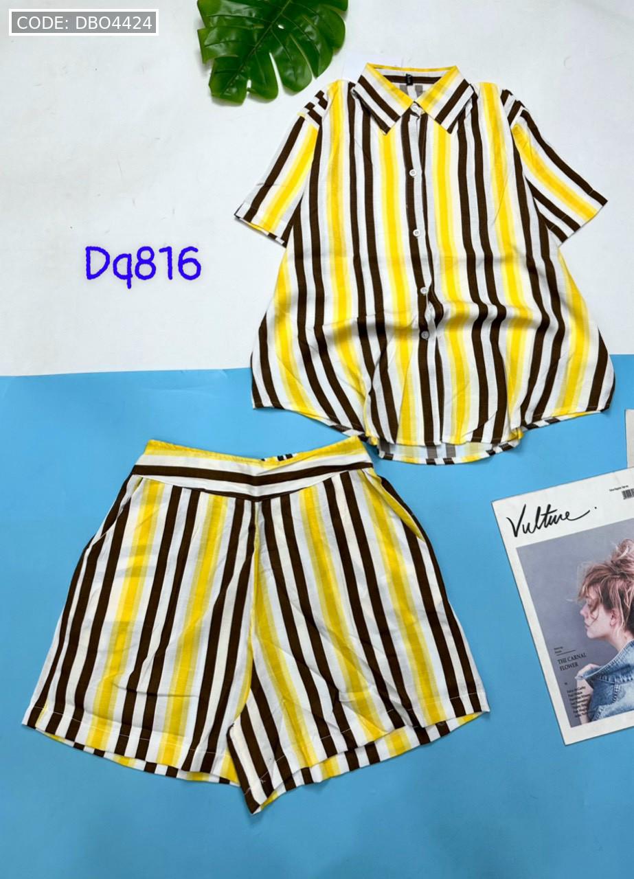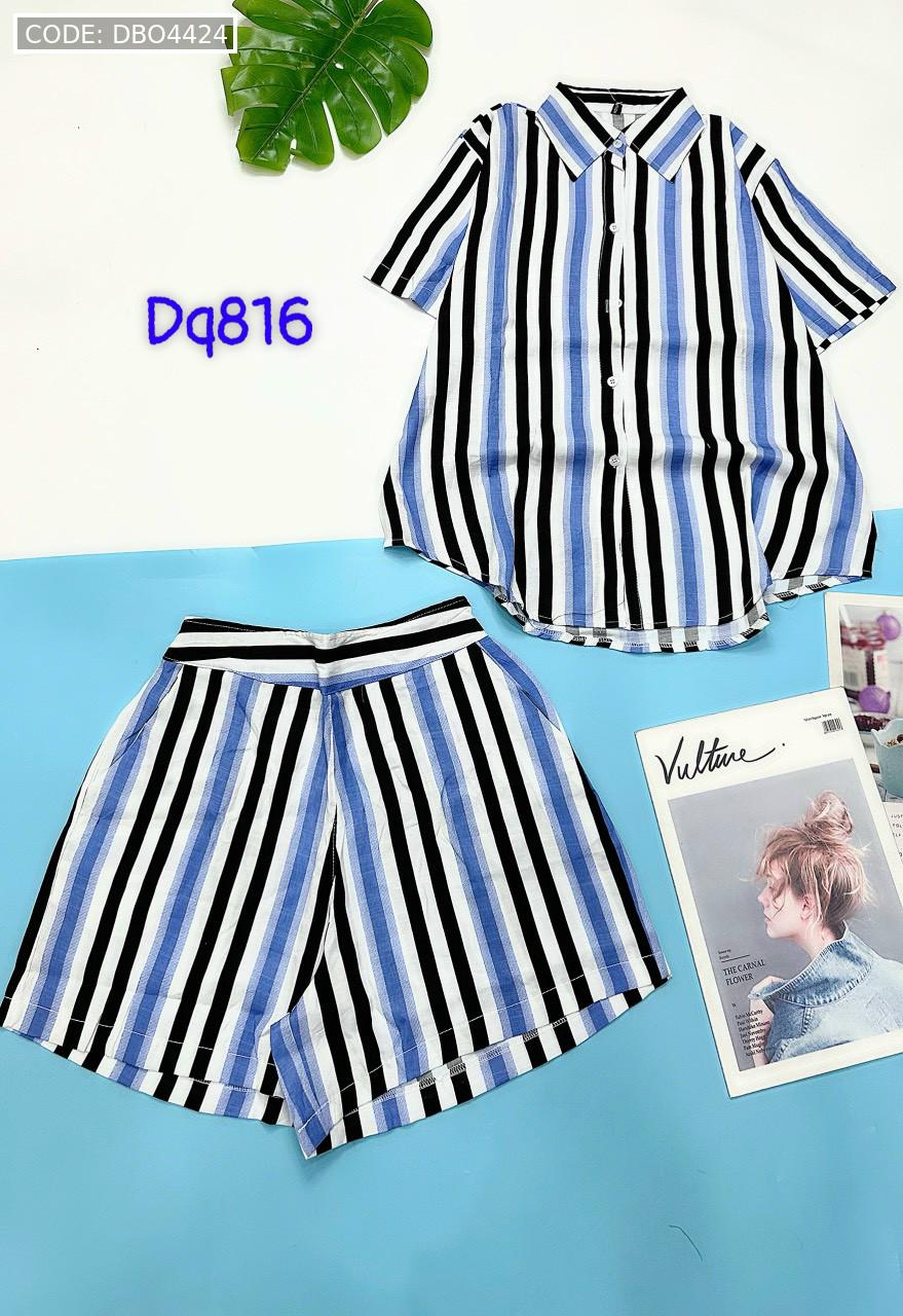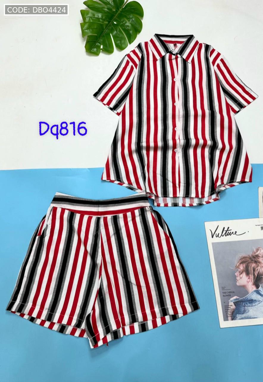 Giá sỉ đồ bộ sọc dài quần đùi áo sơ mi tay ngắn cổ bẻ