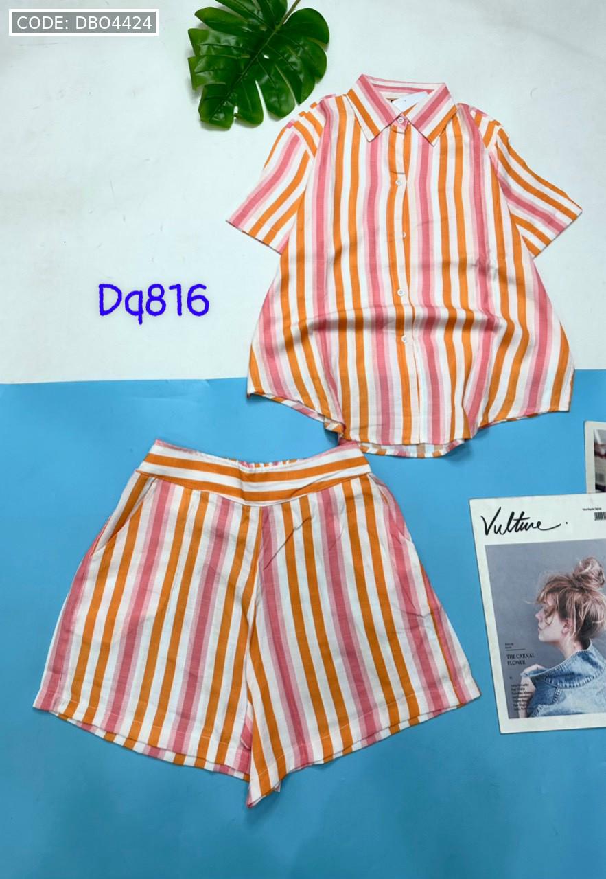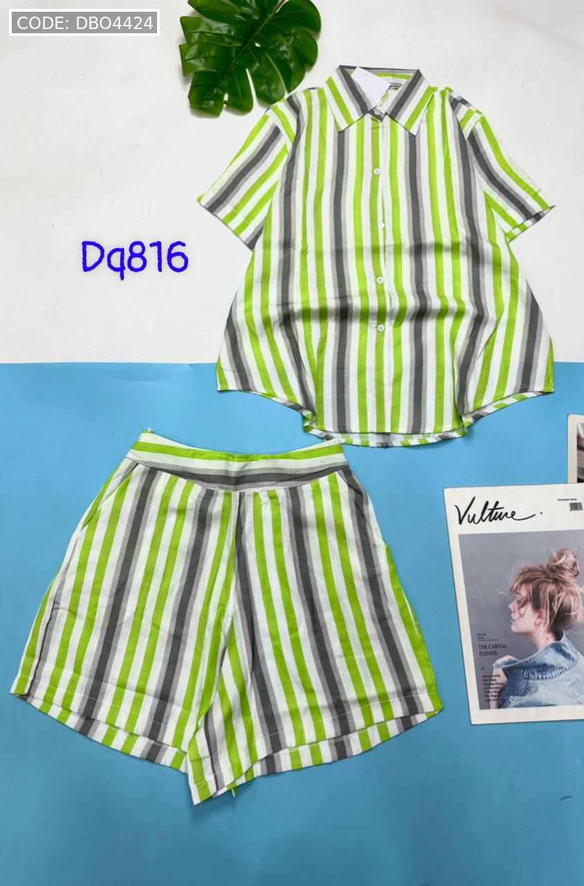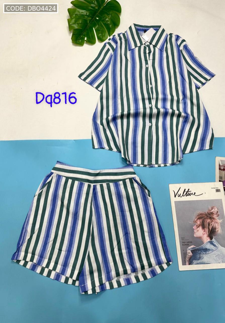 Giá sỉ đồ bộ sọc dài quần đùi áo sơ mi tay ngắn cổ bẻ
