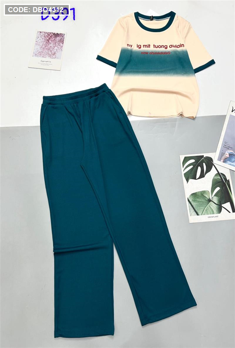 Đồ bộ tăm lạnh quần dài áo tay ngắn in chữ