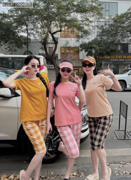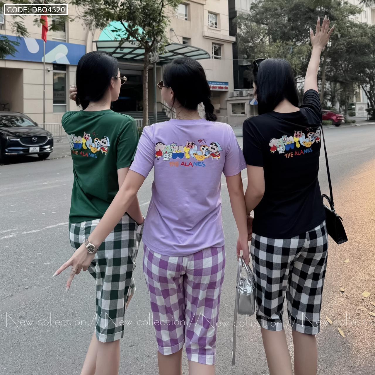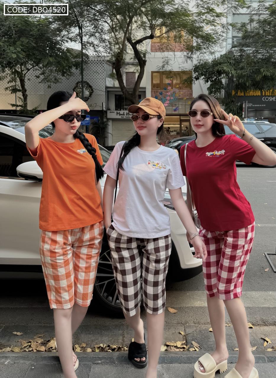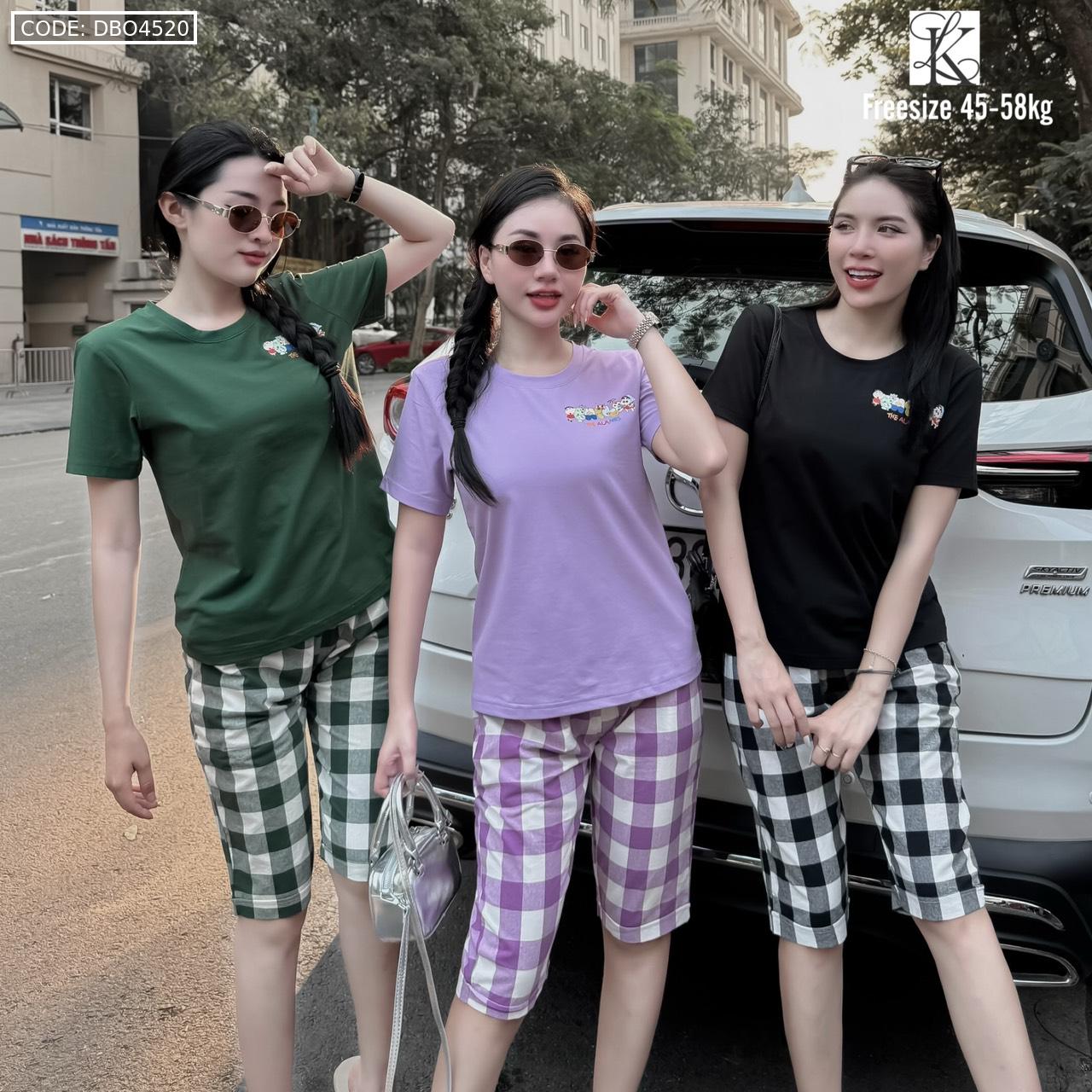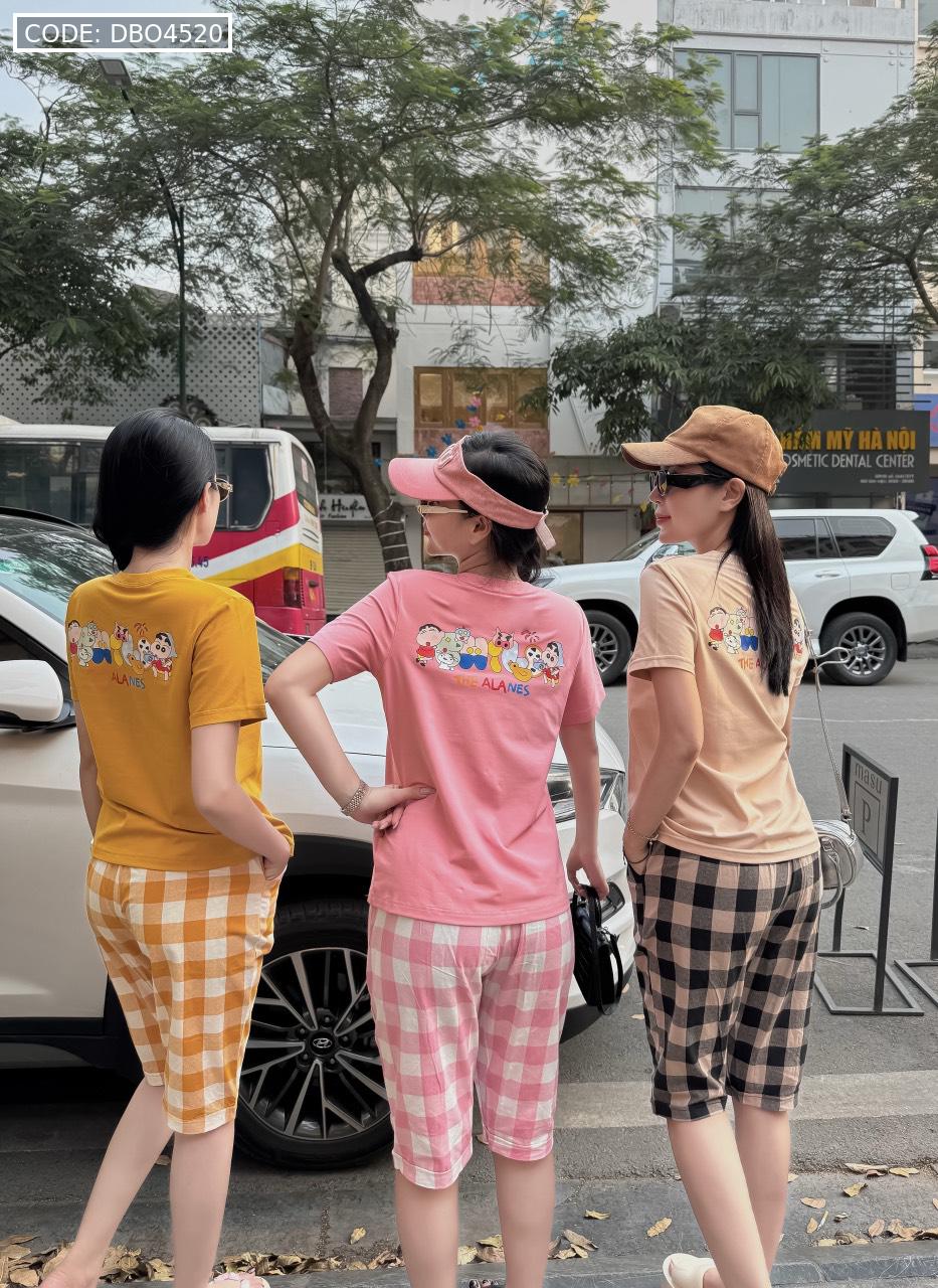 Giá sỉ đồ bộ thun cotton quần lửng kẻ ca rô áo tay ngắn in chữ The Alales