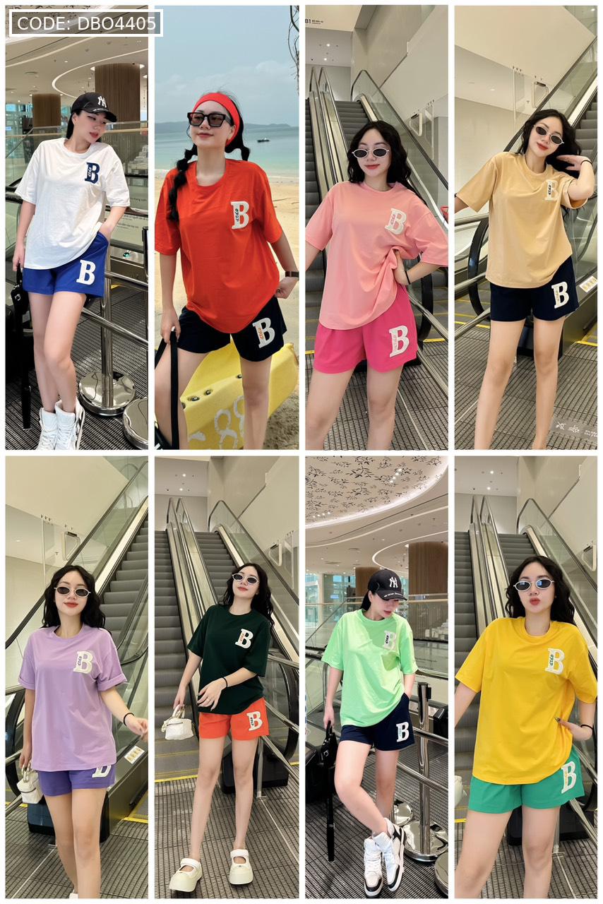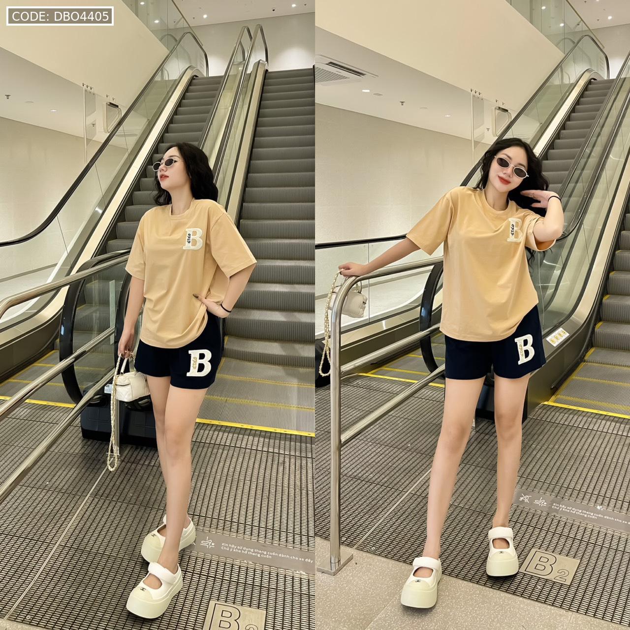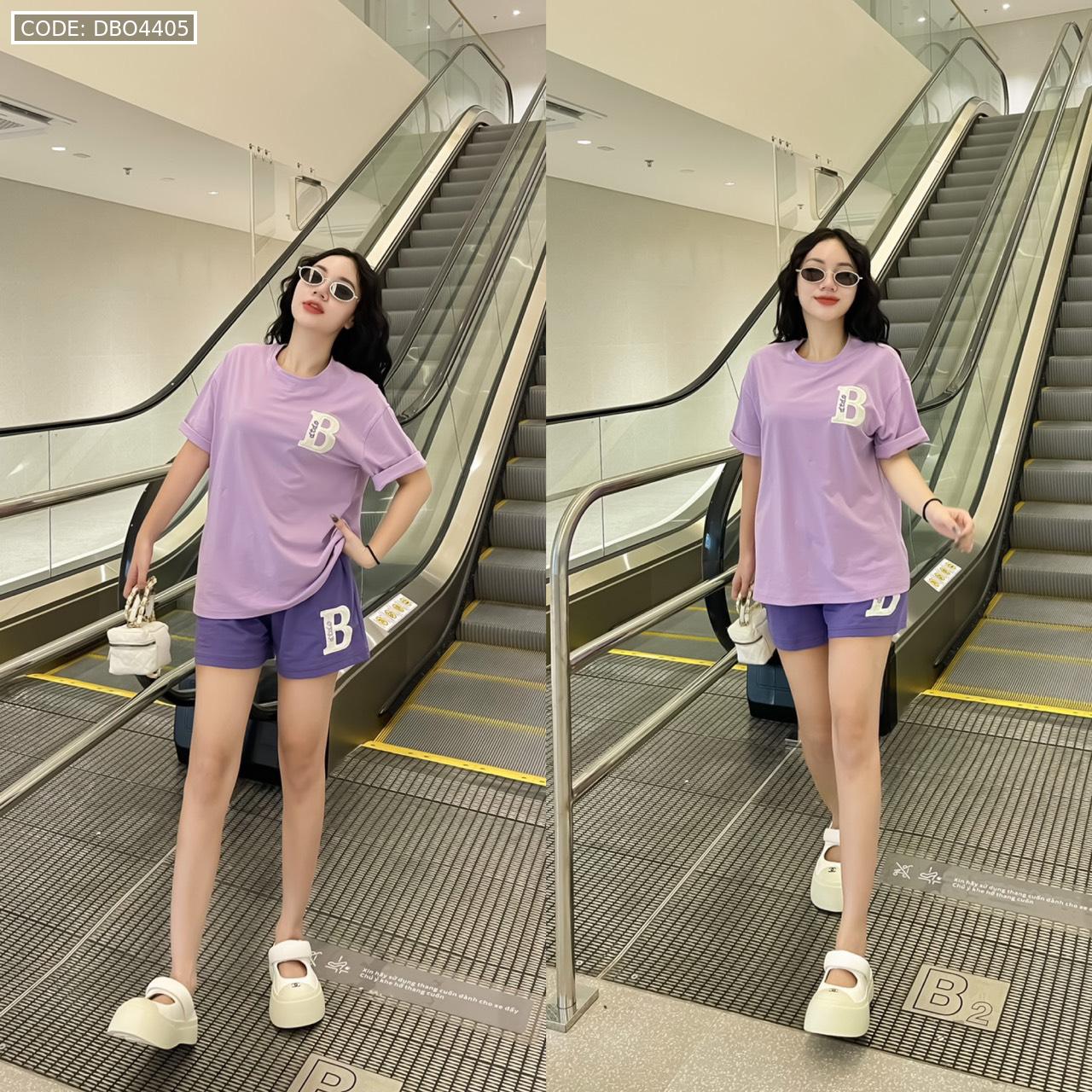 Giá sỉ đồ bộ thun nữ quần đùi thuê chữ B bên trái form rộng 65kg