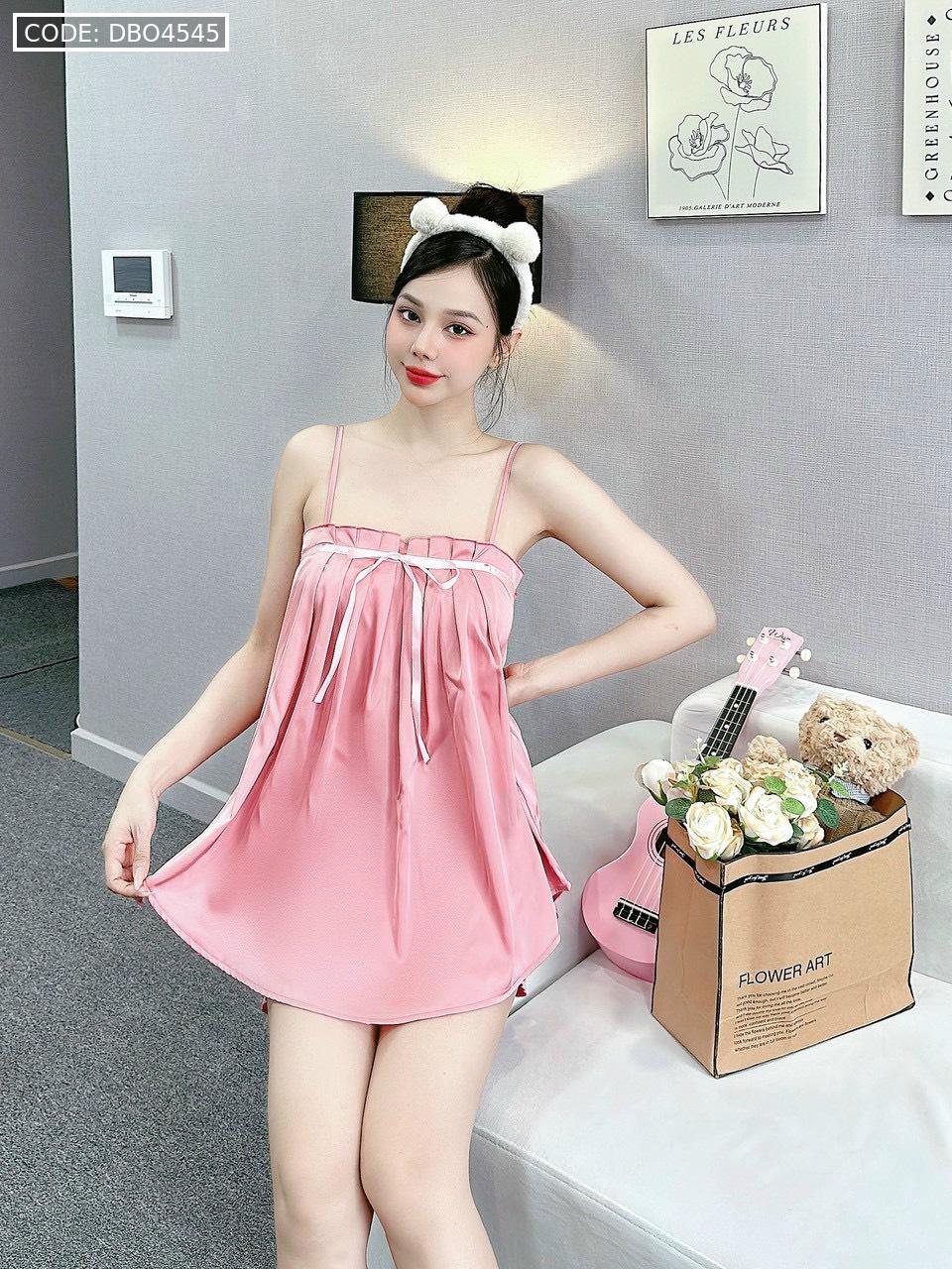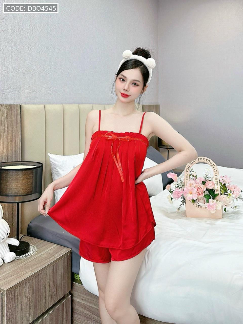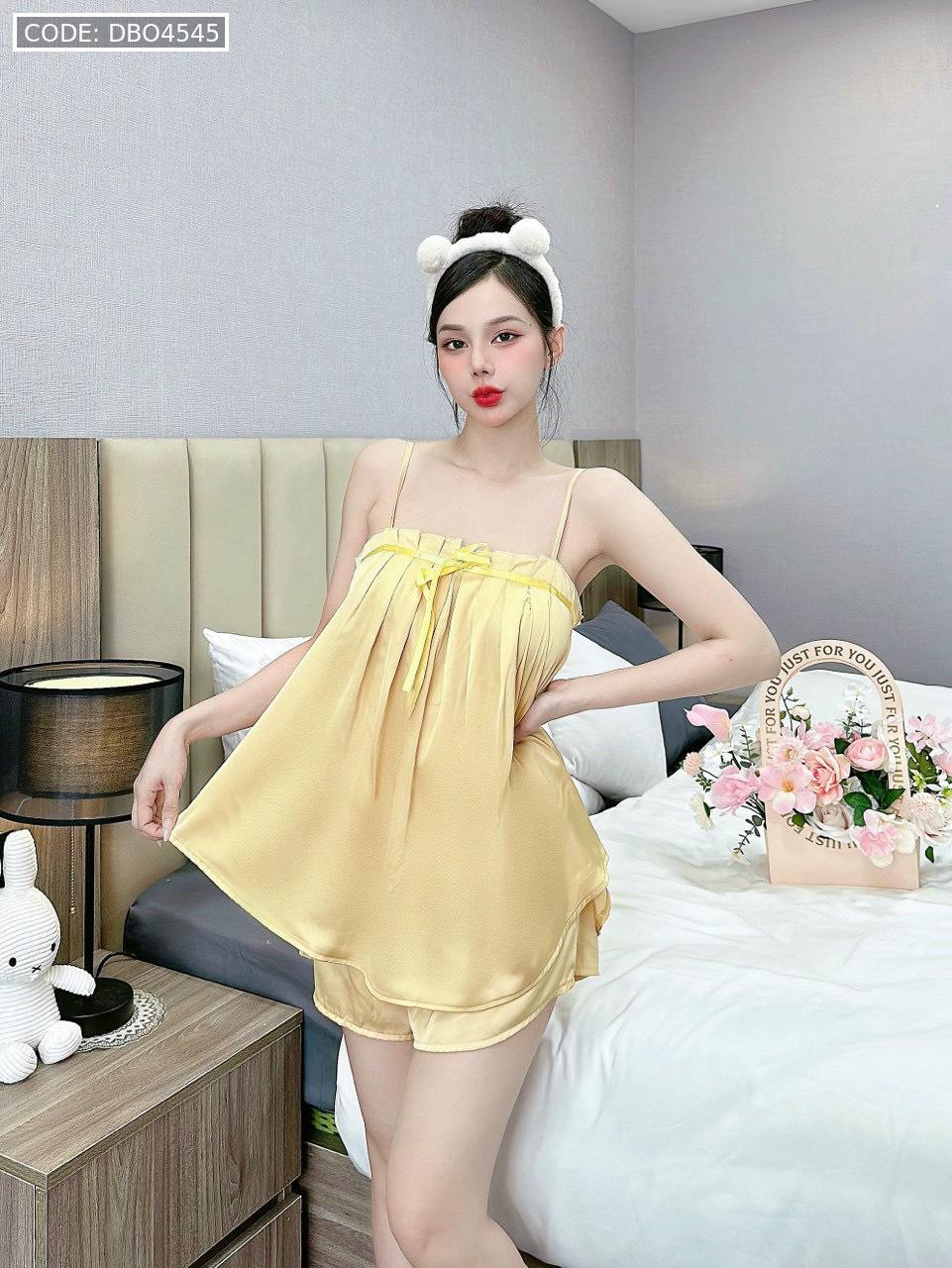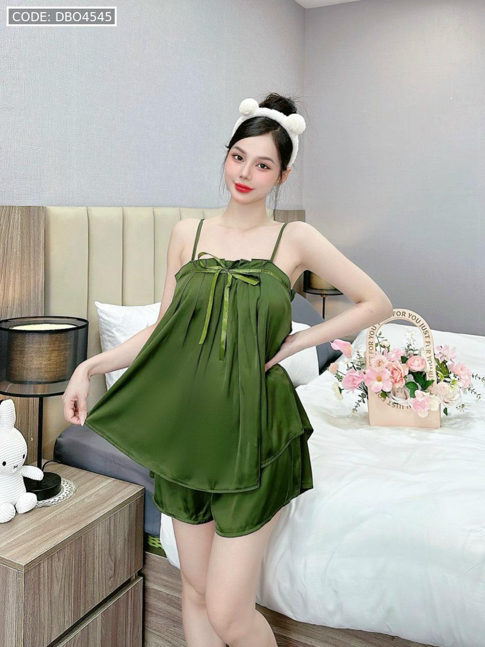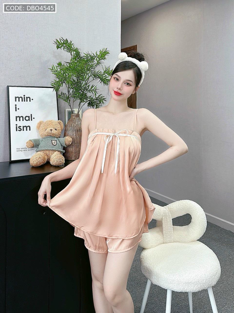 Giá sỉ đồ bộ trơn quần đùi latin áo hai dây xếp bèo nơ trước siêu mát