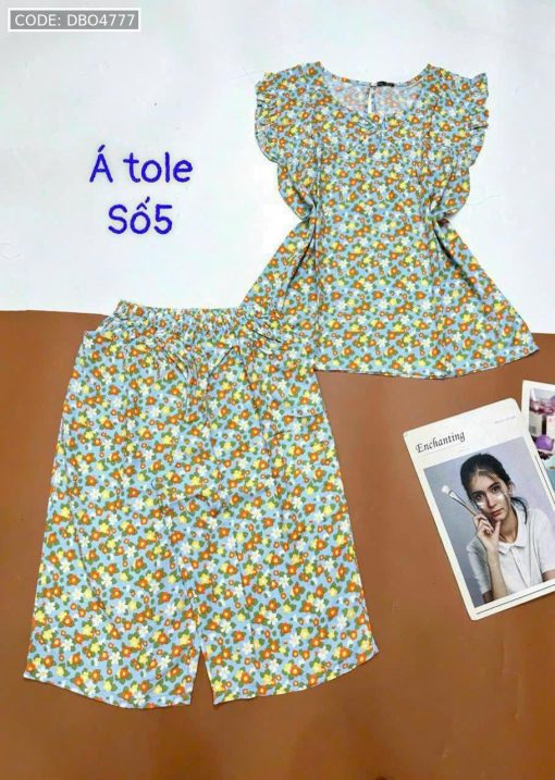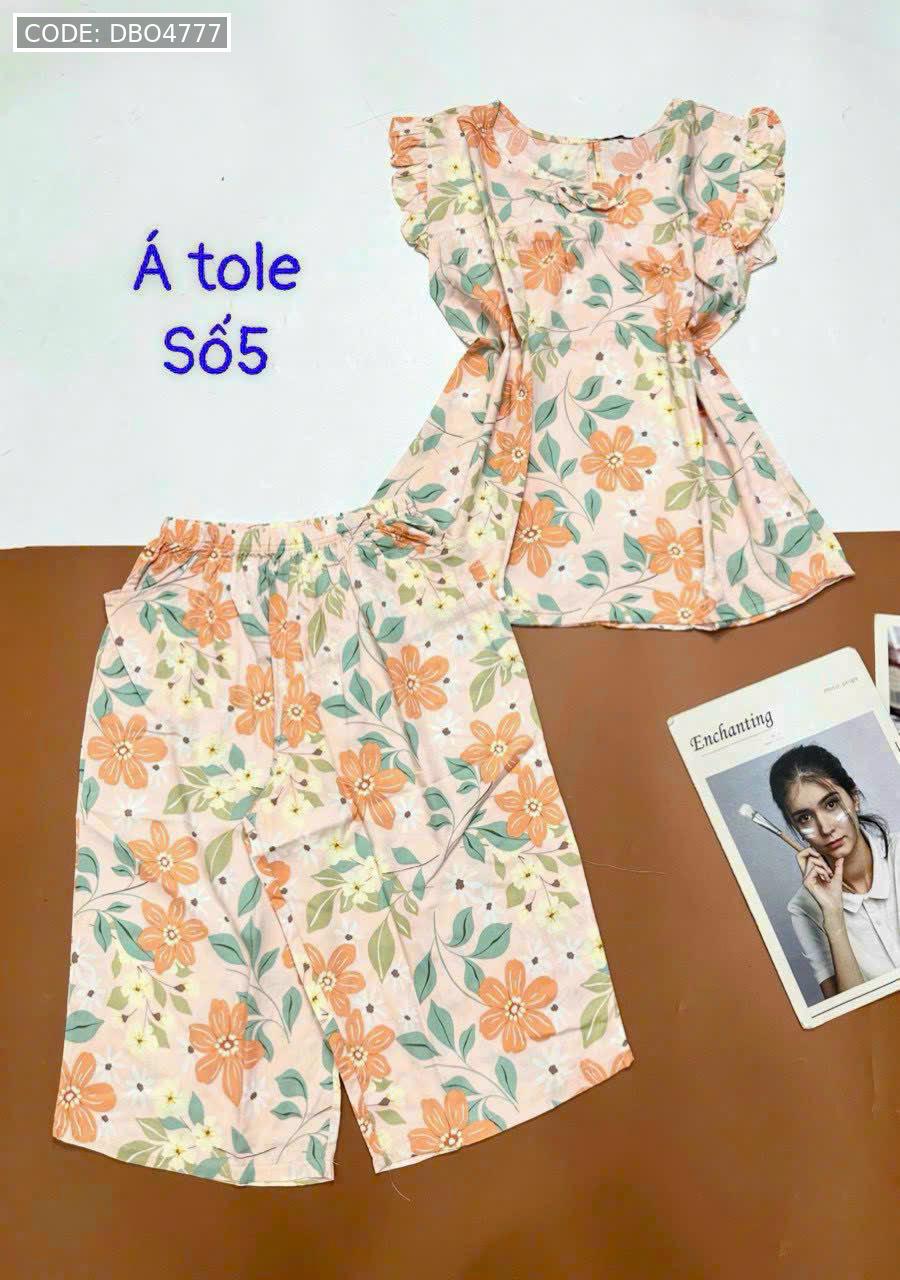 Giá sỉ đồ bộ vải á tole số 5 quần lửng áo sát nách bèo nhiều hoạ tiết