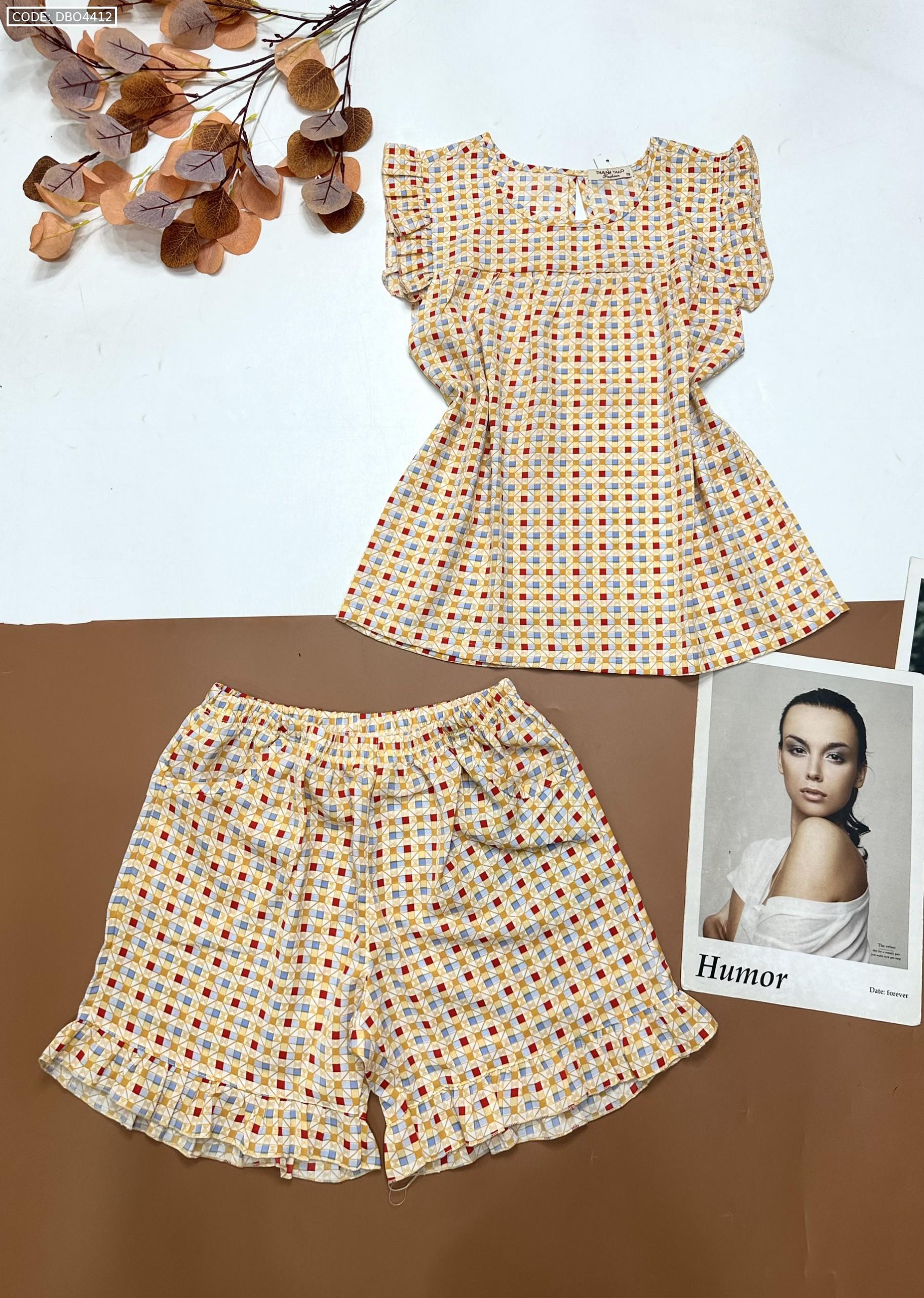 Giá sỉ đồ bộ vải kate quần đùi viền bèo áo sát nách bèo