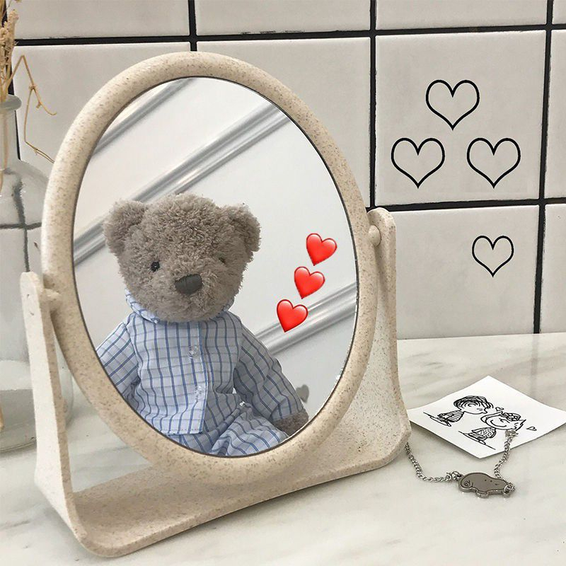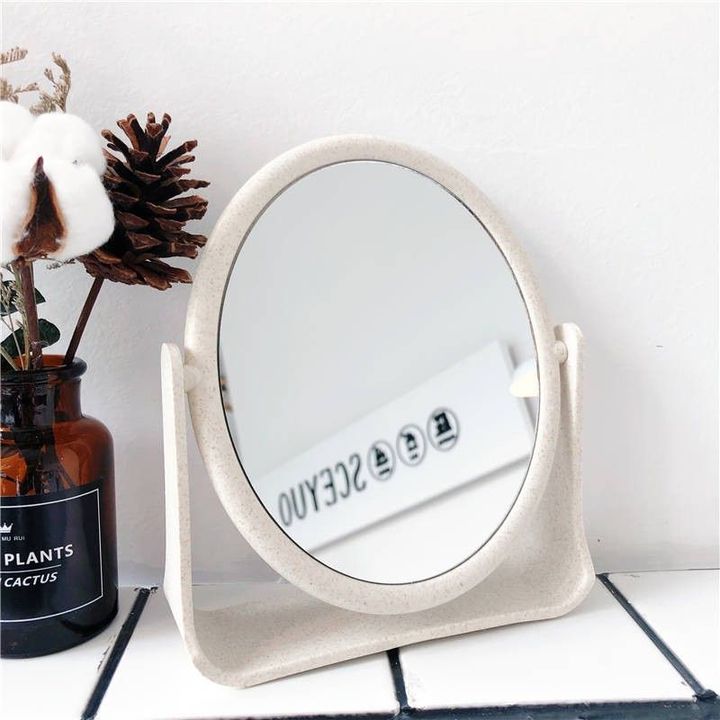 Giá sỉ gương Tròn Để Bàn Lúa Mạch – Giương Trang Điểm Để Bàn – Gương Nhựa – Khớp Xoay 360 Độ 19x16cm