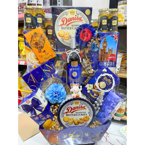 Mỗi giỏ đều được phối trang trí tỉ mỉ, lên form chắc chắn, tone màu đồng bộ, điểm nhấn sang trọng – mang đúng tinh thần chúc an khang – thịnh vượng – sum vầy của ngày Tết Việt.