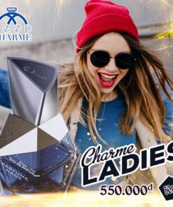 Nước hoa Ladies như hiện thân của người những thiếu nữ, nữ tính được ẩn sâu bên trong, nhường chỗ cho sự bùng nổ và 1 chút sành điệu nổi loạn. Như cái tên của mình, Charme không chỉ muốn khơi dậy khứu giác mà còn ở thị giác qua lớp hương vô hình như một tấm kính phản chiếu ánh sáng lấp lánh sang trọng. Thiết kế vỏ chai của nước hoa cùng độc đáo hộp là 1 khối tam giác cùng các đường khắc bạc nhỏ xíu đáng yêu. Chiếc nắp bạc sáng bóng với logo Charme được điểm xuyến rất tinh tế.