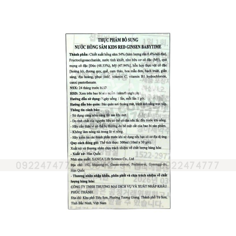 Giá sỉ nước Uống Hồng Sâm Baby Sanga Hàn Quốc Hộp 30 Gói – Dành Cho Bé