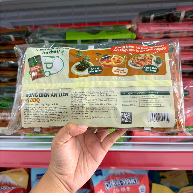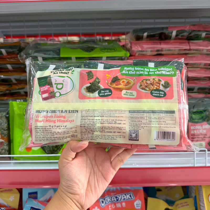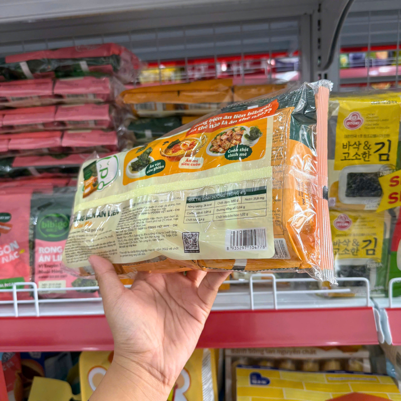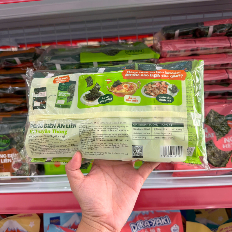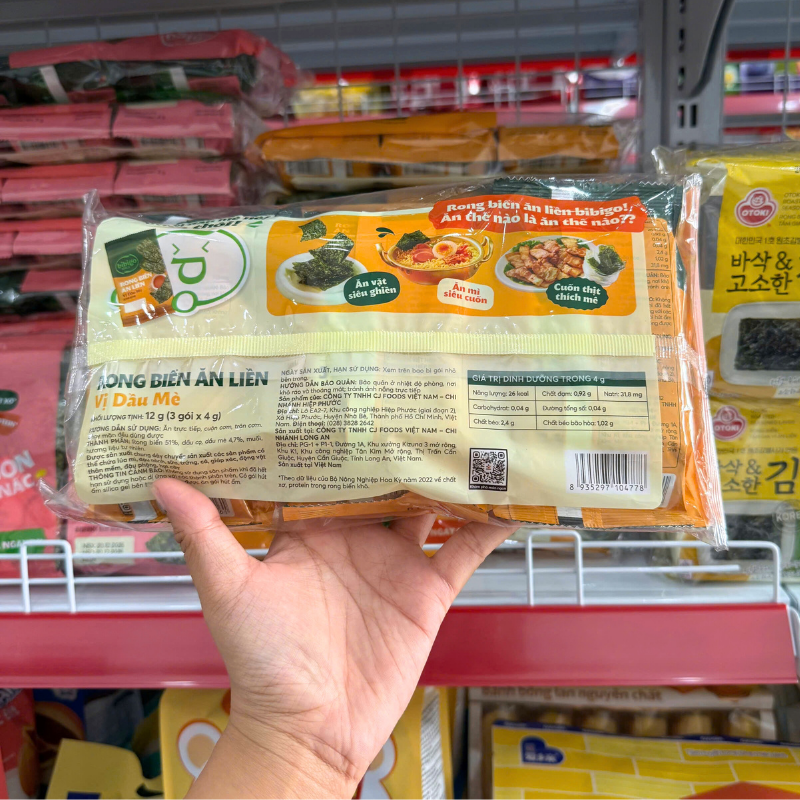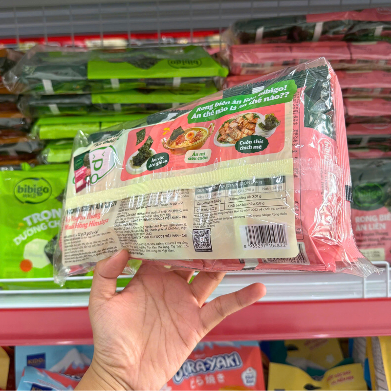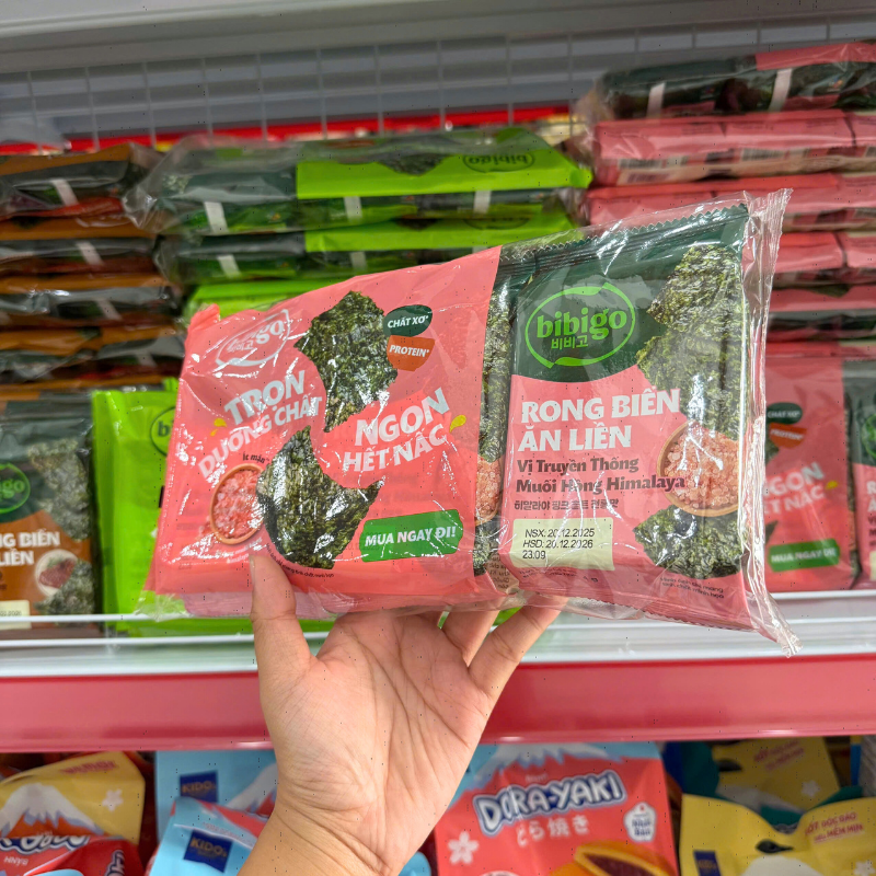 Giá sỉ rong Biển Ăn Liền Bibigo Gồm 4 Vị (Truyền Thống, Dầu Mè, Muối Hồng, BBQ) – 1 Lốc 3 Gói