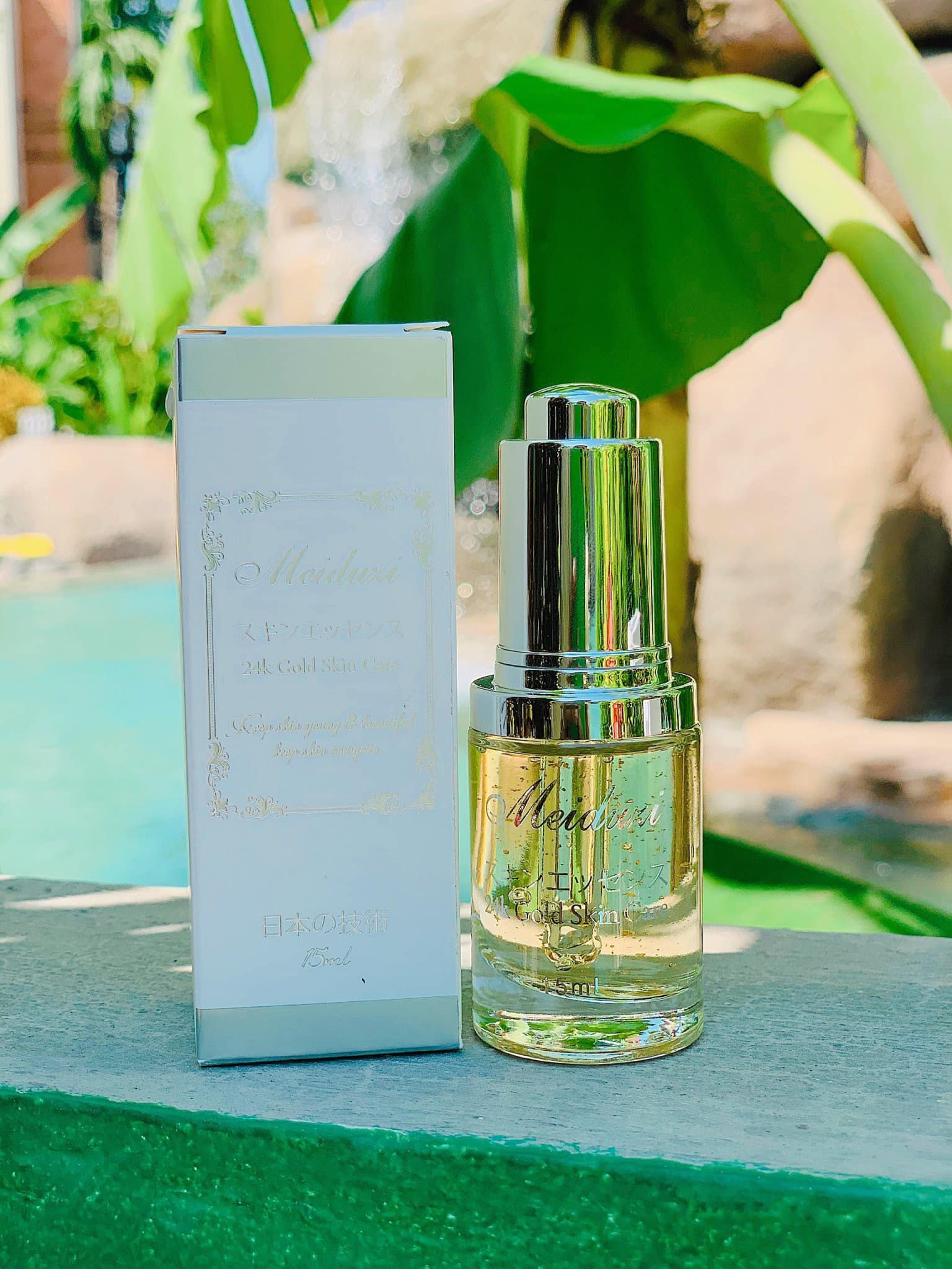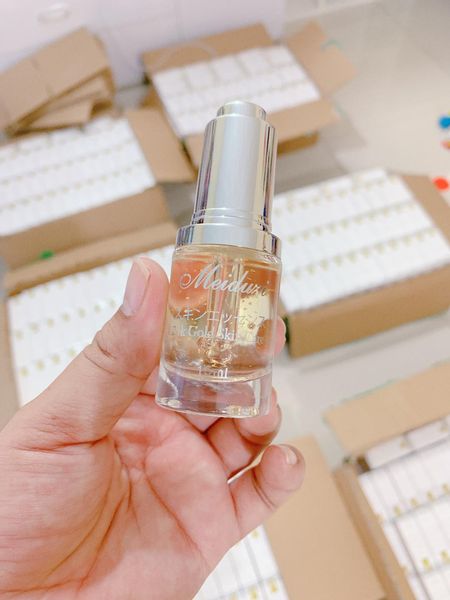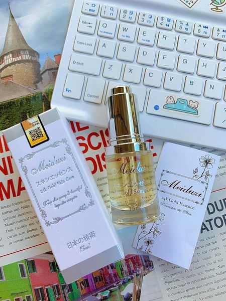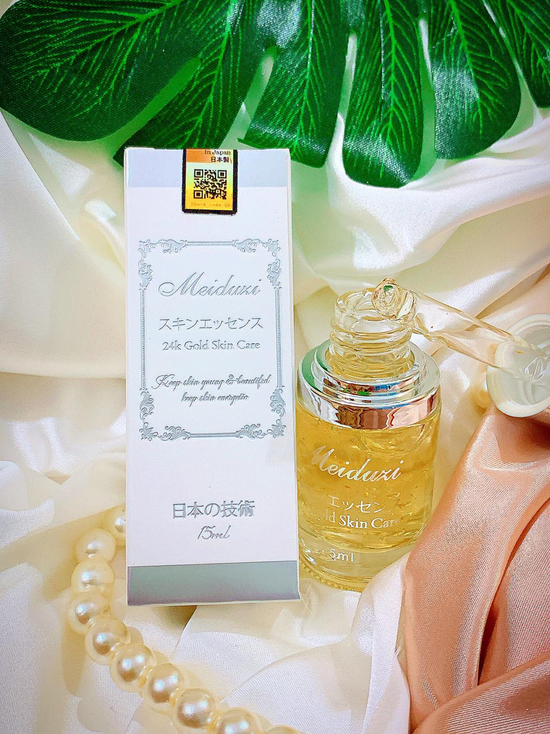 – Cách sử dụng Meiduzi Gold Esence 24k: Sau khi làm sạch da bằng các loại dưỡng da cơ bản như rửa mặt, xịt khoáng, chị em lấy 2-3 giọt tinh chất ra lòng bàn tay. Sau đó xoa ra lòng bàn tay và vỗ nhẹ lên mặt để serum thẩm thấu vào da tốt hơn.