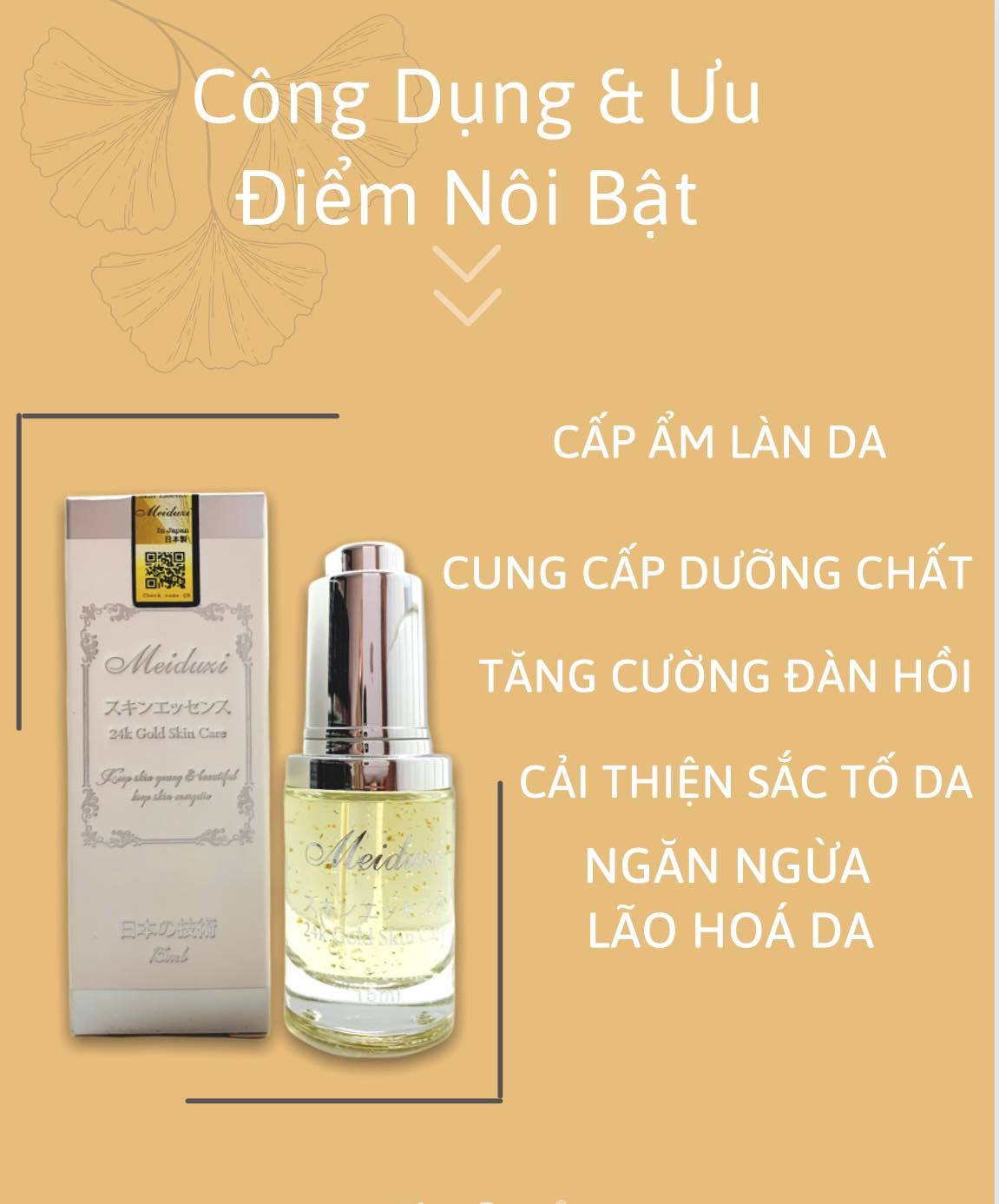 Tác dụng của Meiduzi 24k Gold là gì Sự kết hợp của các thành phần dưỡng da hiệu quả mang đến sản phẩm Tinh chất vàng 24k Meiduzi với tinh chất dưỡng da cô đặc với những công dụng tuyệt vời:
