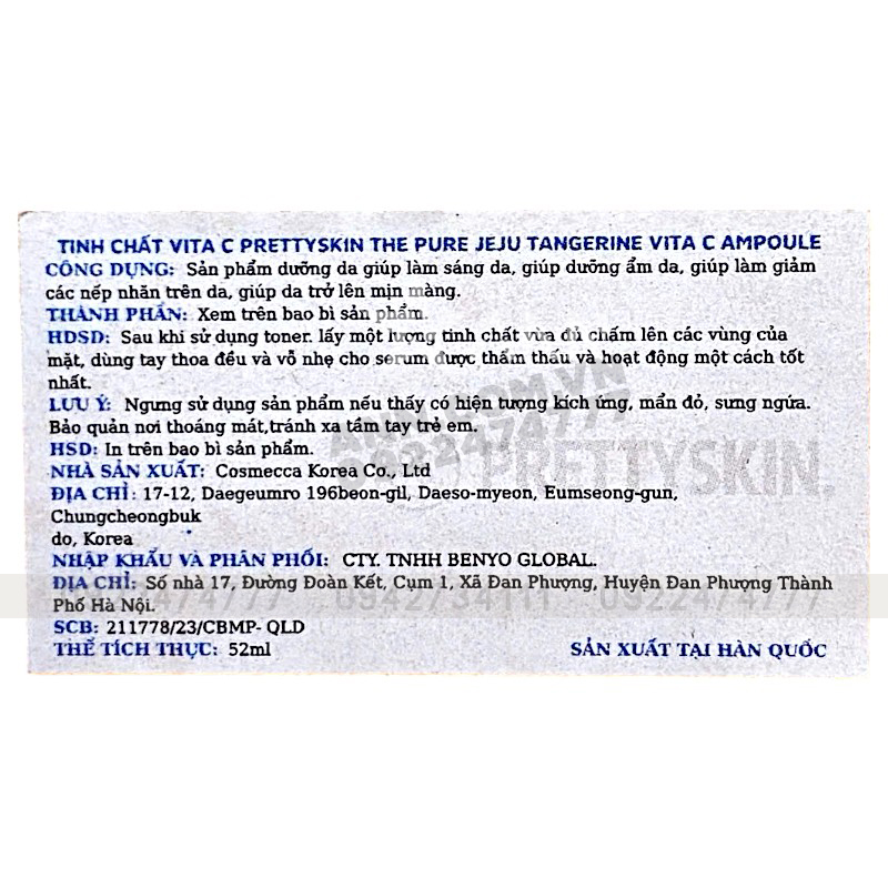 Giá sỉ serum Prettyskin The Pure Jeju Tangerine Vita C Ampoule 52ml