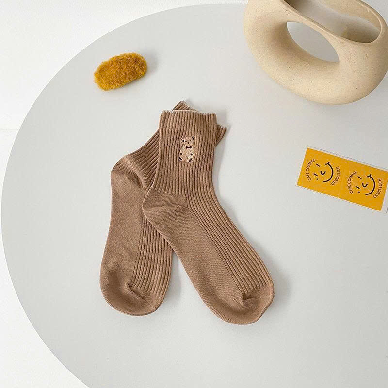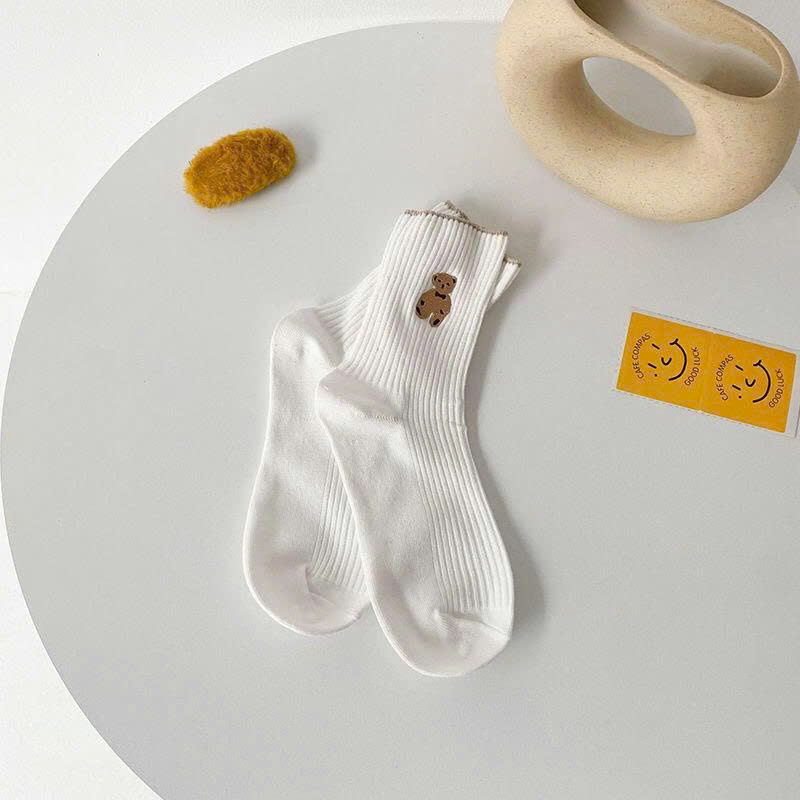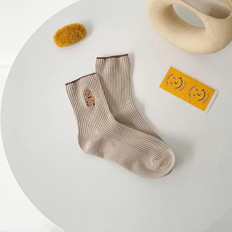 Giá sỉ set 5 Đôi Vớ Cổ Cao Họa Tiết Hình Gấu – Đôi Tất Cổ Cao Phong Cách Hàn Quốc