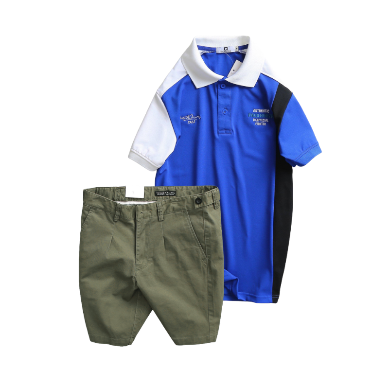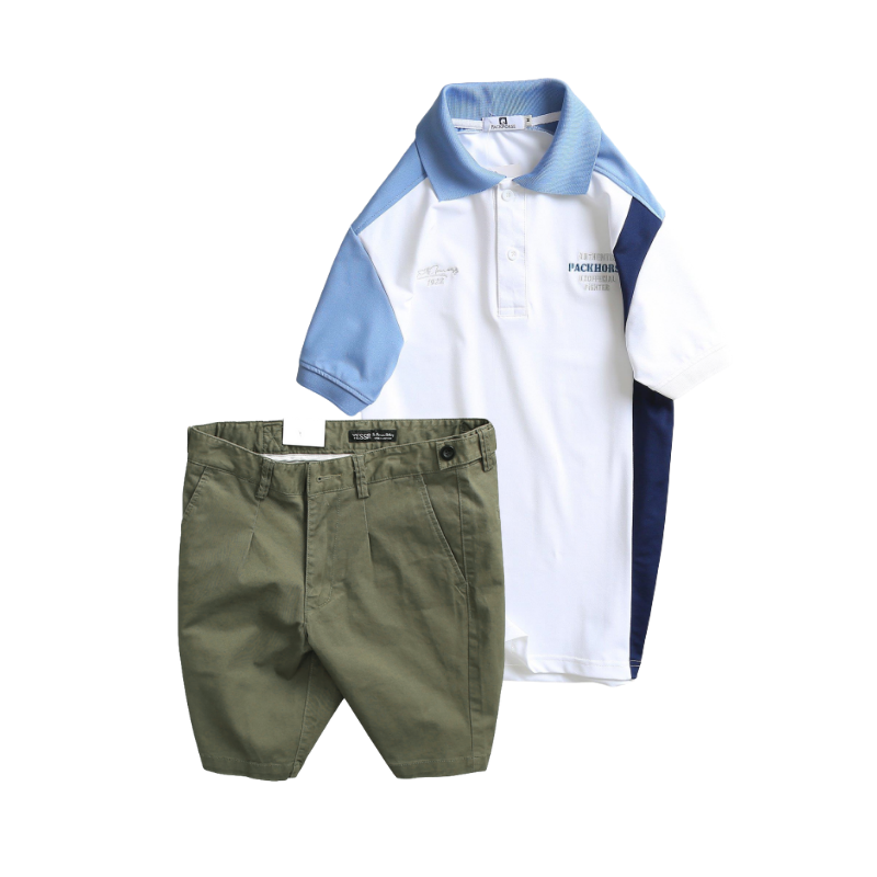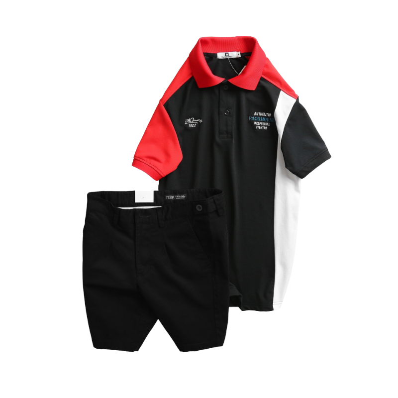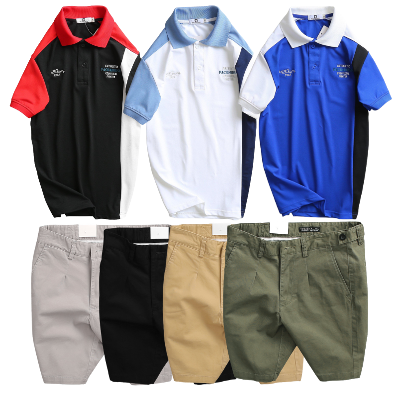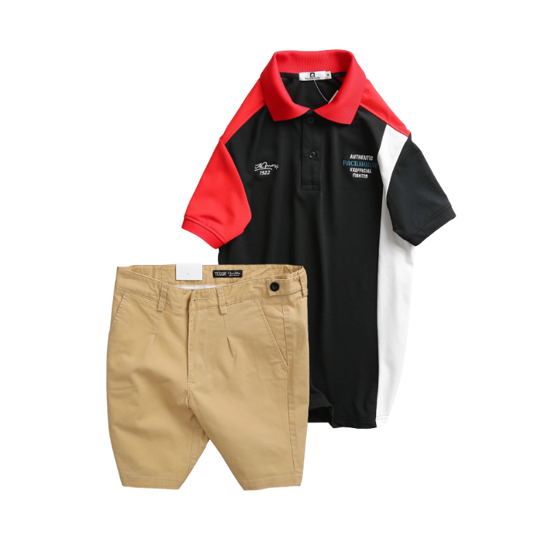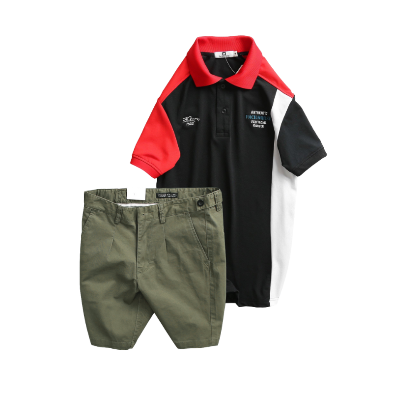 Giá sỉ set Bộ Nam – Áo Thun Nam Polo Cổ Bẻ Cá Sấu Poly Cổ Bẻ Ghép Vải Thêu Chữ Trước Ngực Và Quần Short Kaki Co Giãn Phối Nút Cao Cấp (Có Size 36)