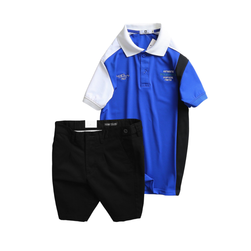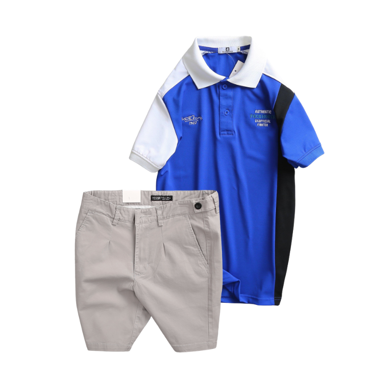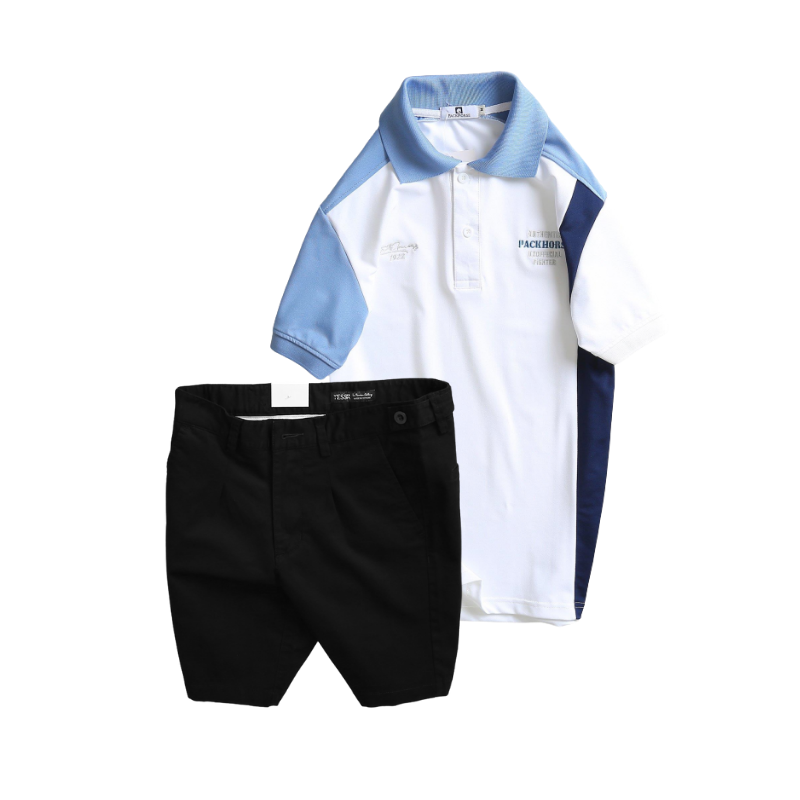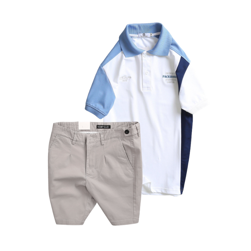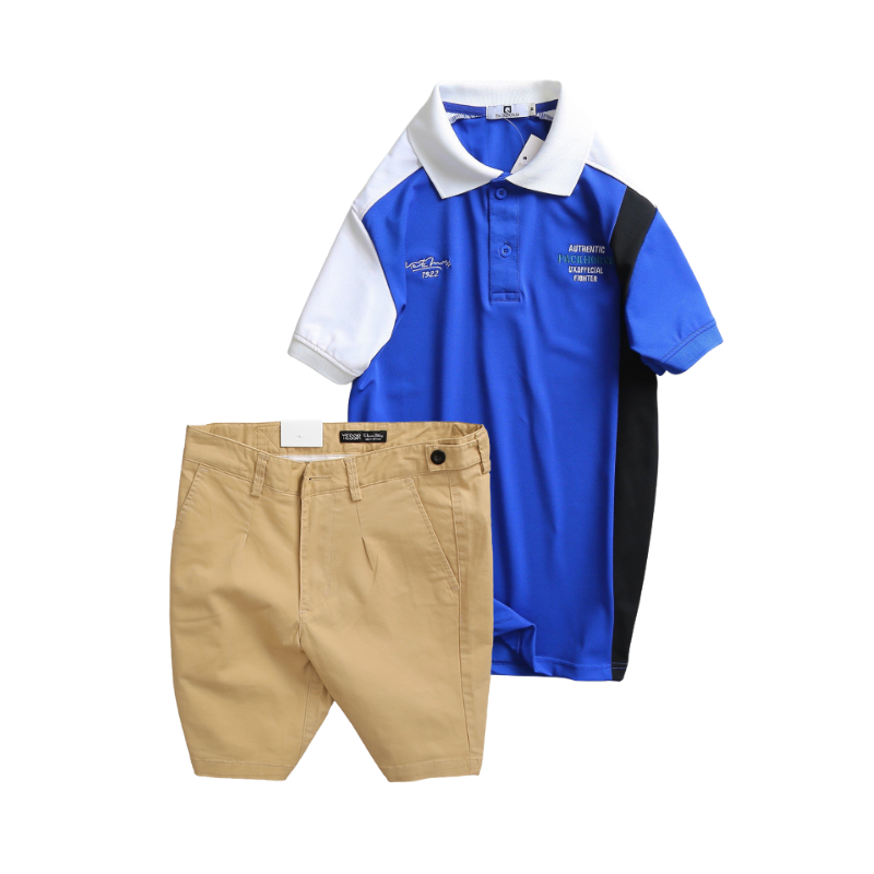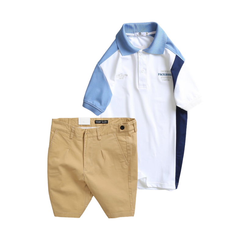 Giá sỉ set Bộ Nam – Áo Thun Nam Polo Cổ Bẻ Cá Sấu Poly Cổ Bẻ Ghép Vải Thêu Chữ Trước Ngực Và Quần Short Kaki Co Giãn Phối Nút Cao Cấp (Có Size 36)