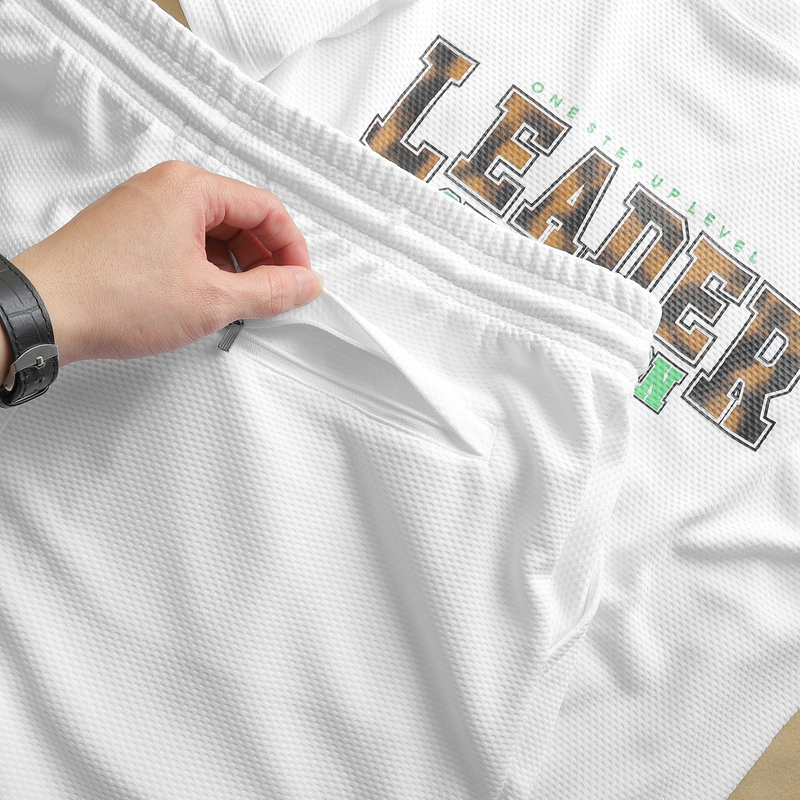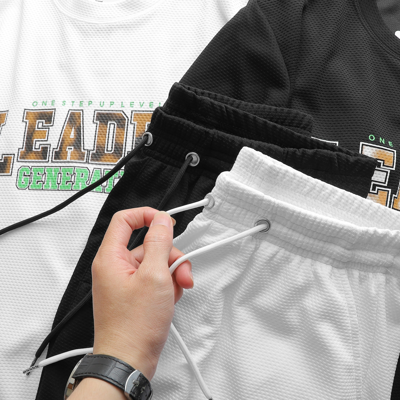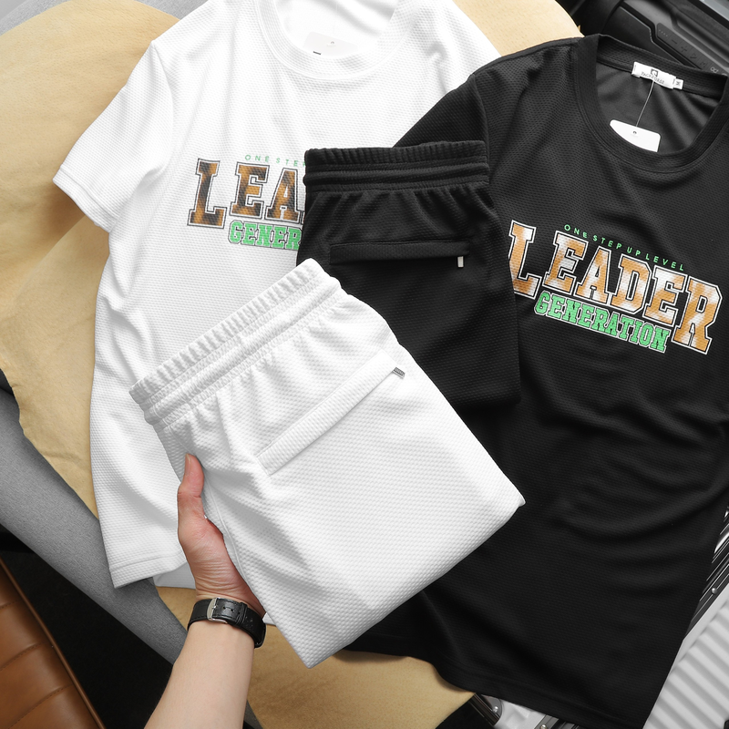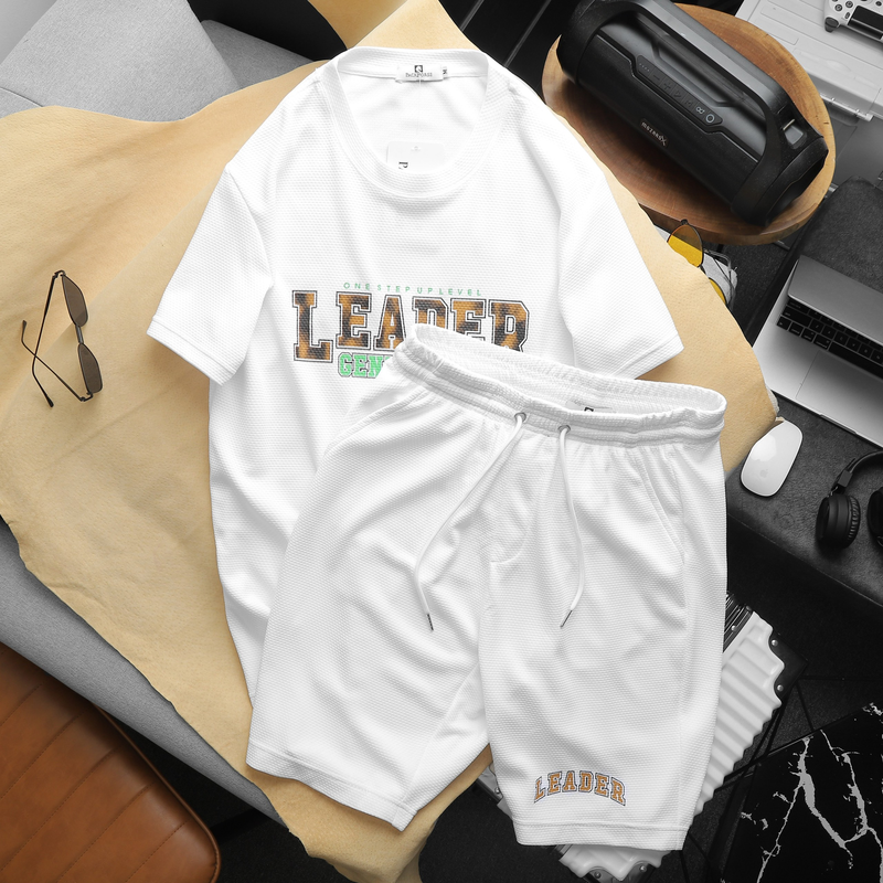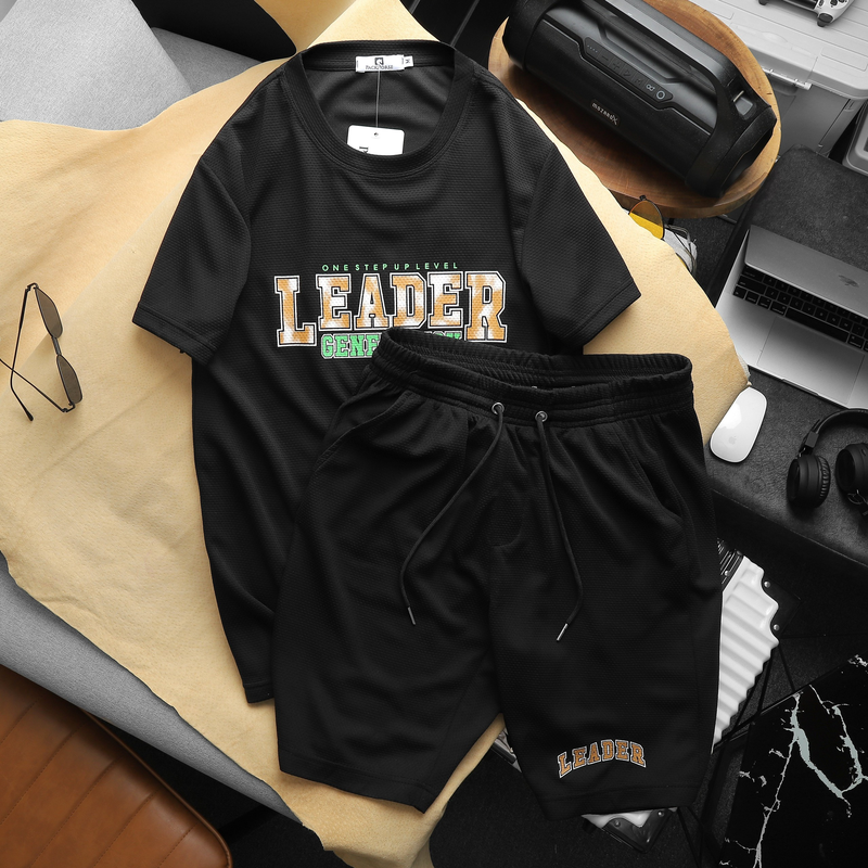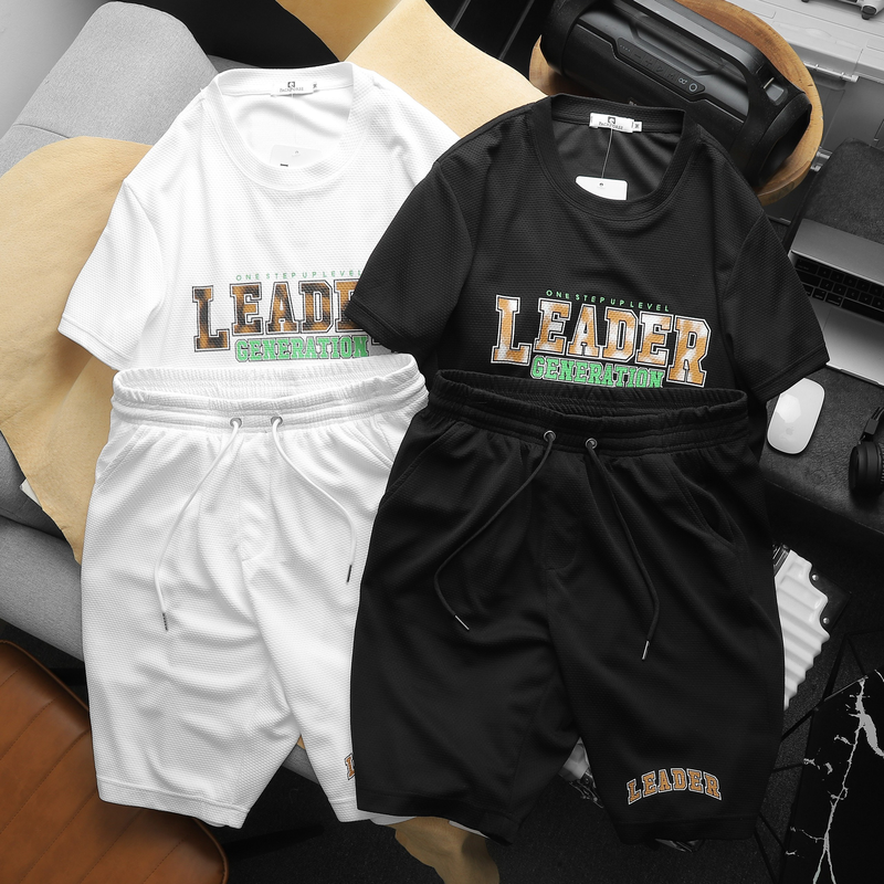 Set Bộ Nam Quần Short Áo Cổ Tròn In Chữ Leader