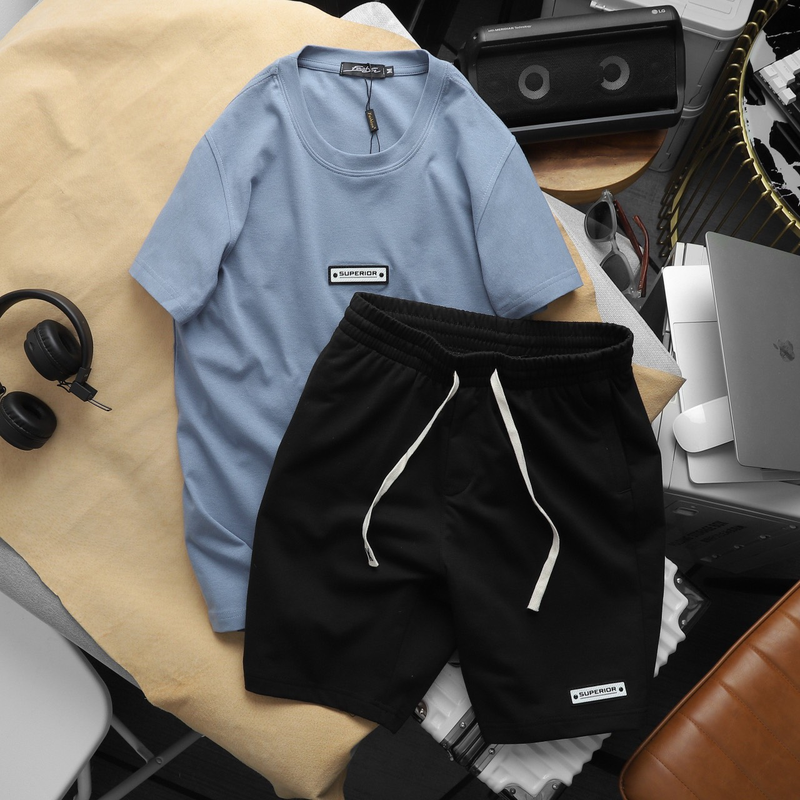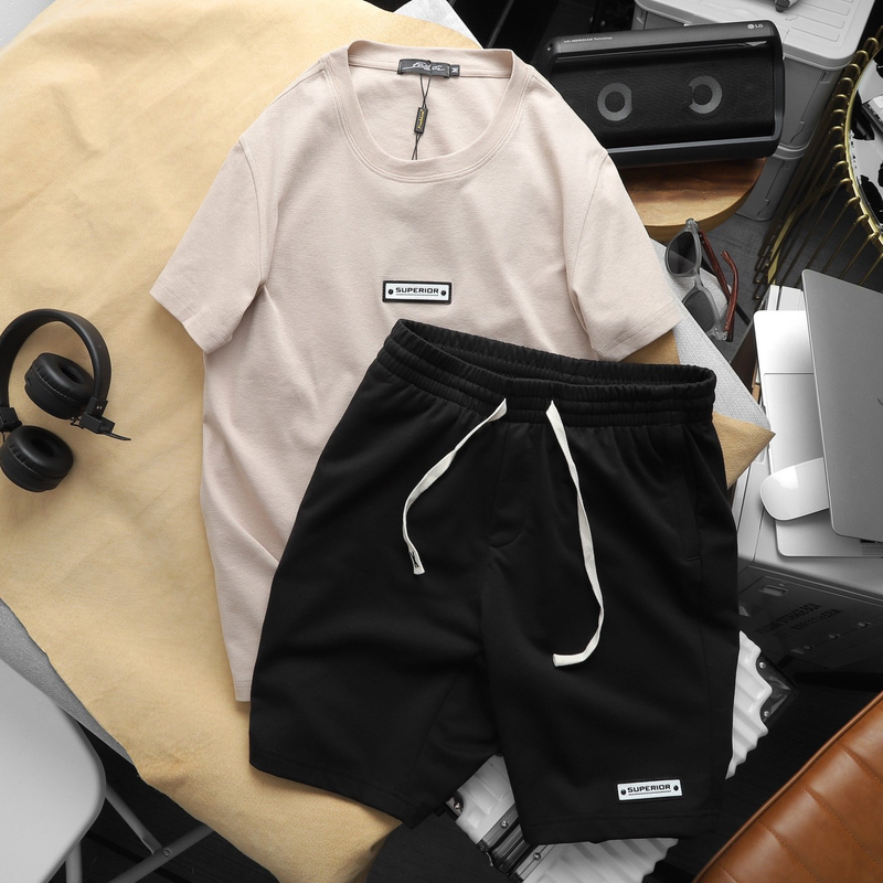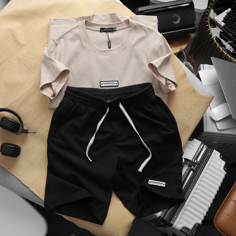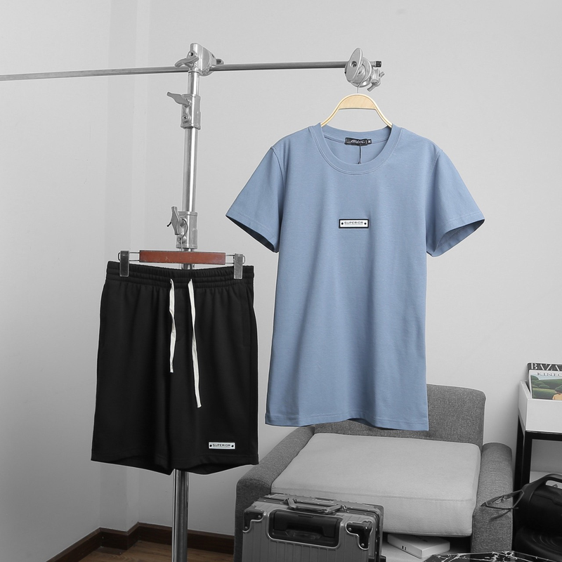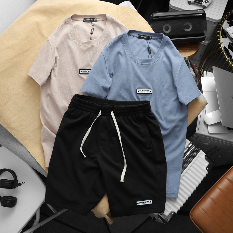 Set Bộ Nam Quần Short Áo Cổ Tròn Phối Tag Chữ Superior