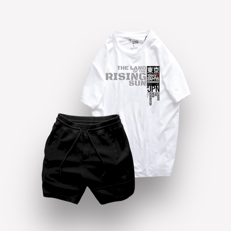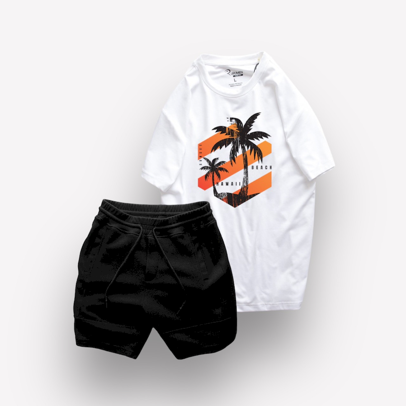 Giá sỉ set Bộ Nam Quần Short Thun Viên Sọc Ngang Phối Áo Cổ Tròn Rurumen Màu Trắng In Hình