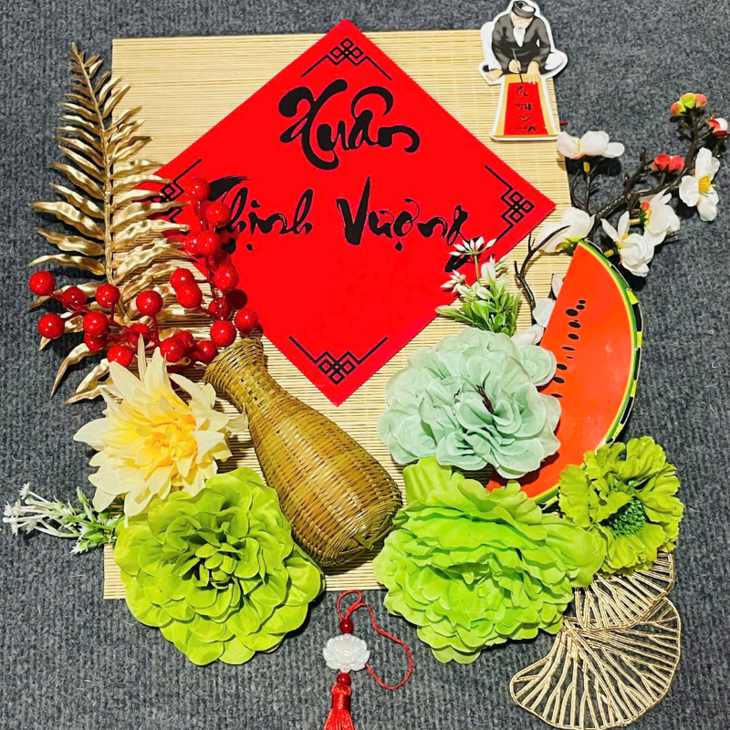 Giá sỉ set Phụ Kiện Mành Tre Vuông Nhiều Mẫu Ráp Sẵn Trang Trí Tết