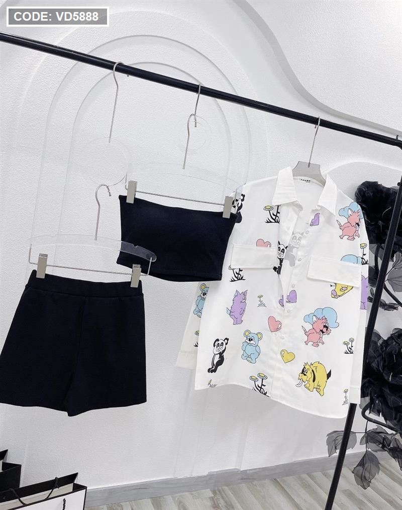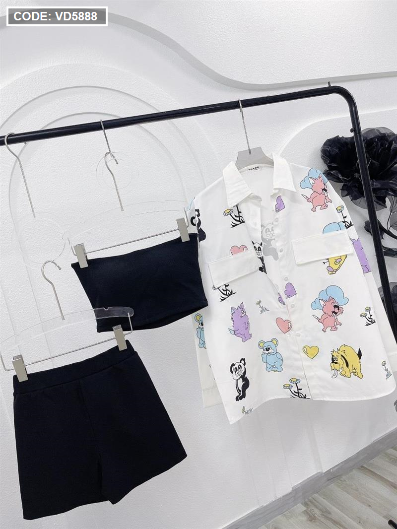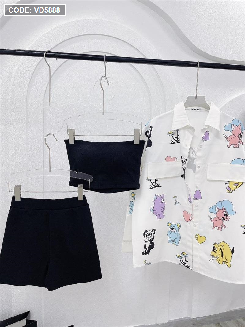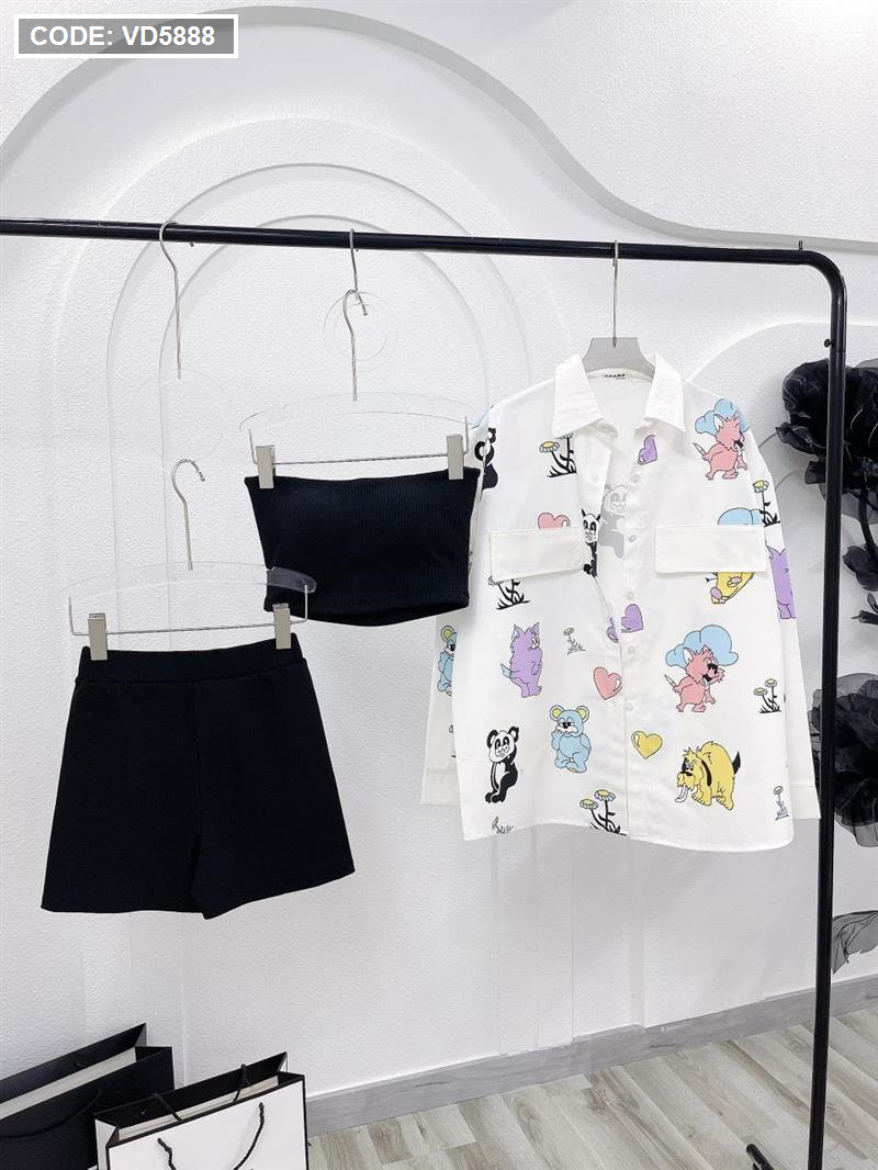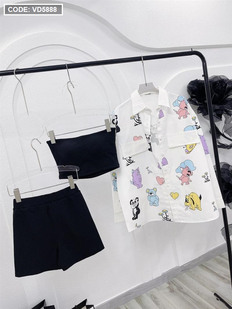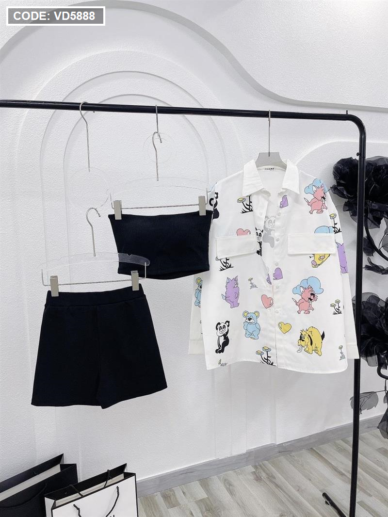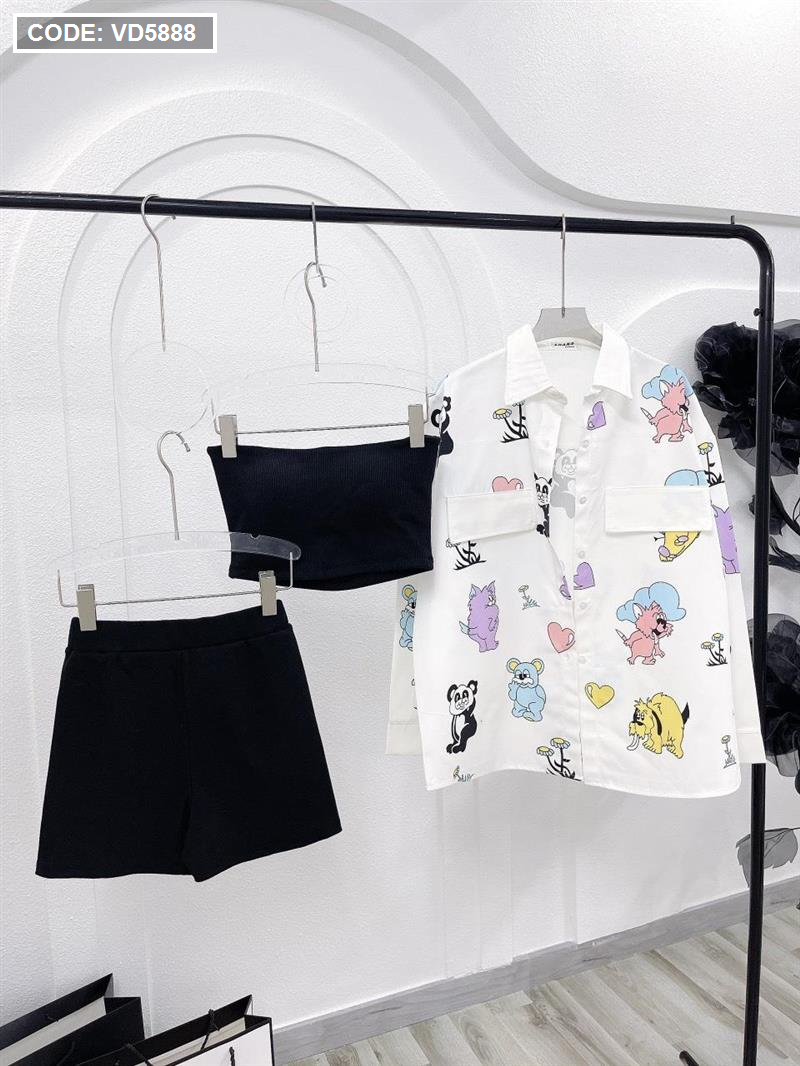 Giá sỉ sét sơ mi hoạ tiết 3 món