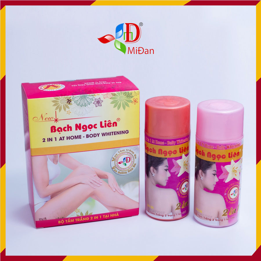 Với bộ tắm trắng 2 IN 1 AT HOME – Body Whitning Bạch Ngọc Liên bạn hoàn toàn yên tâm về chất lượng làm trắng hoàn hảo và tuyệt đối an toàn cho làn da. Nếu bạn muốn có 1 làn da toàn thân trắng đẹp hoàn hảo như ý muốn để dễ dàng diện những bộ váy hay những đồ short quyến rũ, khác thì bộ tắm trắng 2in1 At Home – Body Whitening Bạch Ngọc Liên của Công ty MiĐan sẽ hoàn toàn đáp ứng được nhu cầu làm trắng da toàn thân. Hay bạn muốn trông mình quyến rũ và trẻ trung hơn khi thay đổi làn da cũ đen, sạm hay bị lão hóa ,đồi mồi… thành làn da mới trắng đẹp thì bộ tắm trắng Bạch Ngọc Liên sẽ là giải pháp mới và hiệu quả trong việc làm trắng da toàn thân cho bạn.