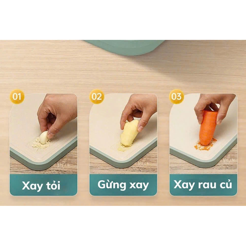 👉 Mặt nhựa PP có rãnh, có thể dùng sàng nấu cháo cho bé, cắt thịt thoải mái