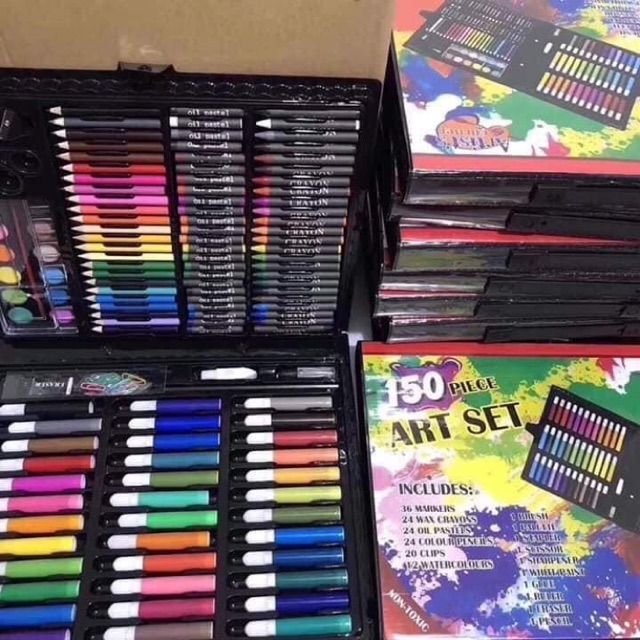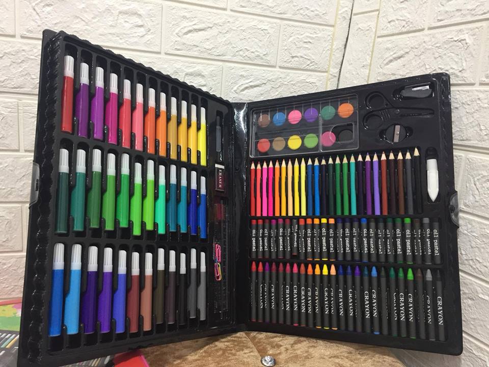 – Bộ bút màu 150 cây gồm có bút lông, Sáp khô, Sáp ướt, Bút chì màu, Kéo, Keo, Gôm… Được chọn lọc từ những mẫu cao cấp