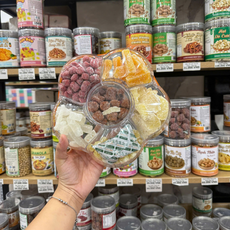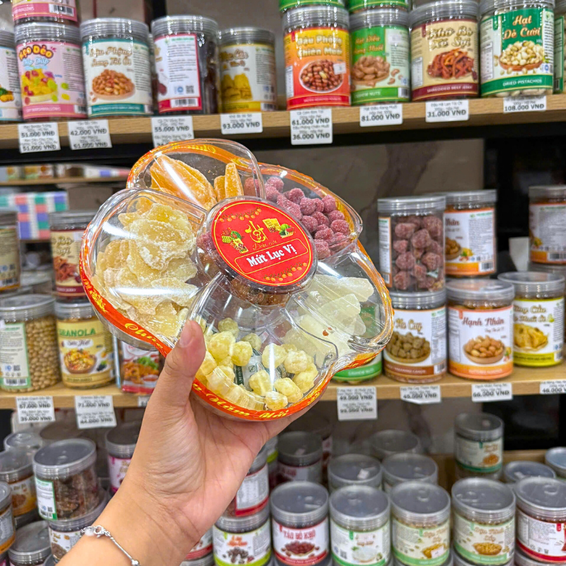 Hộp Quà Tết Set Mứt Lục Vị Bông Mai (Khoai Lang, Gừng, Hạt Sen, Bí, Kẹo Dâu Tây) – Hộp Bông Mai Hộp Quà Tết 2026