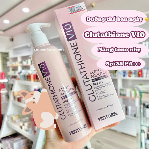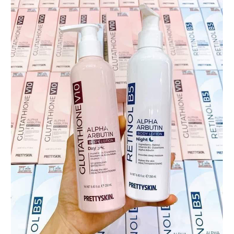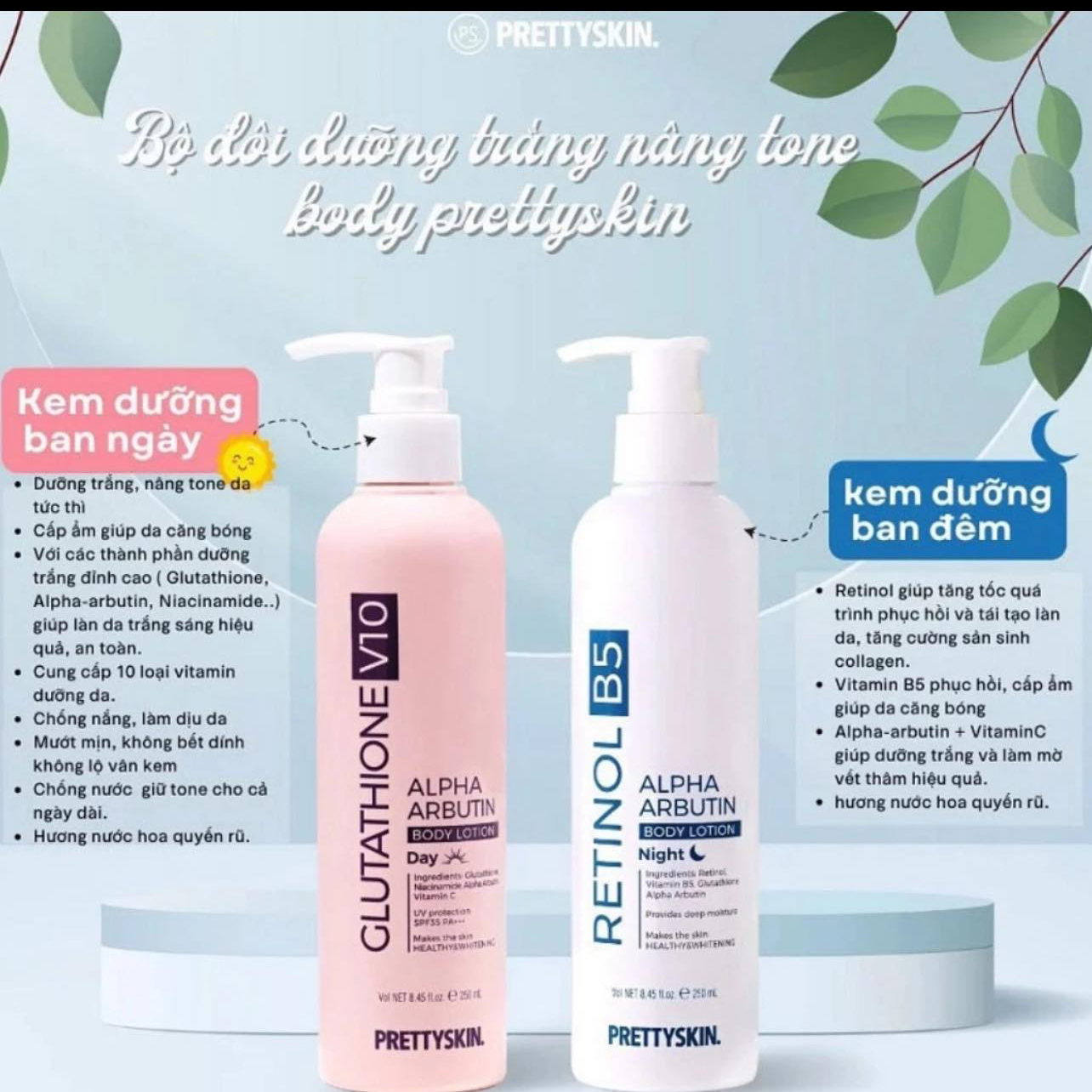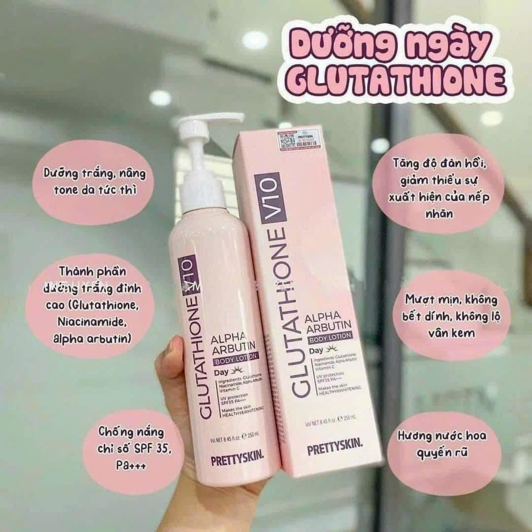 Kem Body Prettyskin Màu Hồng Ban Ngày Glutathione V10 Alpha Arbutin Body Lotion 250ml