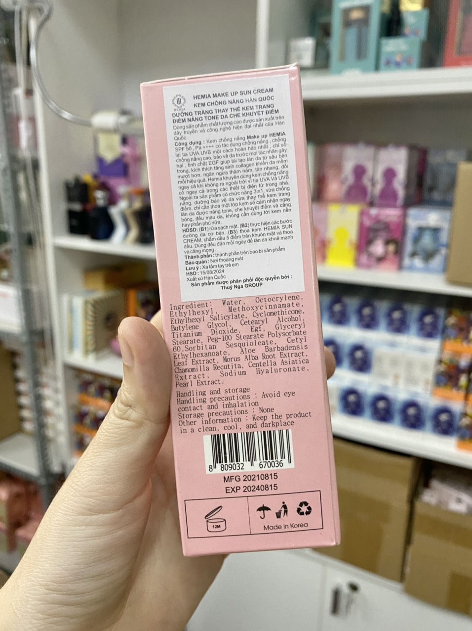 THÀNH PHẦN: Water, Octocrylene, Ethylhexyl, Methoxycinnamate, Ethylhexyl Salicylate, Cyclomethicone, Butylene Glycol, Cetearyl Alcohol, Titanium Dioxide, Egf, Glyceryl Stearate, Peg-100 Stearate Polysorbate 60, Sorbitan Sesquioleate, Cetyl Ethylhexanoate, Aloe Barbadensis Leaf Extract, Morus Alba Root Extract, Chamomilla Recutita, Centella Asiatica Extract, Sodium Hyaluronate, Pearl Extract.