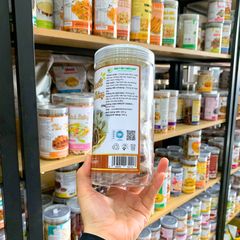 Kẹo Chuối Cuộn Bánh Tráng Thơm Ngon 300g – Hộp Pet