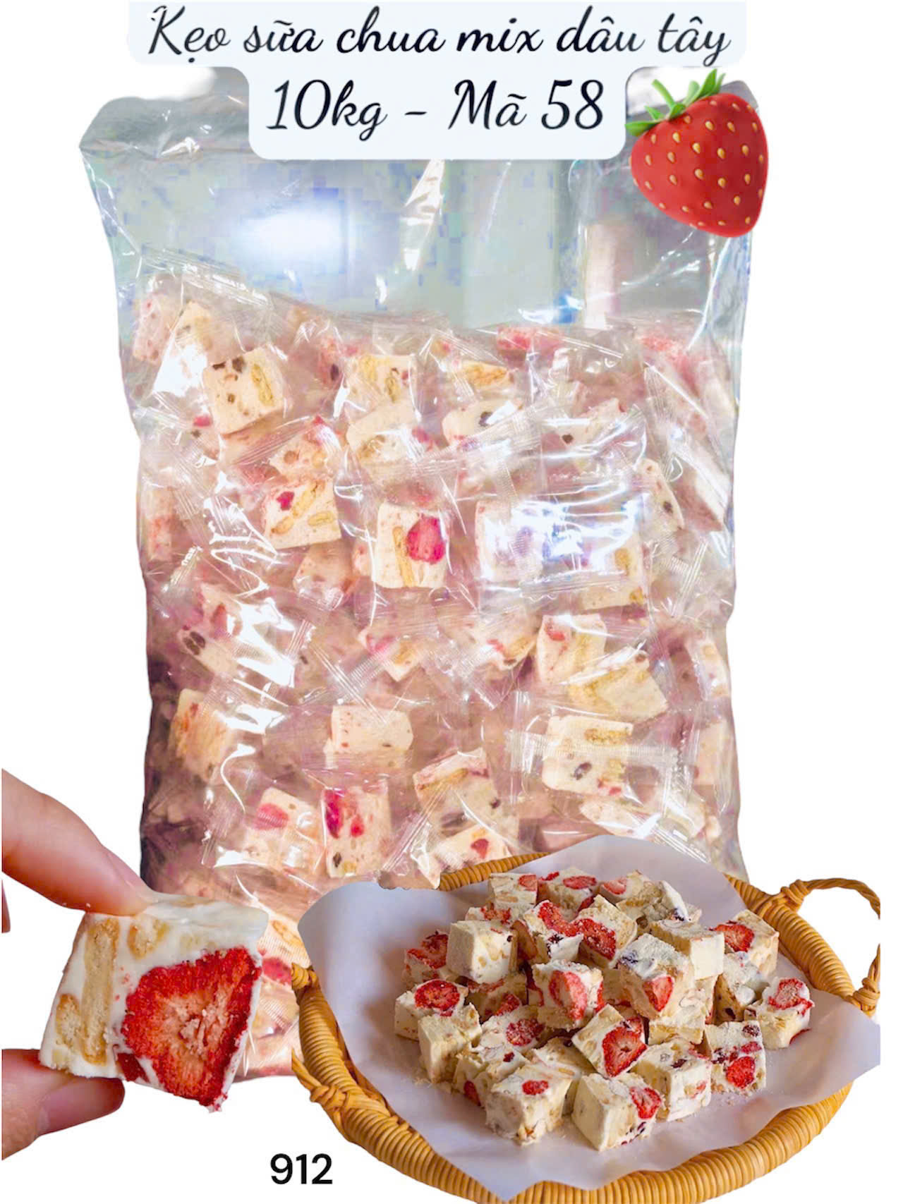 Kẹo Sữa Chua Mix Trái Cây Và Hạt Ăn Kiêng – Kẹo Nougat Dâu Tây 500g