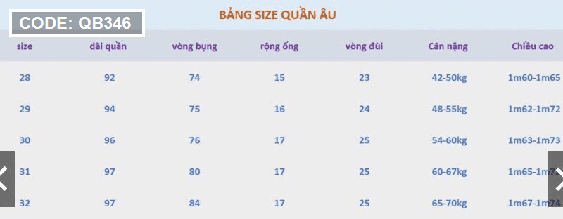 Size: 28-29-30-31-32( khách xem thông số ở bảng size)