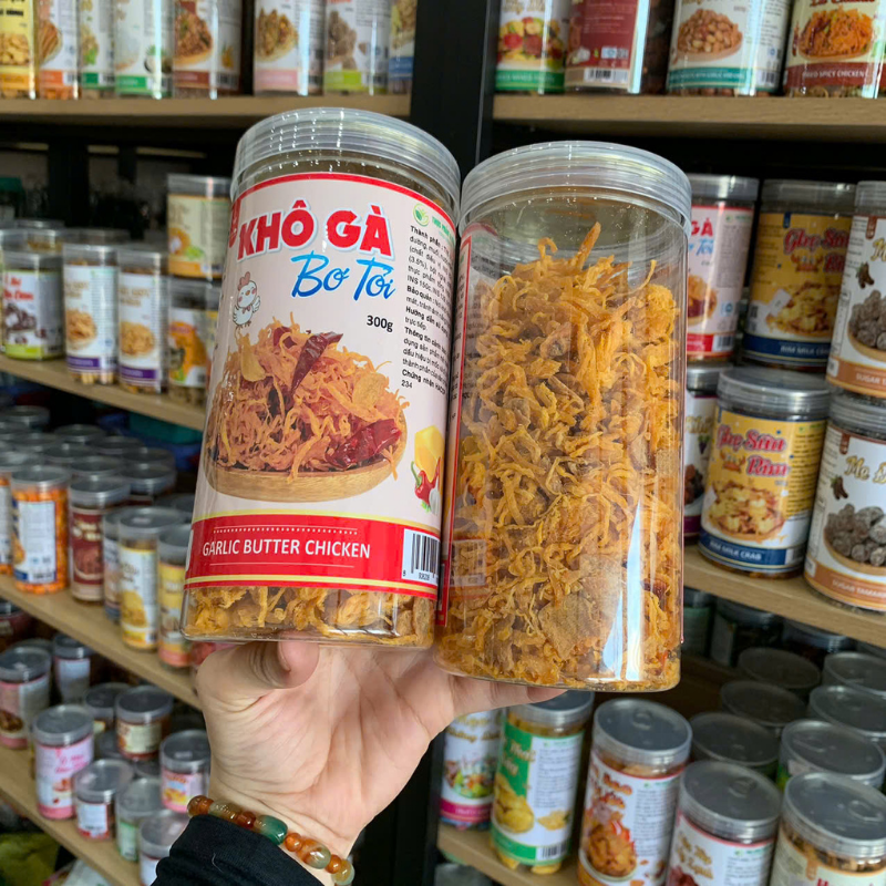 Khô Gà Bơ Tỏi Thơm Ngon 300g Hộp