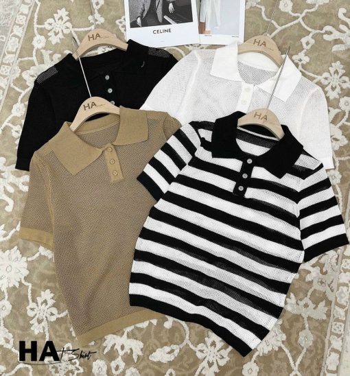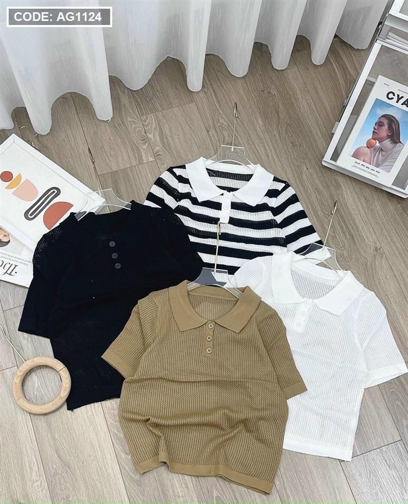 Kho sỉ áo len lưới nữ cổ bẻ QC siêu hot