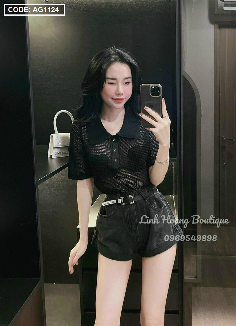 Áo len lưới nữ cổ bẻ QC siêu hot