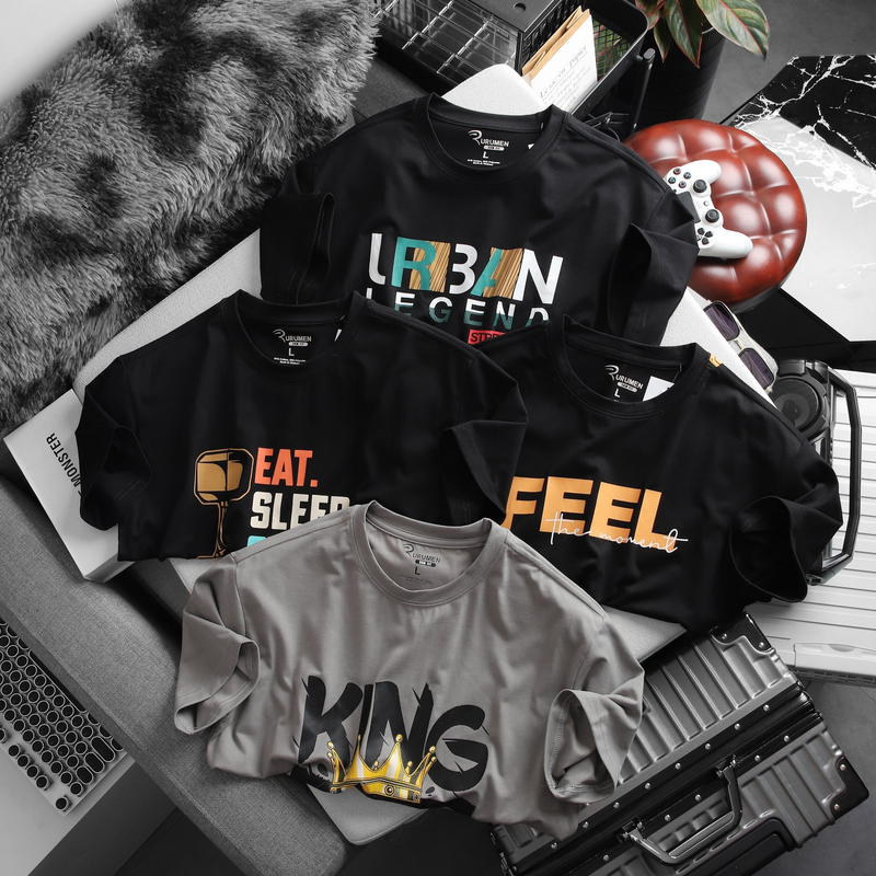 Kho sỉ áo Thun Nam Cổ Tròn Rurumen Màu Xám In Chữ King Big Size