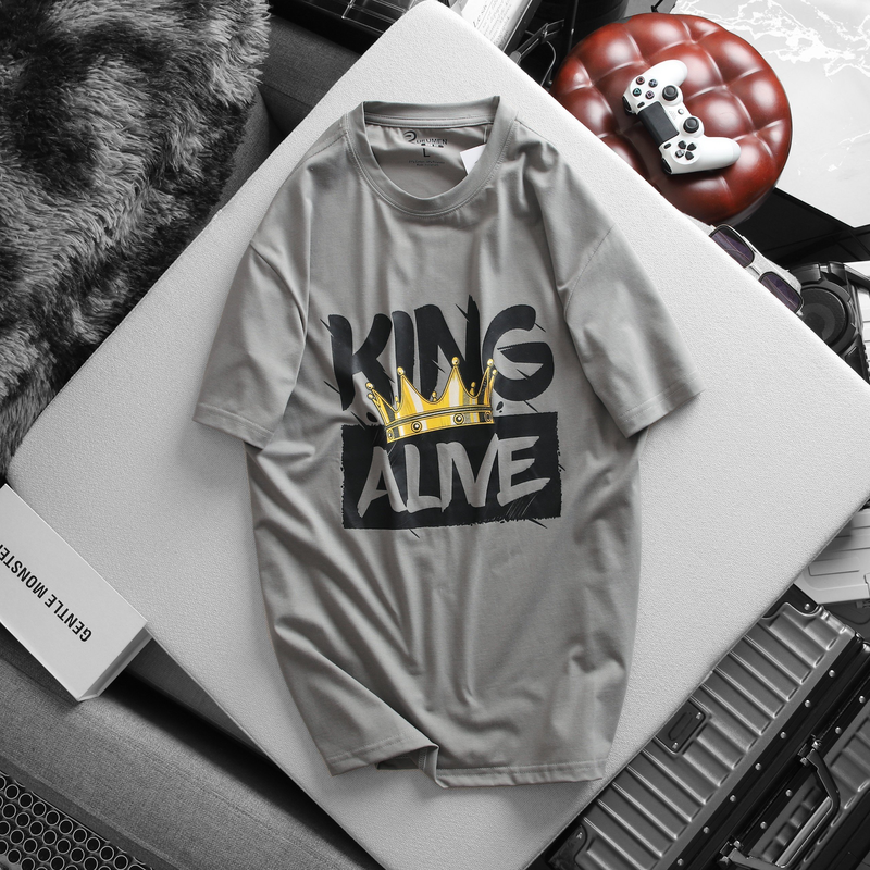 Áo Thun Nam Cổ Tròn Rurumen Màu Xám In Chữ King Big Size