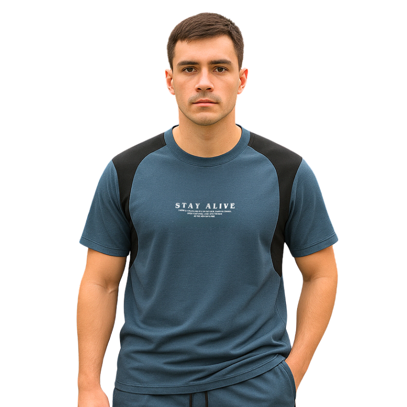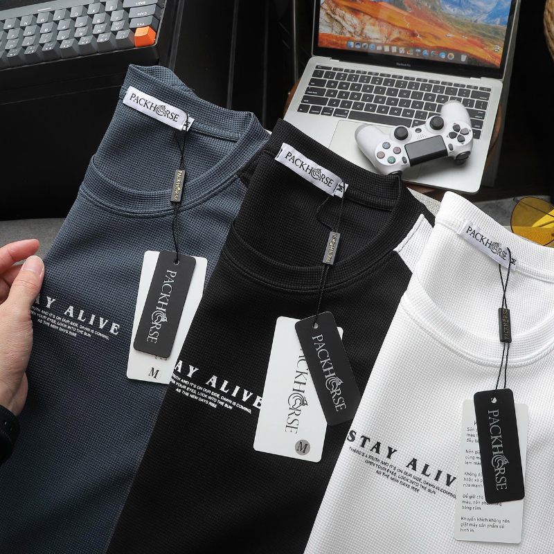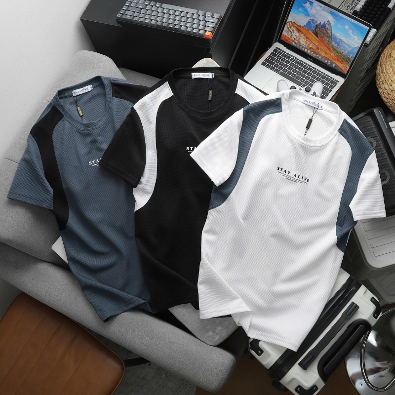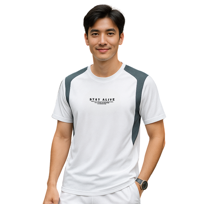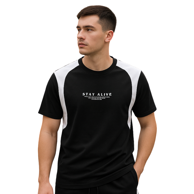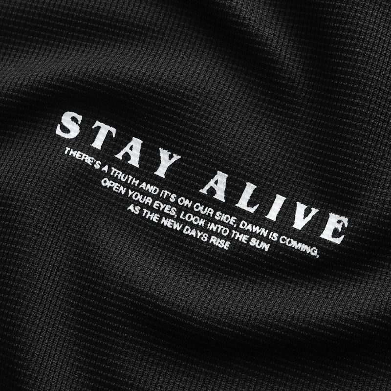 💪 Phom dáng thể thao, chuẩn body nam tính, logo STAY ALIVE in nổi bật giữa ngực – đơn giản mà chất chơi!