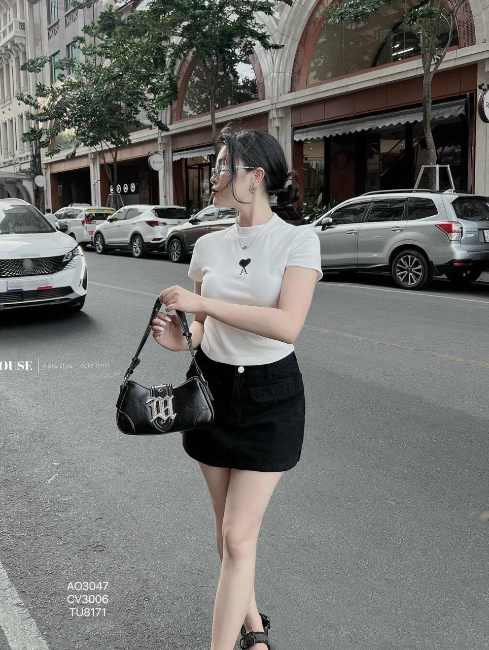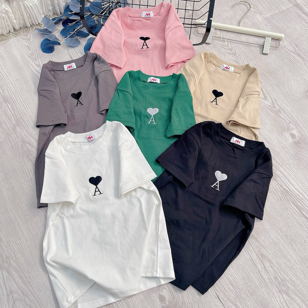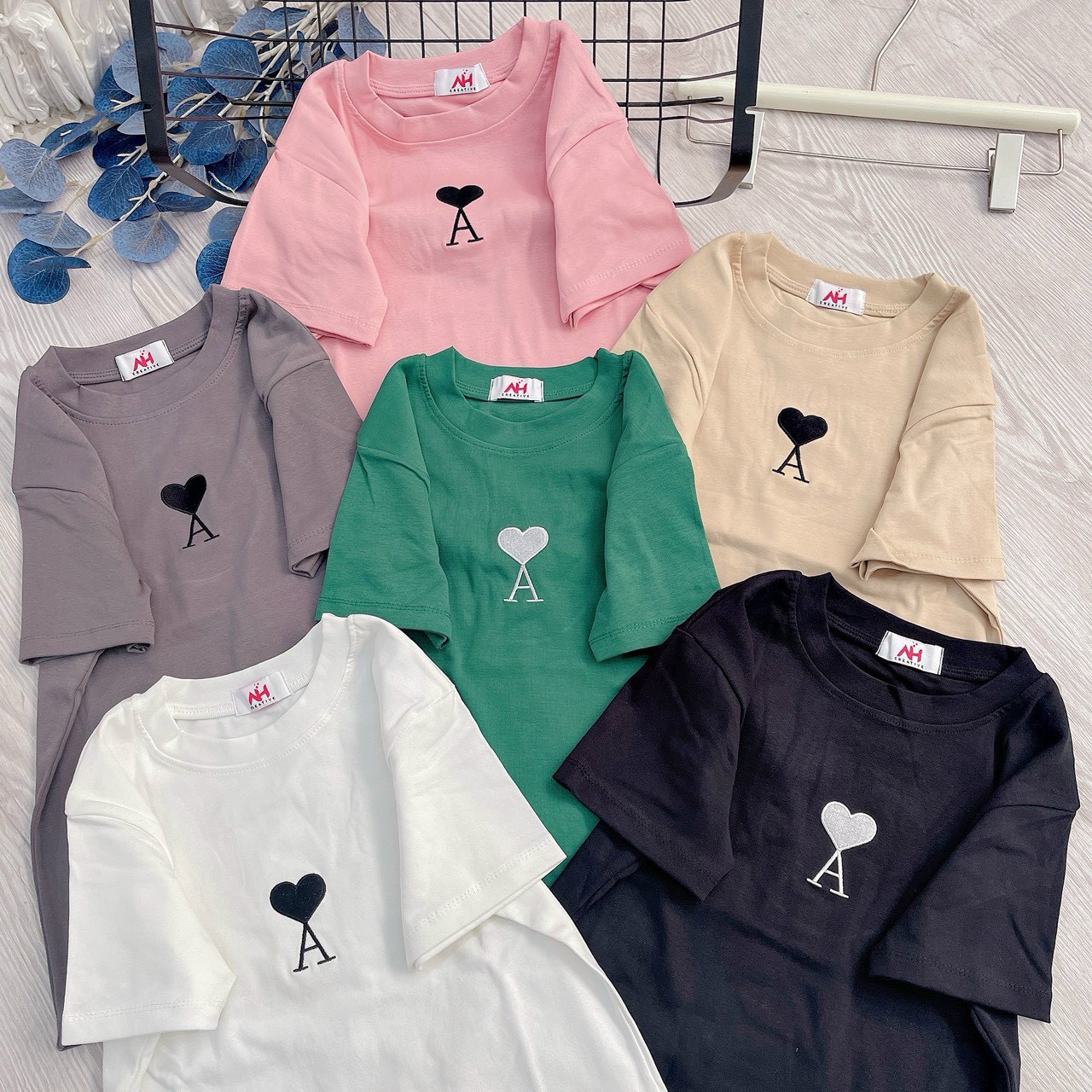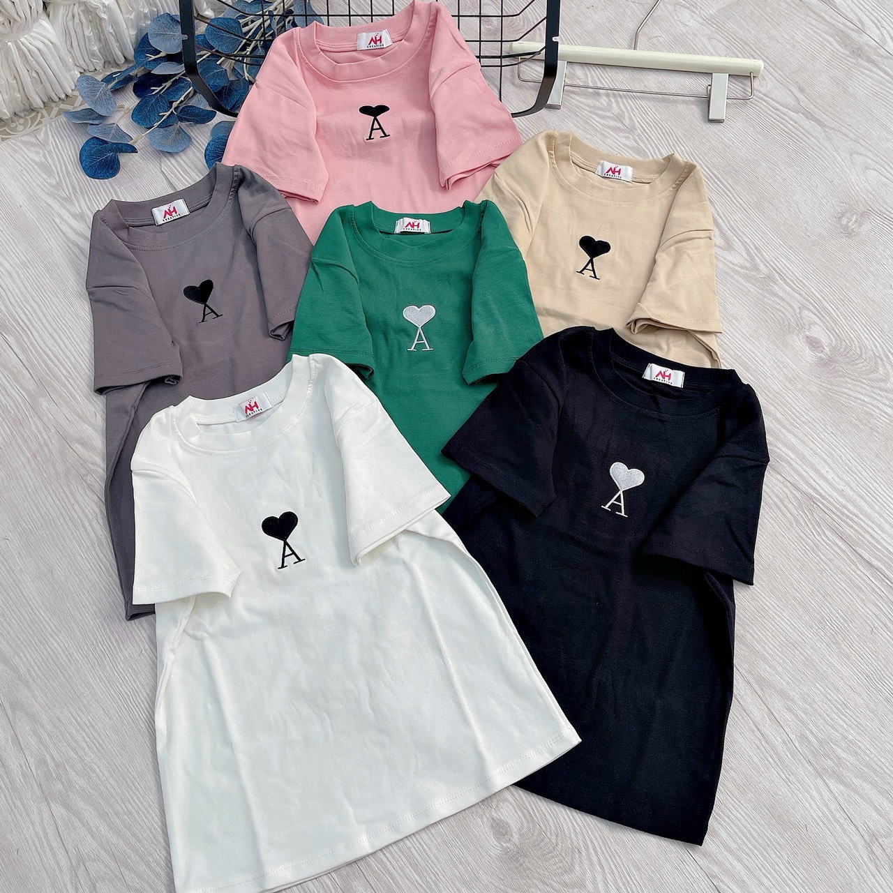 Kho sỉ áo thun nữ Baby Tee ôm body từ 35kg – 55kg in hình trái tim chữ A