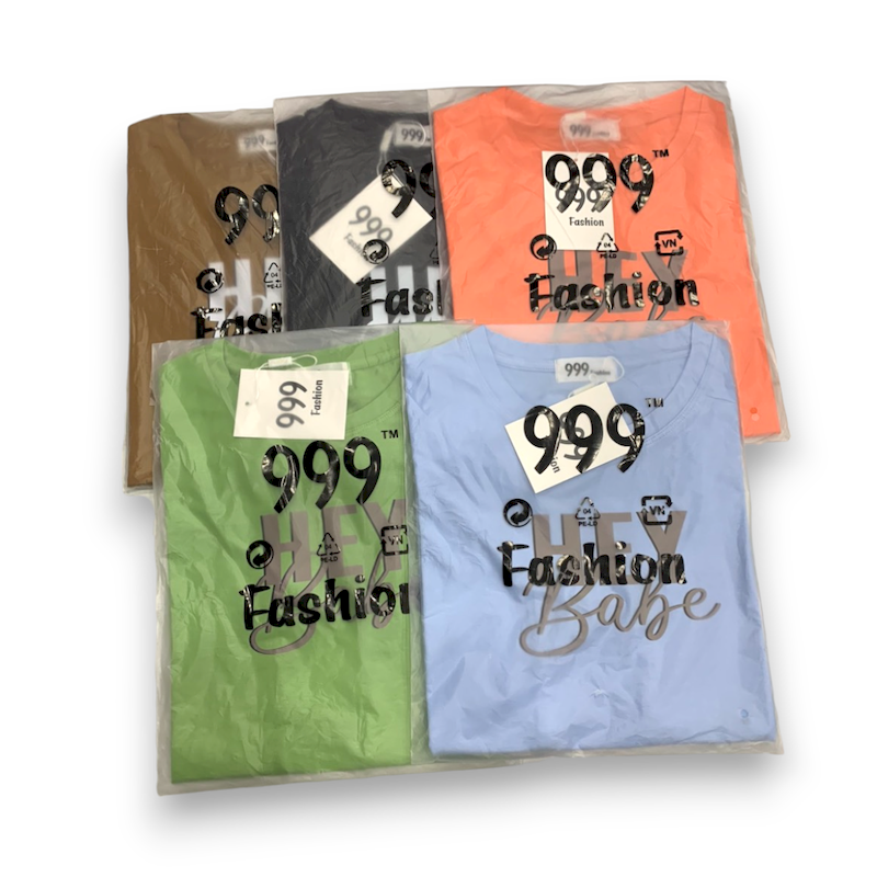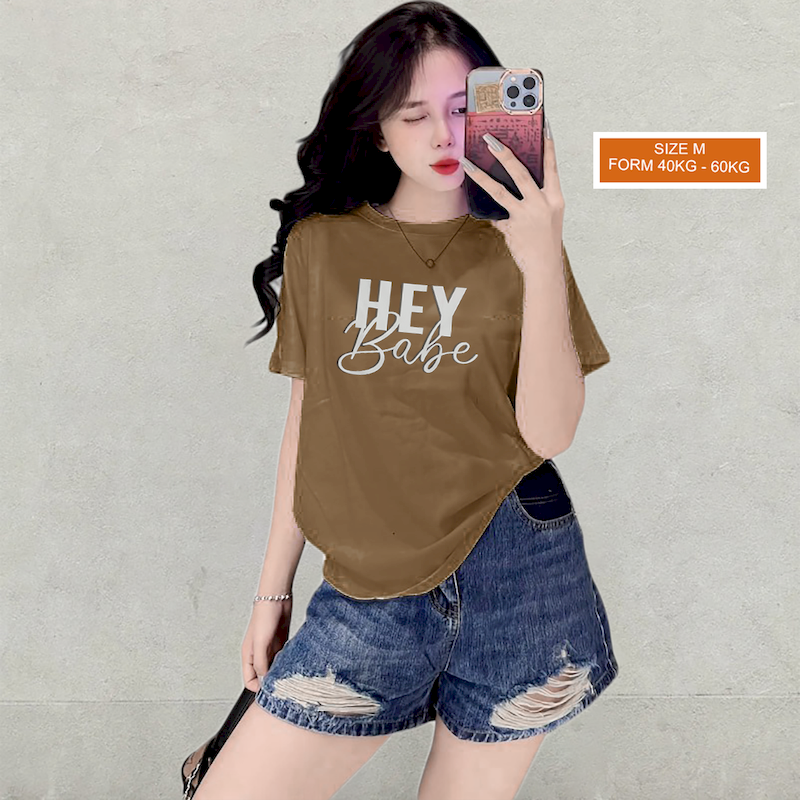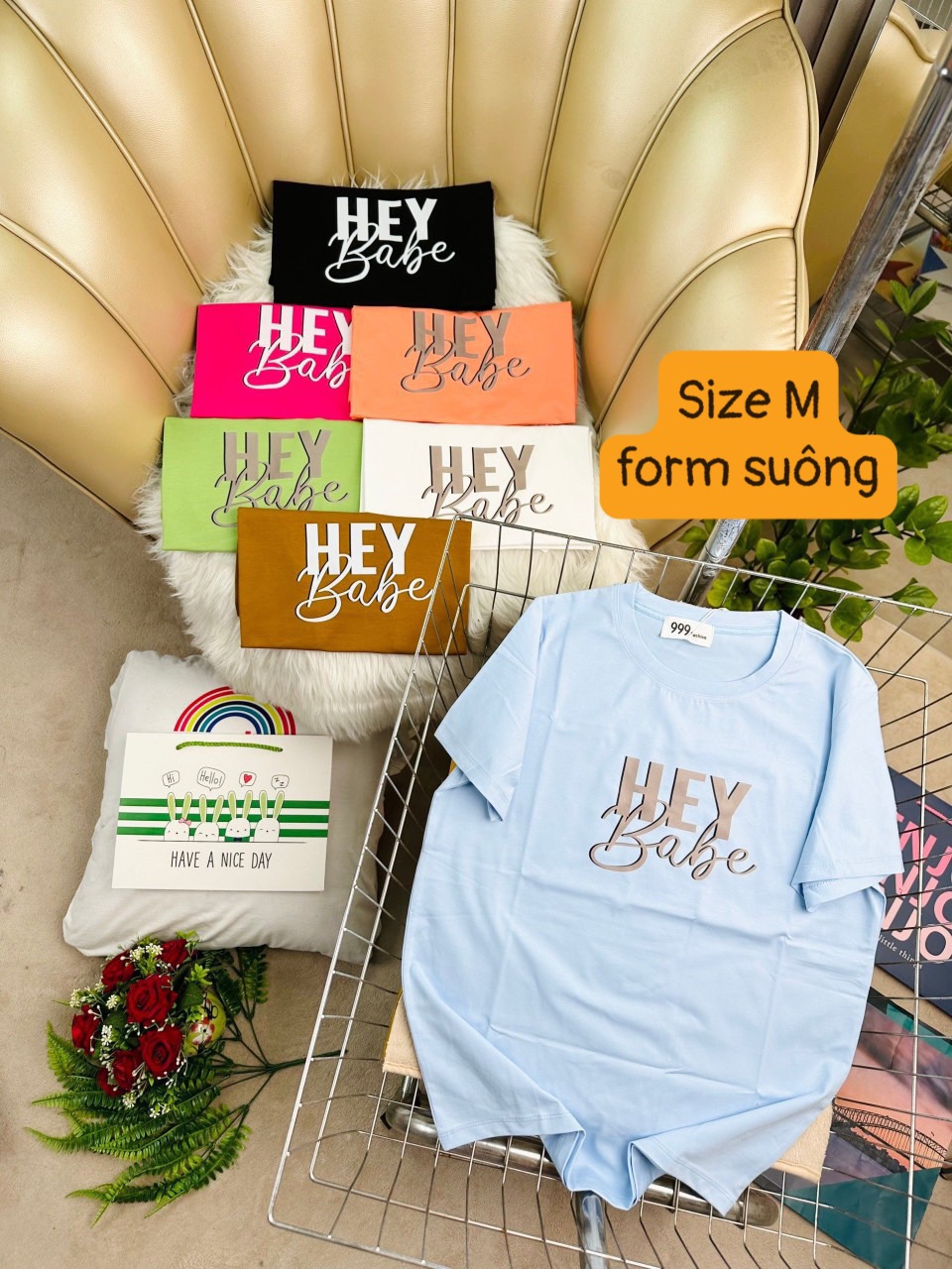 Kho sỉ áo Thun Nữ Cổ Tròn Form Vừa In Chữ HEY BABE Size M(40-60kg)