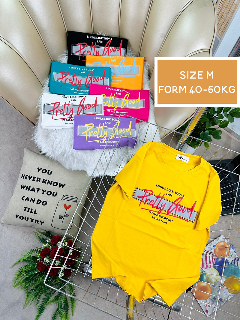 Kho sỉ áo Thun Nữ Cổ Tròn Form Vừa In Pretty Good Size M(40-60kg)