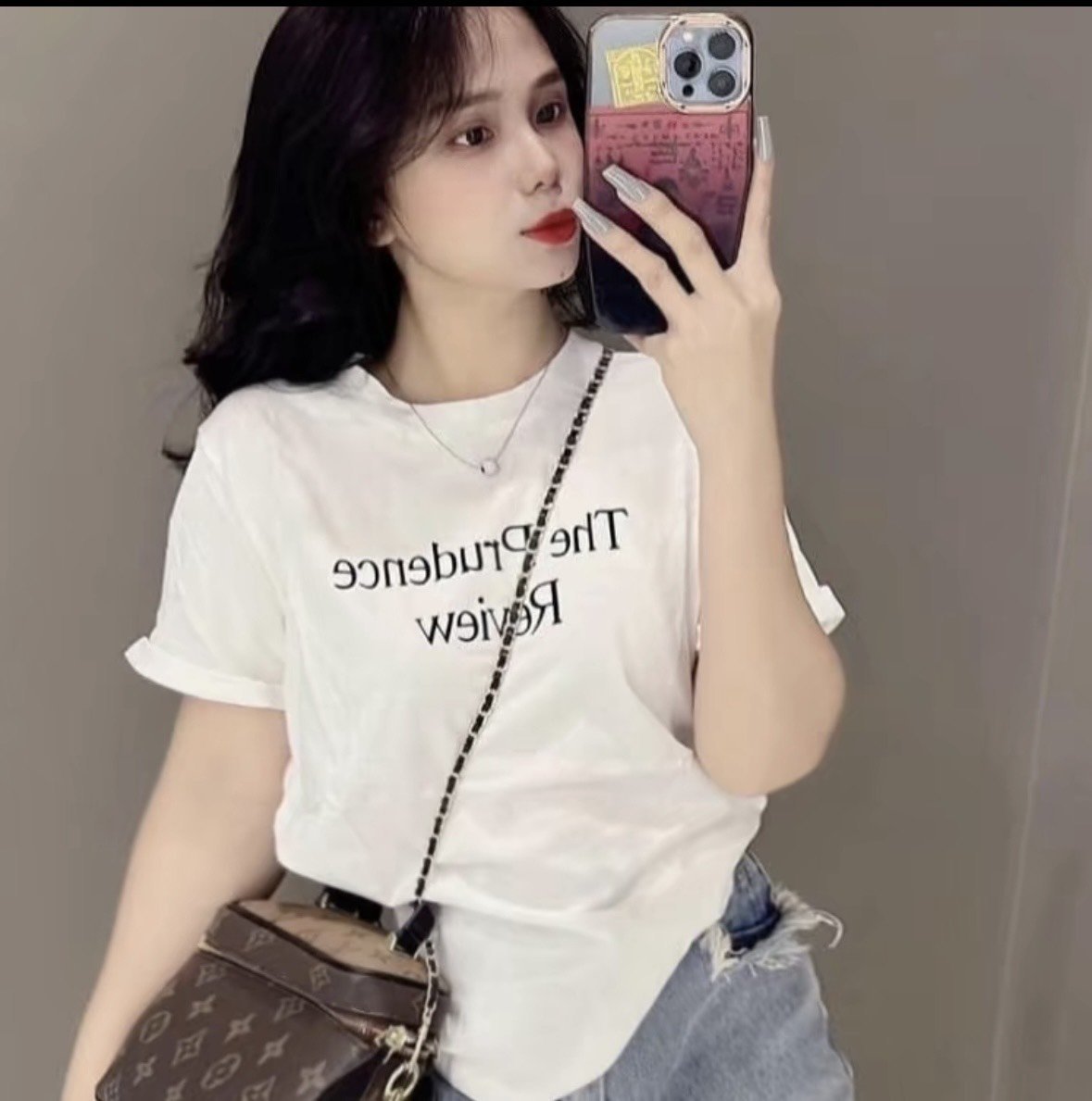 Kho sỉ áo Thun Nữ Cổ Tròn In Chữ Nhỏ form vừa size M(40-60kg)