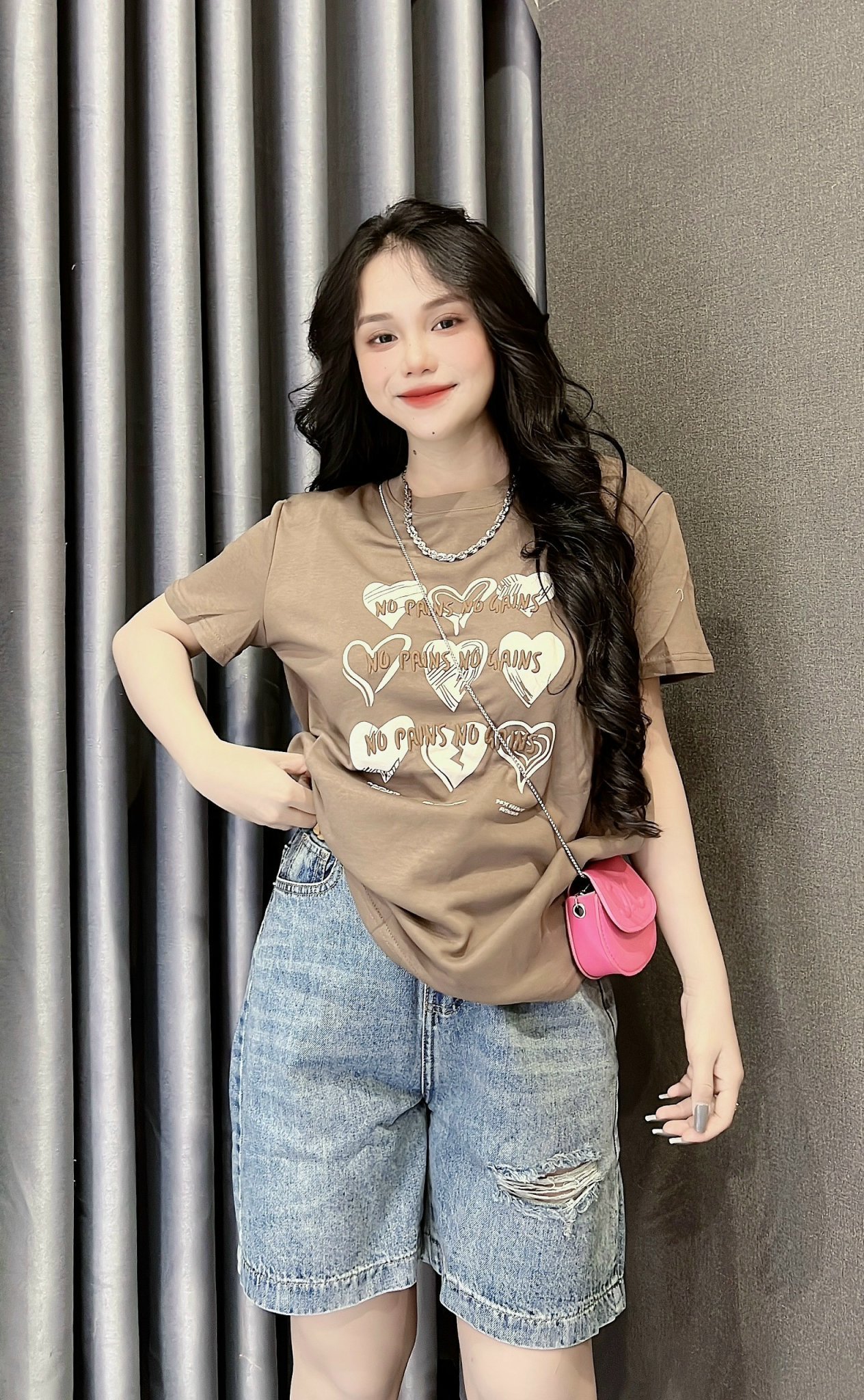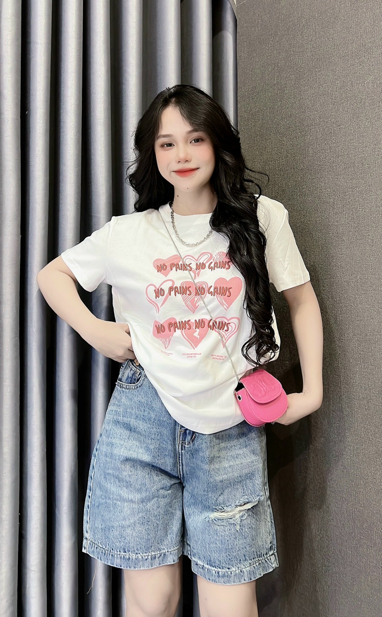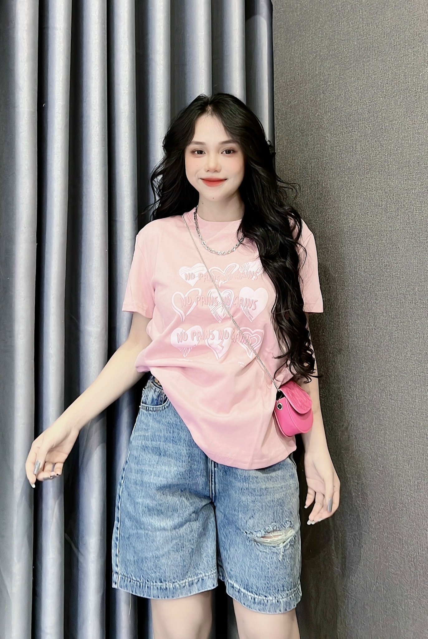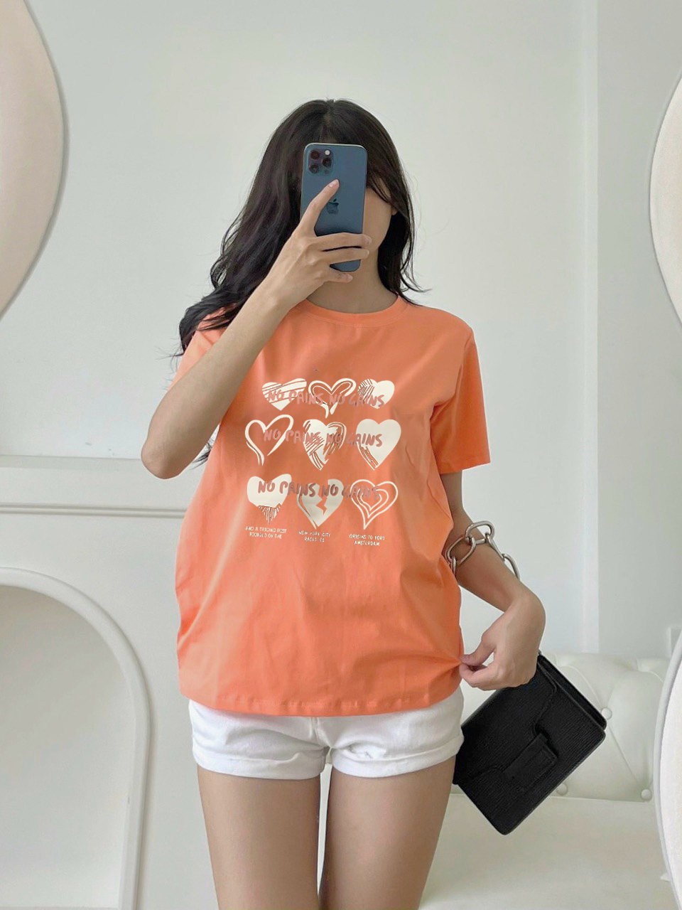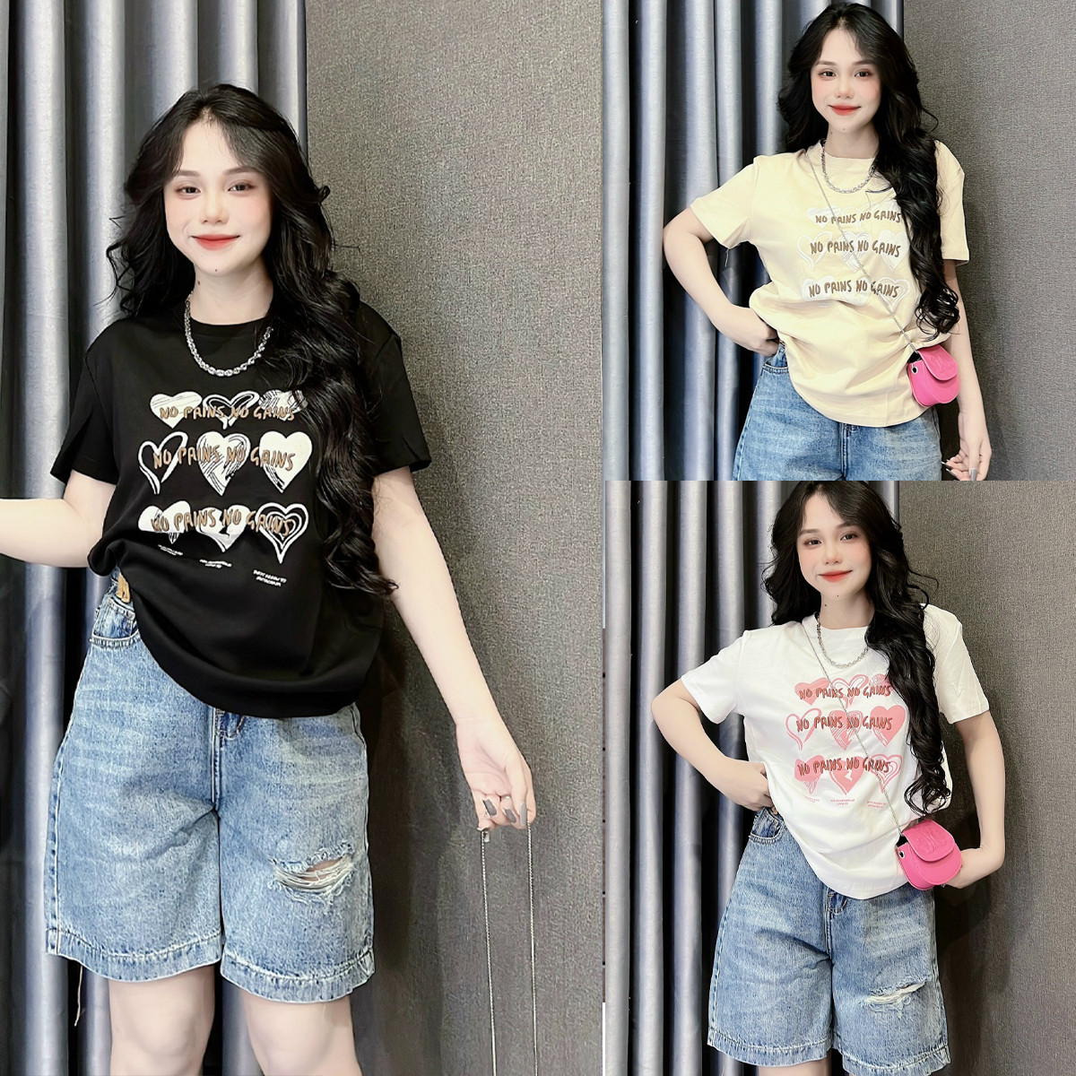 Kho sỉ áo Thun Nữ Cổ Tròn In Nhiều Hình Trái Tim Với Chữ form vừa size M(40-60kg)